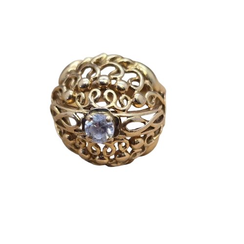 Bague Ancienne en Or Jaune 18 Carats avec Oxyde de Zirconium - T 50