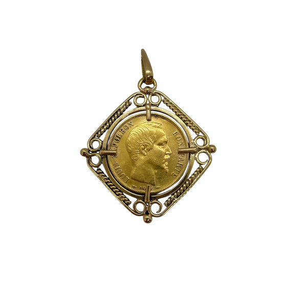Pièce de 20 Francs Napoléon en or jaune, frappée en 1852. Composée d’or titré à 900/1000 (20 carats), elle pèse 11,22 grammes et présente un diamètre de 34 mm pour une épaisseur de 1 mm.