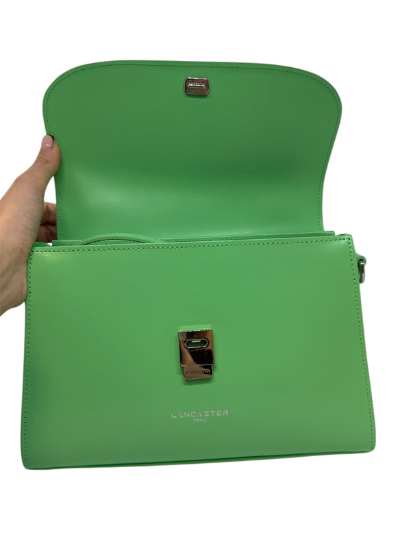 Sac à main et bandoulière Lancaster, modèle Suave Even, en très bon état. Coloris vert, dimensions : 24,5 × 11 × 16 cm. Bandoulière incluse.