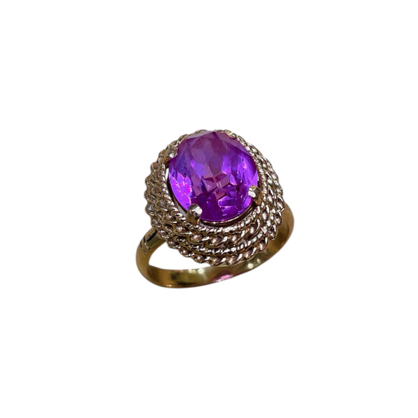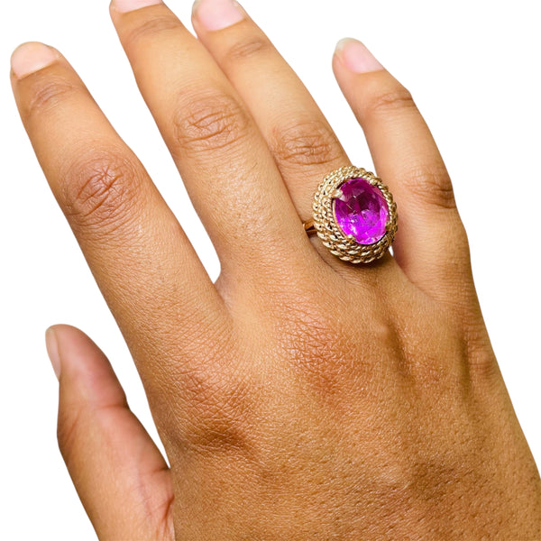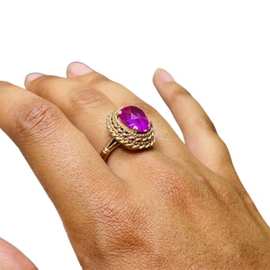 Bague de style cocktail en or jaune 585/1000 (14 carats), d’un poids de 6,33 g et de taille 59. Elle est ornée de saphirs et ne porte pas de poinçon. L’ensemble est en bon état.