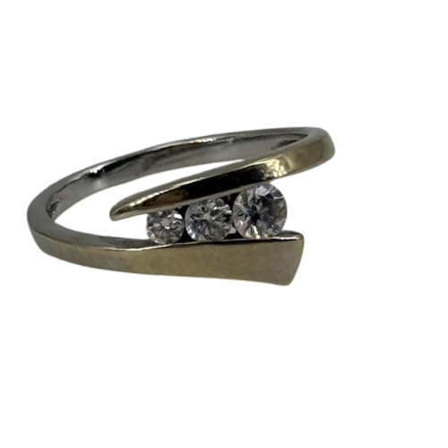 Très jolie bague moderne en or 750/1000 mélange d'or jaune et d'or blanc. Ornée de 3 diamants elle saura mettre en valeur votre main.