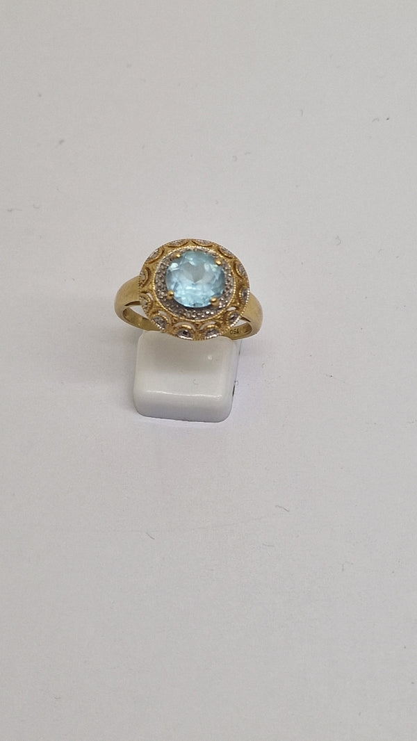 Bague Empierrée en Or Jaune 18 Carats Sublime bague en or jaune 750/1000, ornée d'une magnifique pierre d’aigue-marine, symbole de sérénité et de clarté. Son poinçon 750 garantit la qualité de l’or 18 carats.