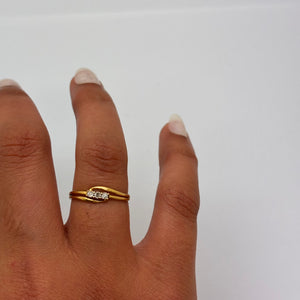 Bague en or jaune 18 carats (750/1000), sertie de trois petits diamants.
