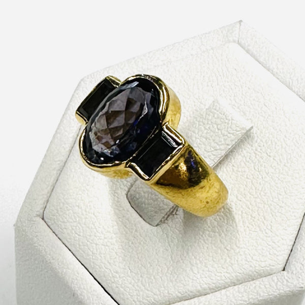 Magnifique bague or jaune 18k et améthystes