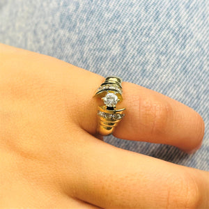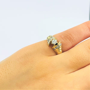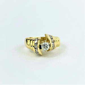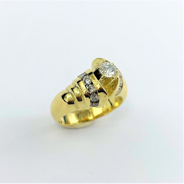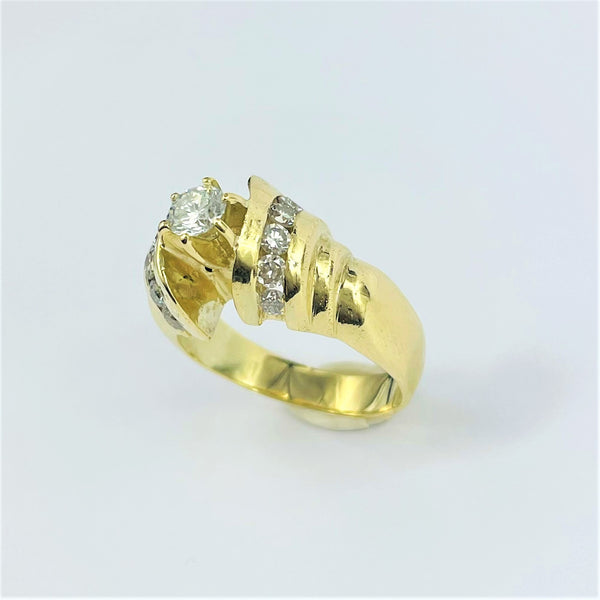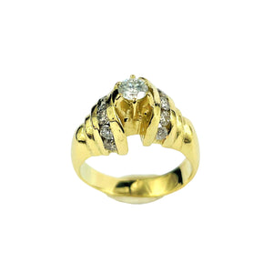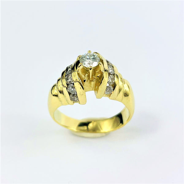 Ravissante bague en or jaune 14k empierrée de diamants. Son look chic saura apporter une touche élégante à vos tenues