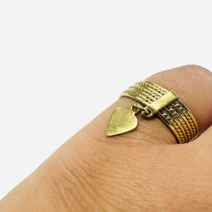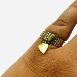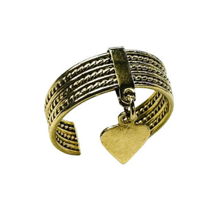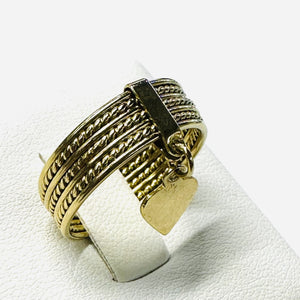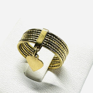 Jolie bague semainier en or jaune 18k avec breloque coeur