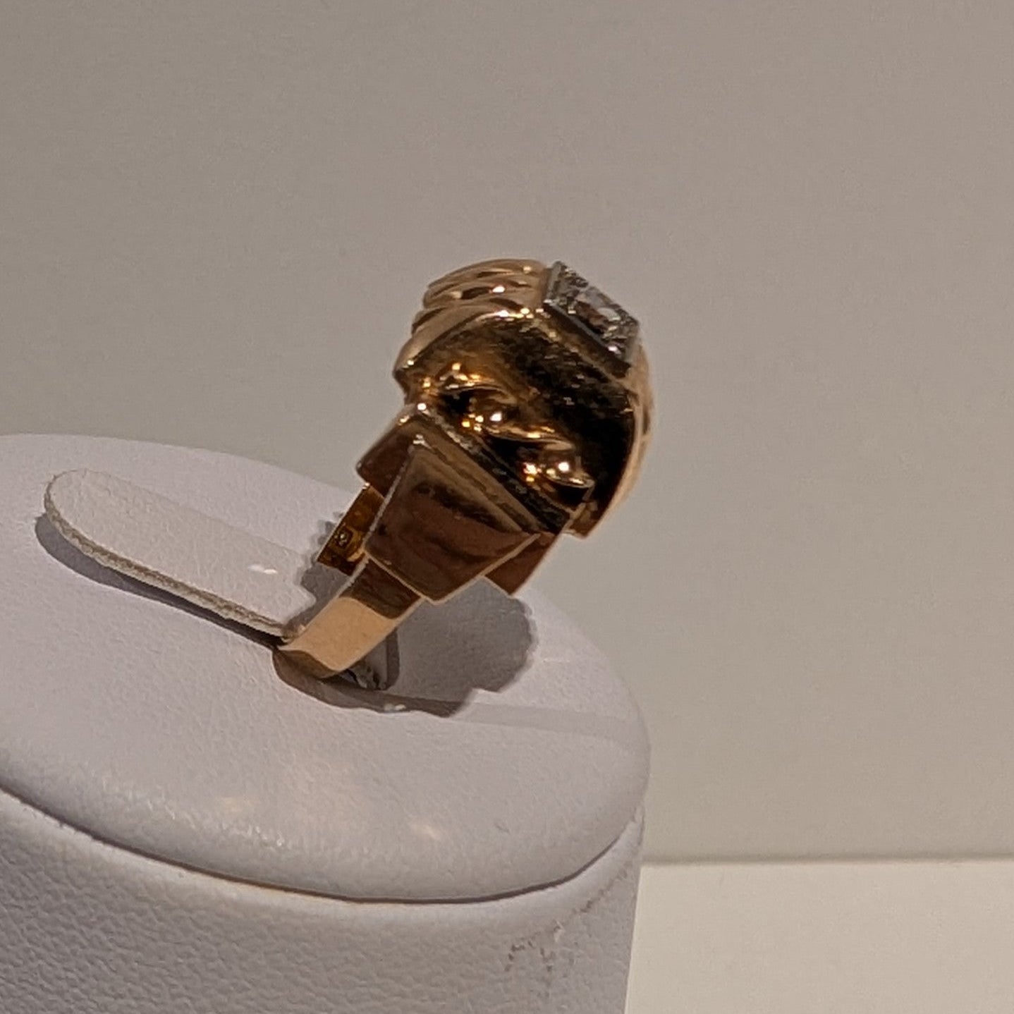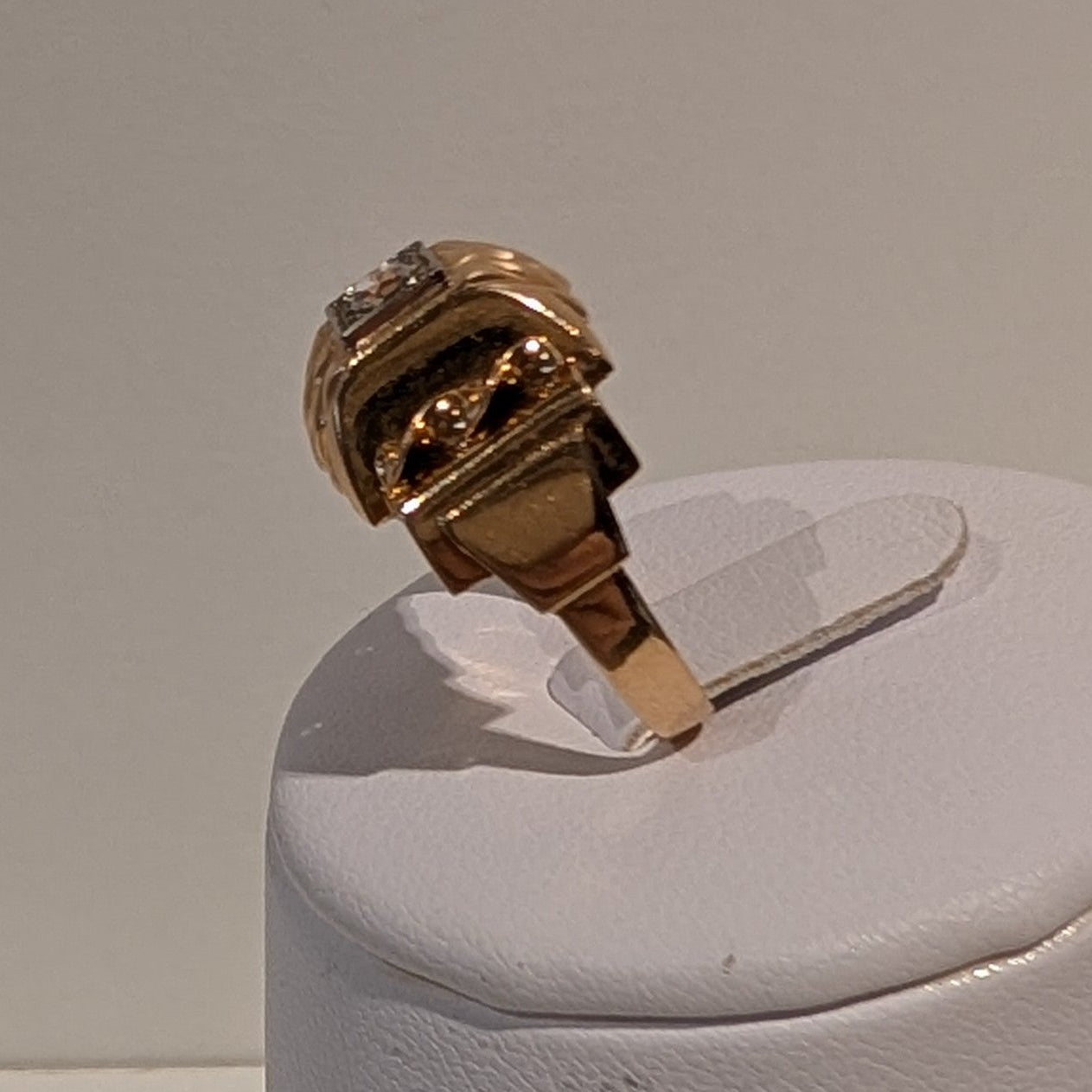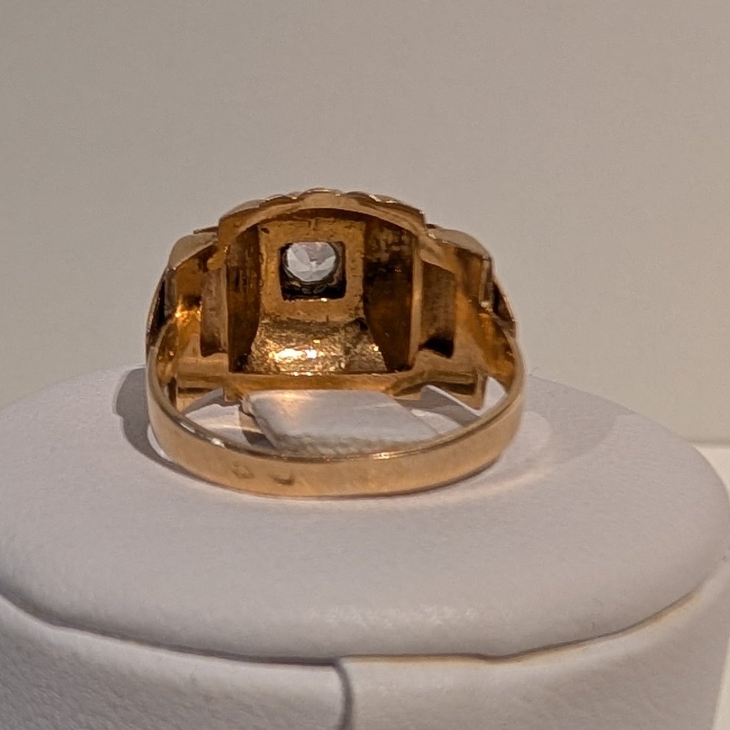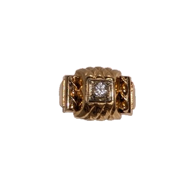 Bague tank en or jaune 750/1000 (18 carats), ornée d’une pierre industrielle transparente. Poids : 4,73 g. Taille 54. Bon état.