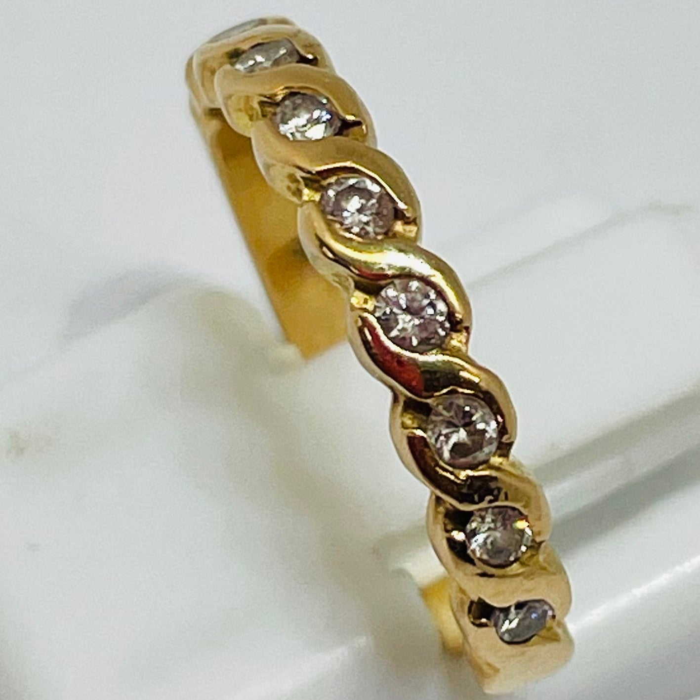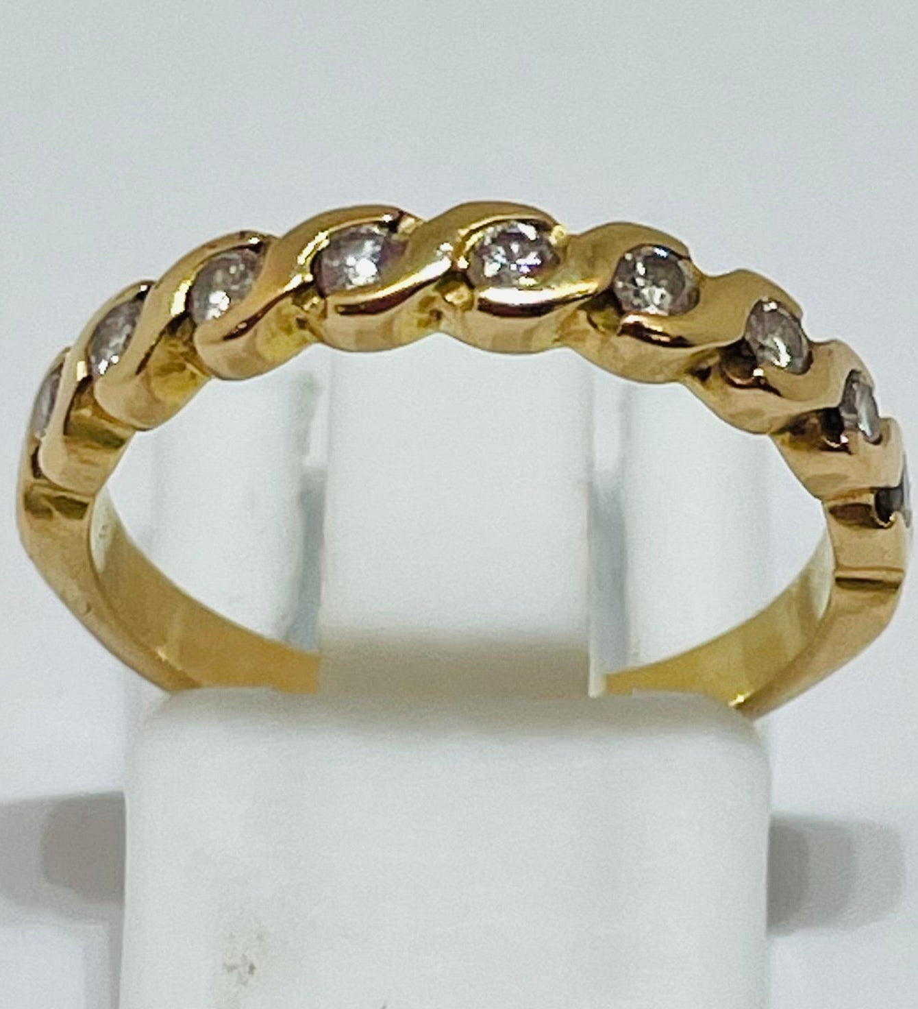 Bague demi-tour en or jaune 750/1000 (18 carats), sans poinçon, avec un poids de 2,63 g. De taille 50, elle est ornée de 9 diamants et est présentée dans un état comme neuf.