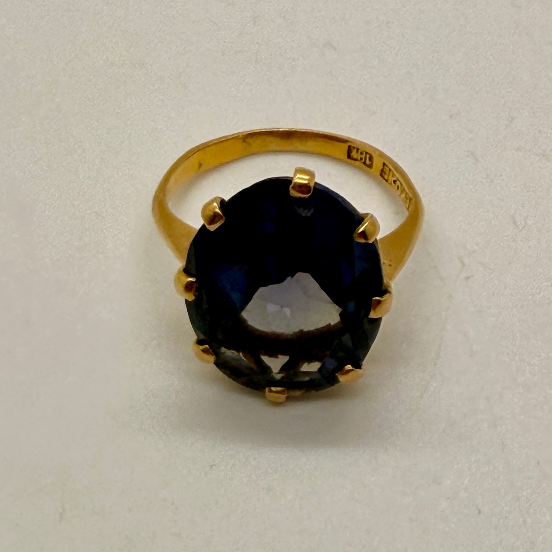 Bague ancienne en or jaune 750/1000, poinçonnée 18K, d’un poids de 4,71 g. Taille 51, sertie d’une améthyste. Bon état général.