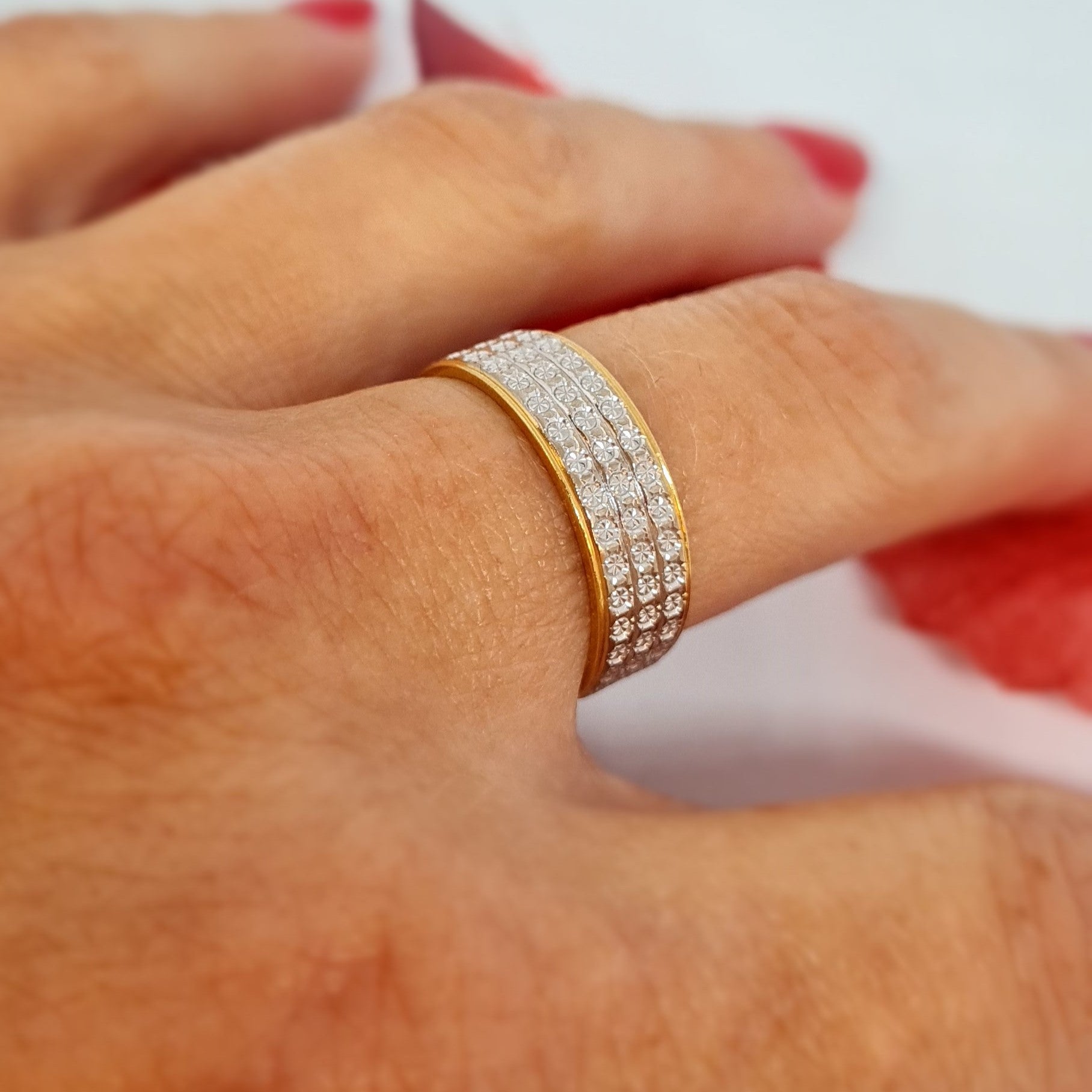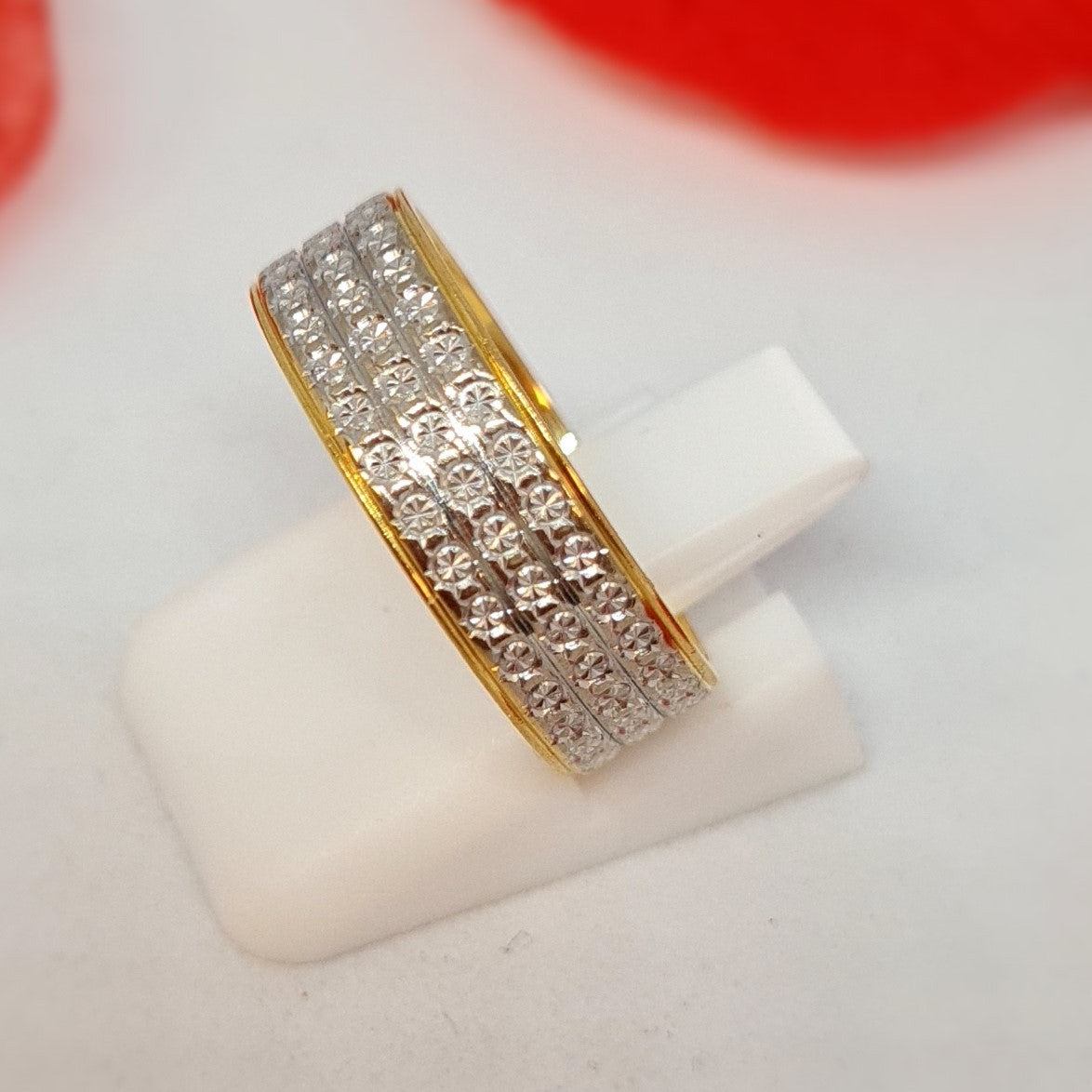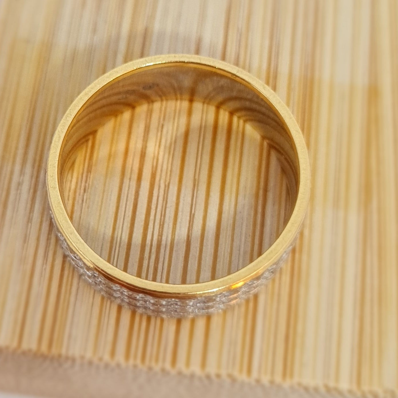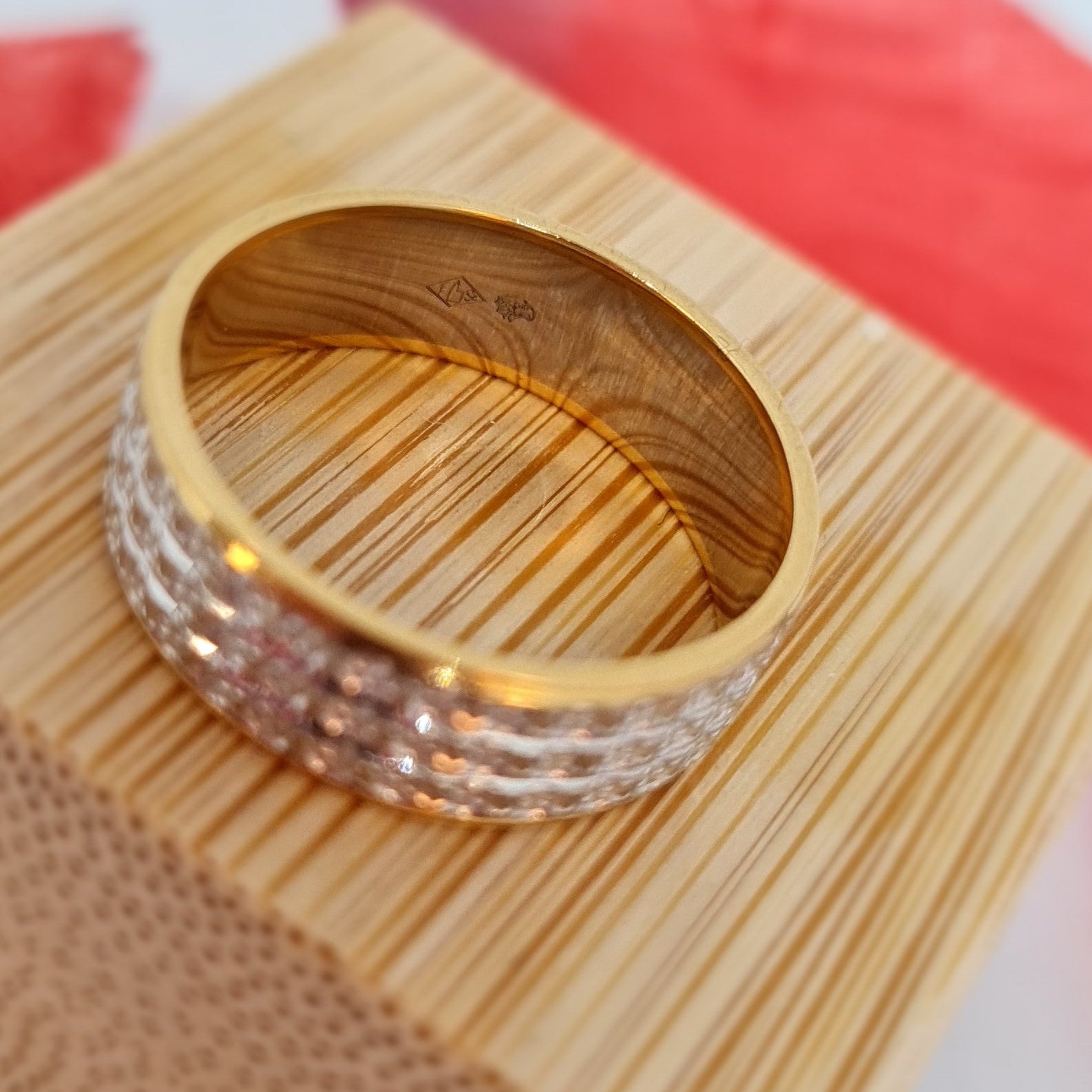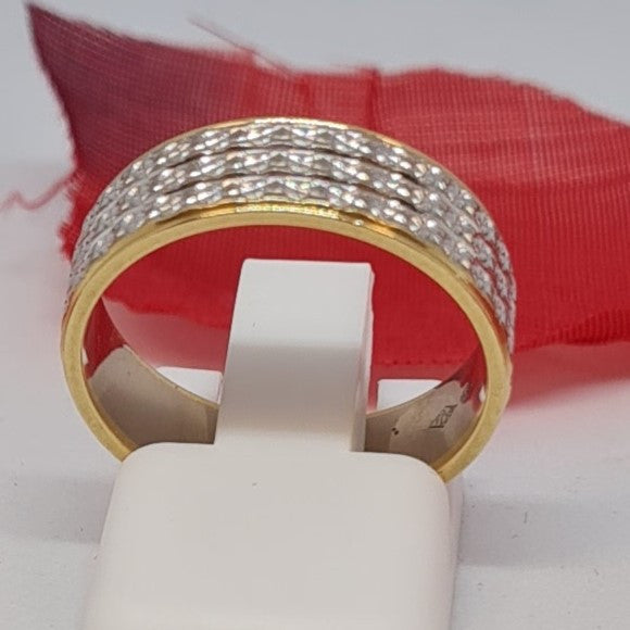 Très belle alliance en or jaune 18k et or blanc travaillé effet diamants