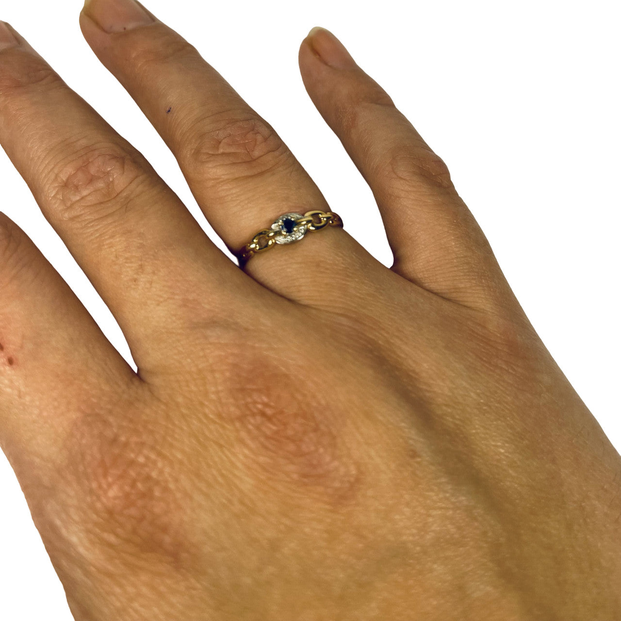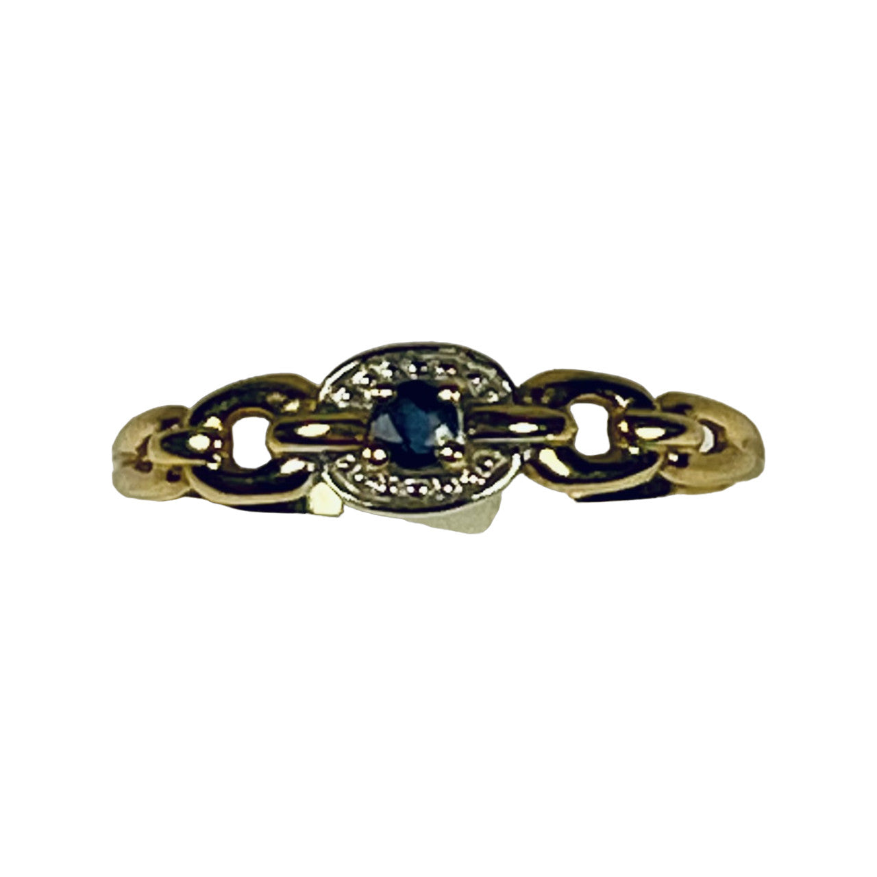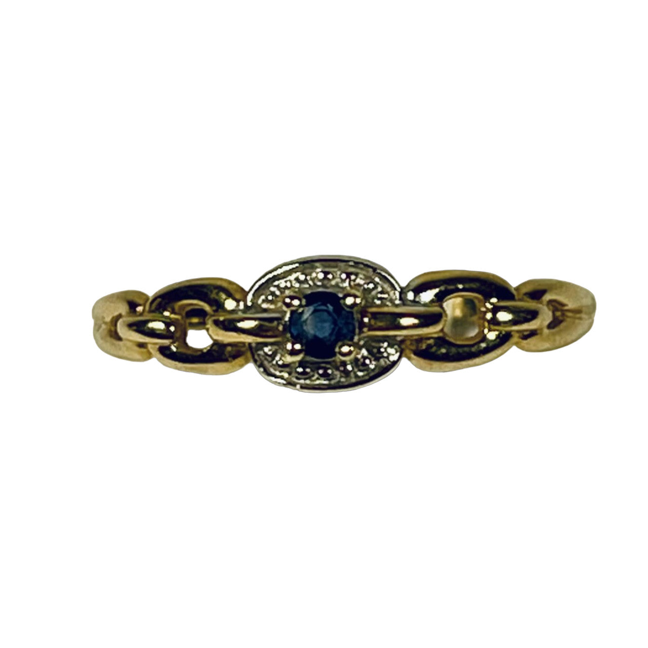 Magnifique bague en or jaune 750/1000, avec une pierre bleue.