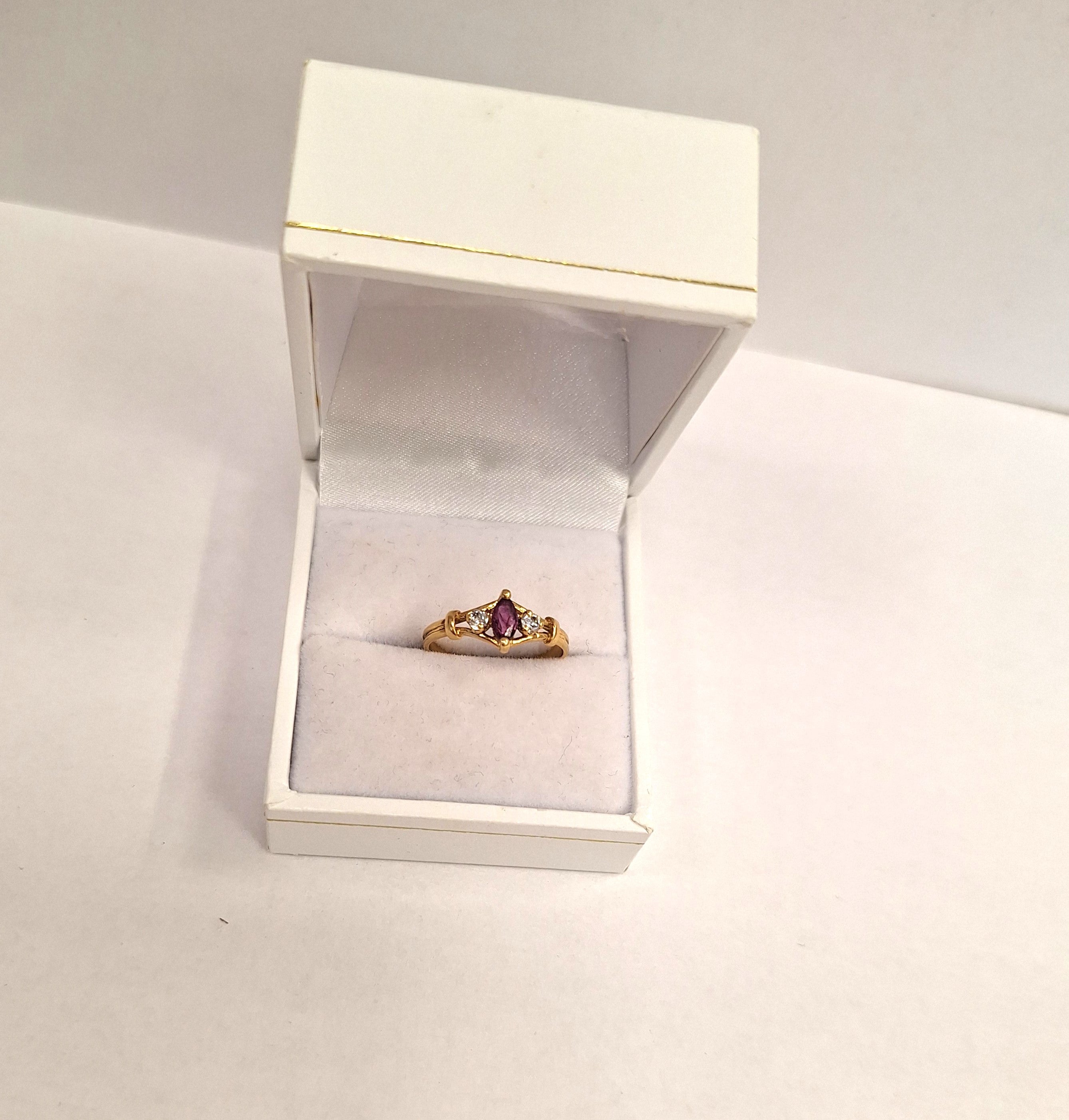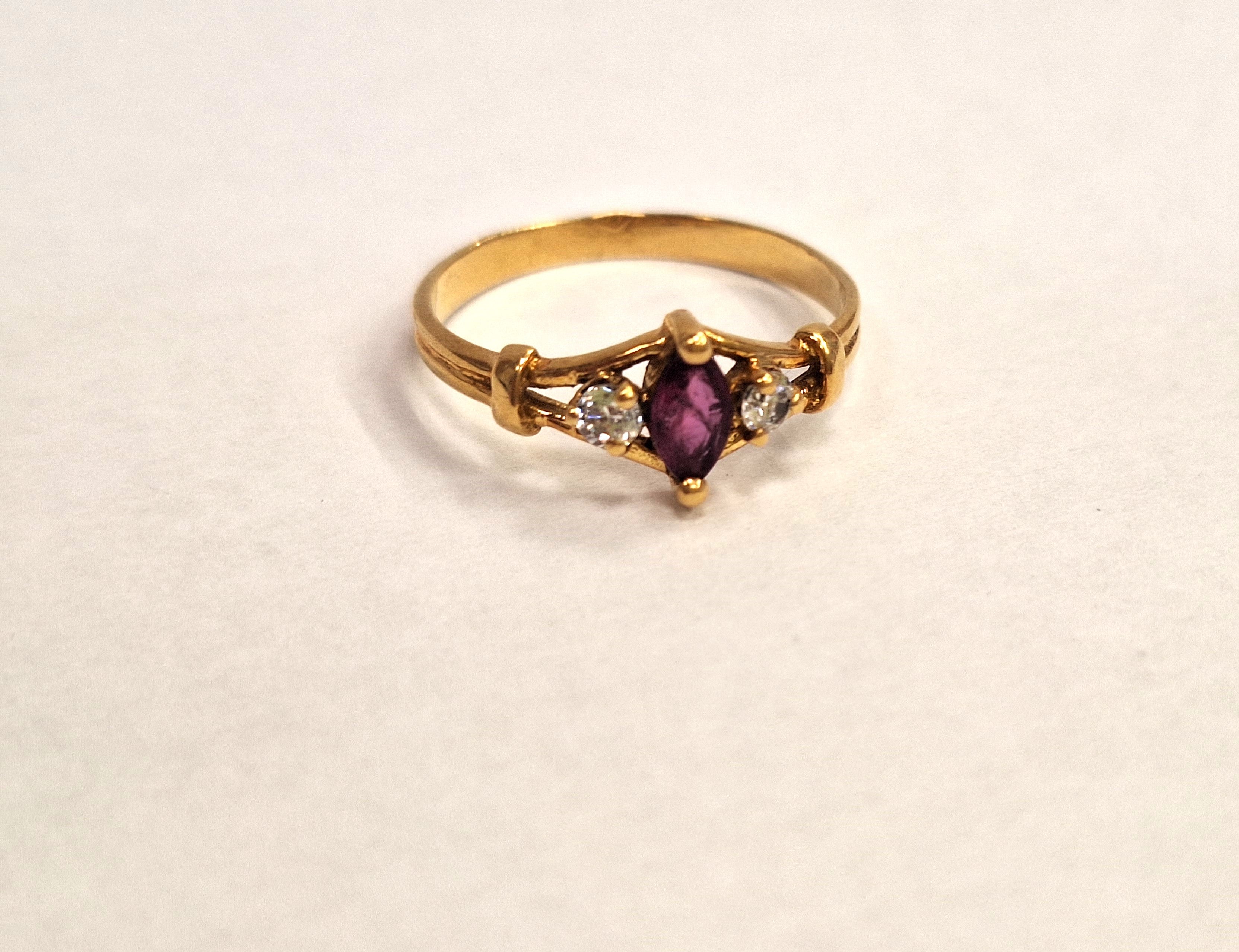 Très bague en or jaune 18 carats avec deux jolie zirconium qui entoure sa pierre naturelle rose.