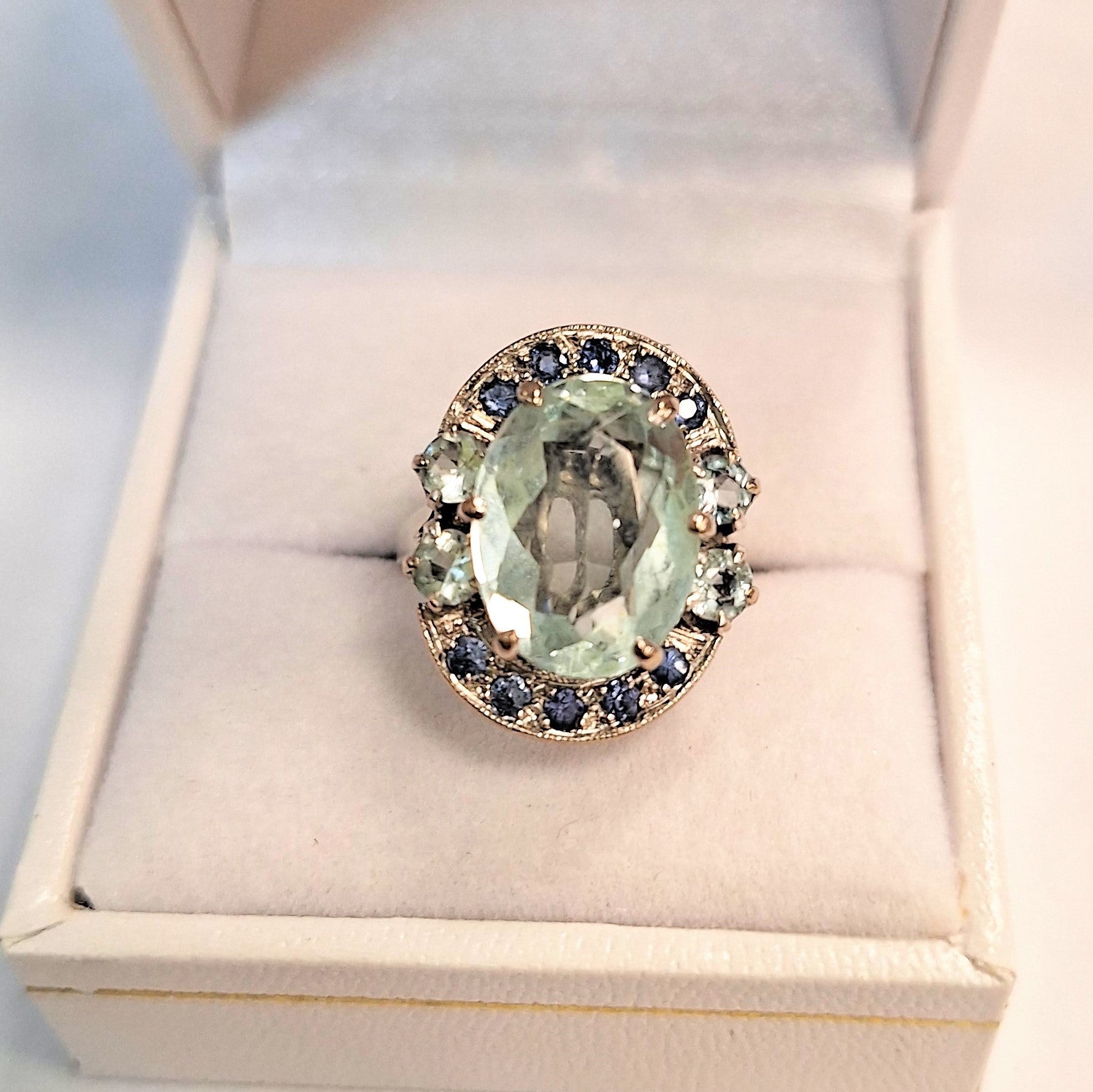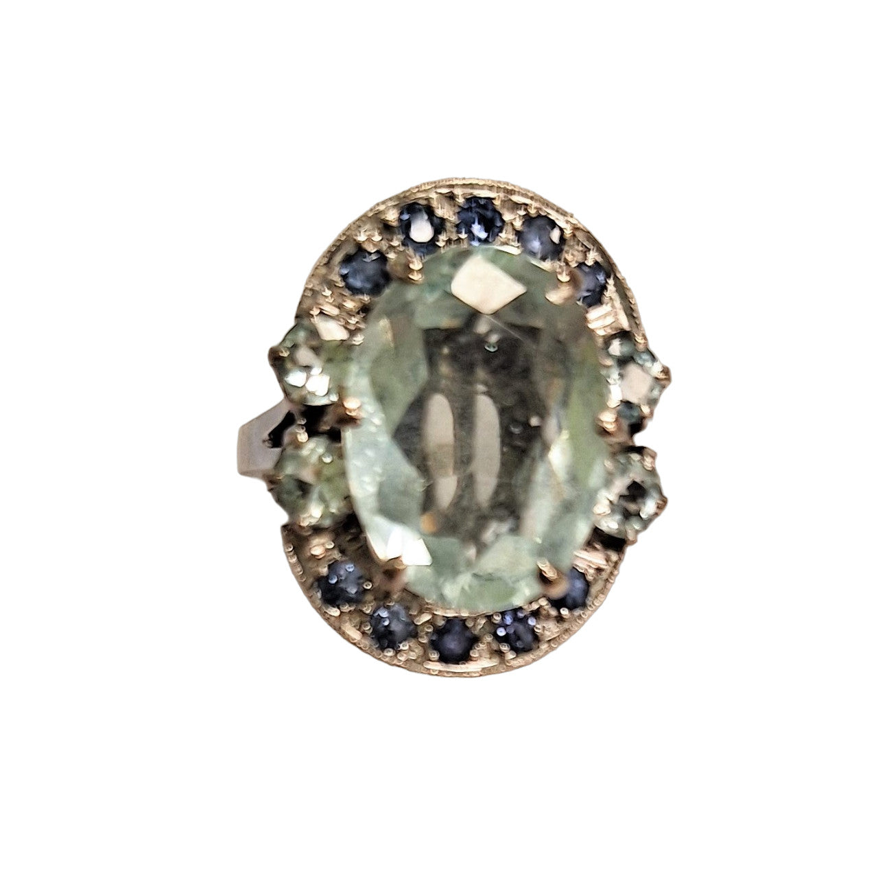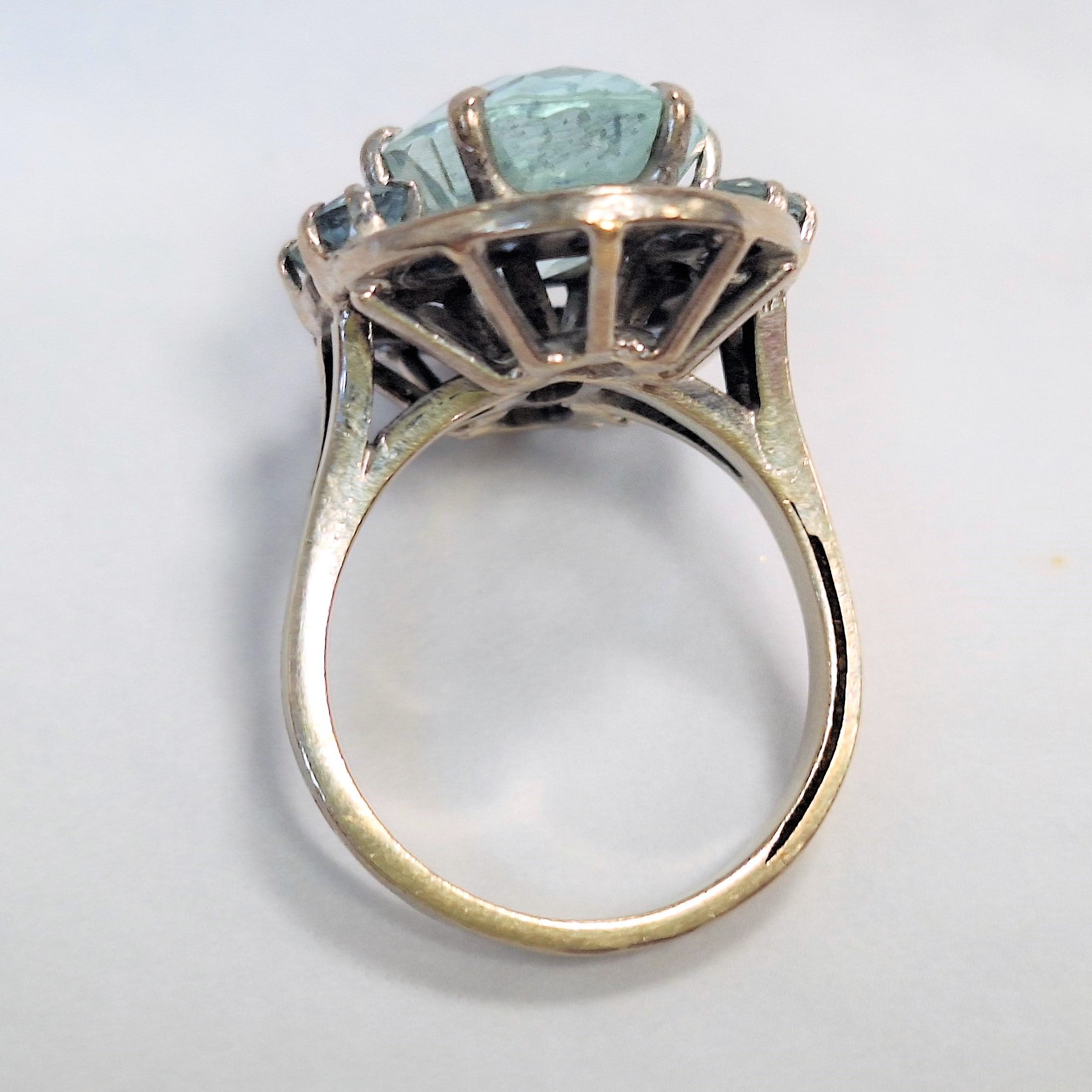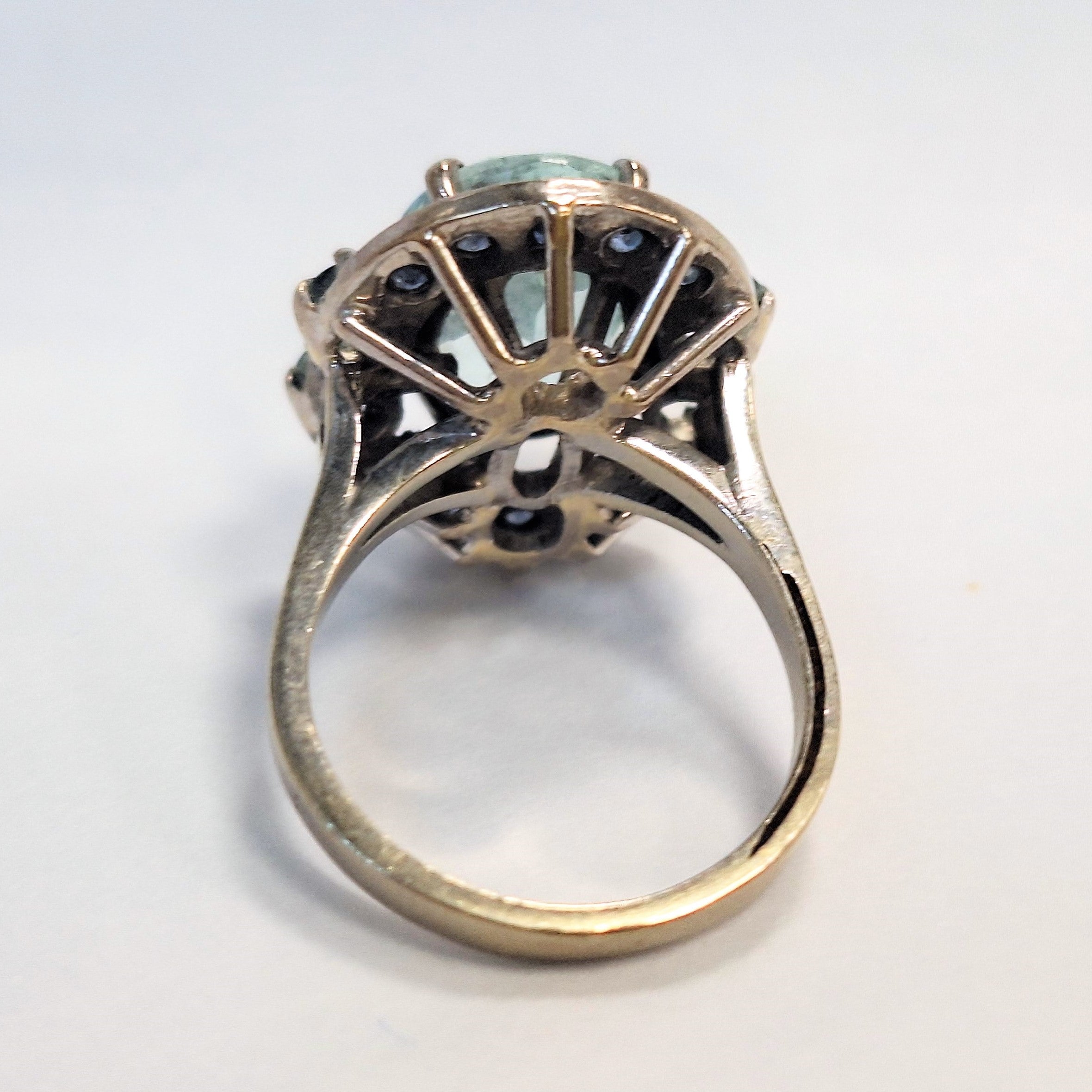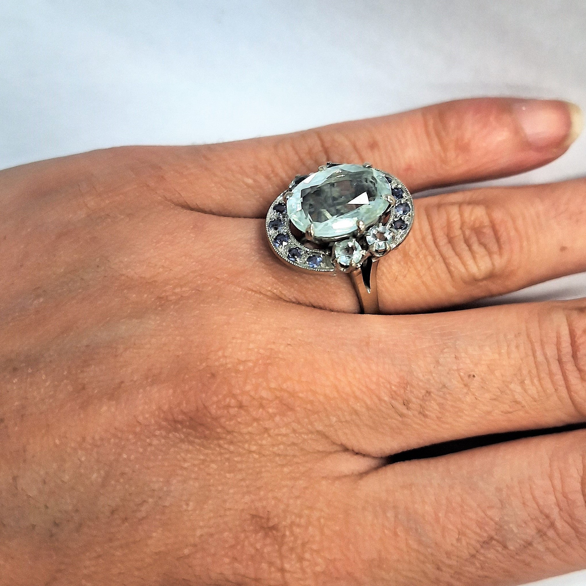 Bague Ancienne Or Blanc avec Pierre Bleue et Oxydes