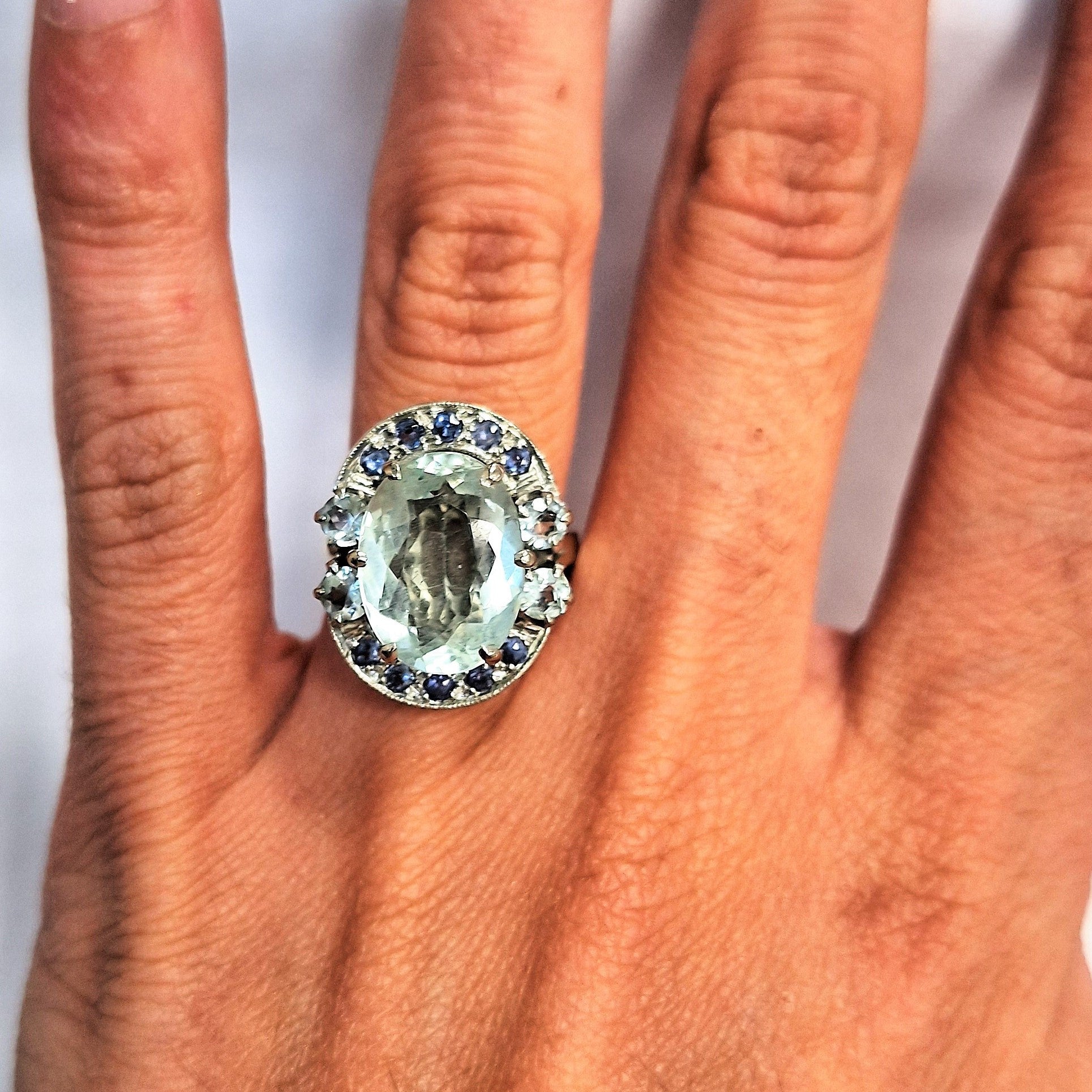 Magnifique bague ancienne en or blanc 18 carats sertie de jolie pierres de différents bleues (dont 10 naturelle 0.02 carat chacune).