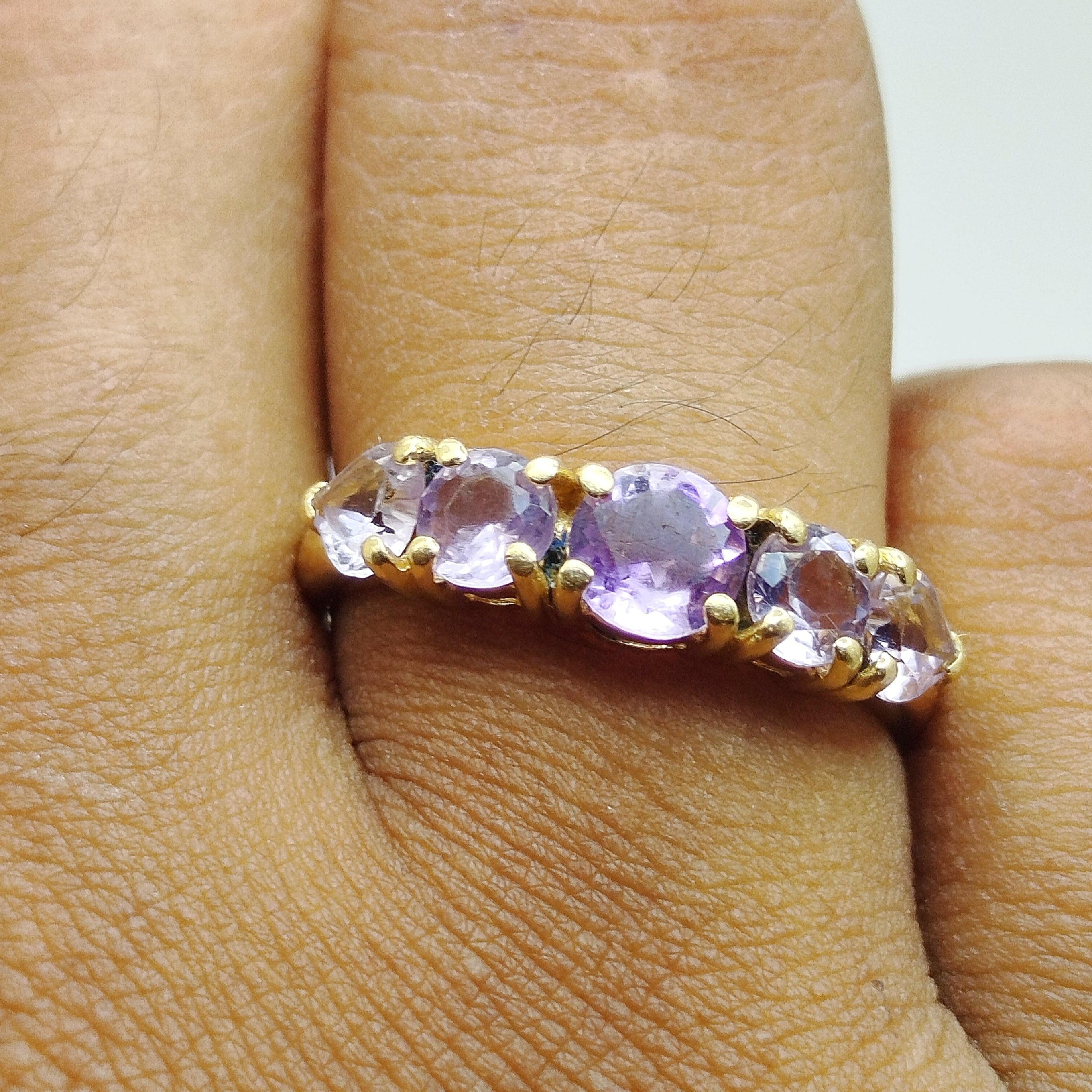 Bague demi-tour en or jaune 18 carats, poinçon 750, sertie d’améthystes. Taille 52, poids 2,54 g, en très bon état.