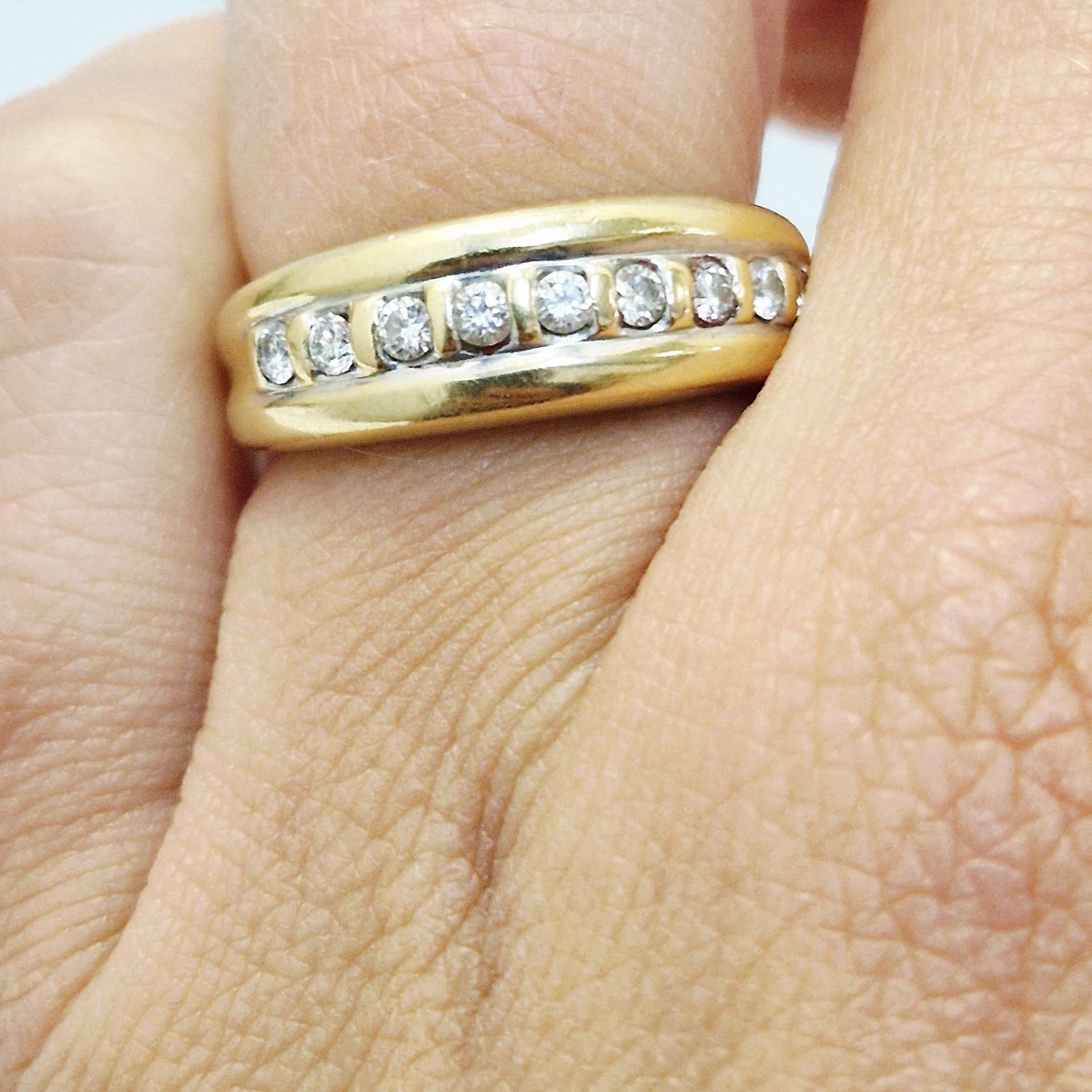 Élégance intemporelle : une alliance d’or 750/1000 sublimée par l’éclat raffiné des diamants.