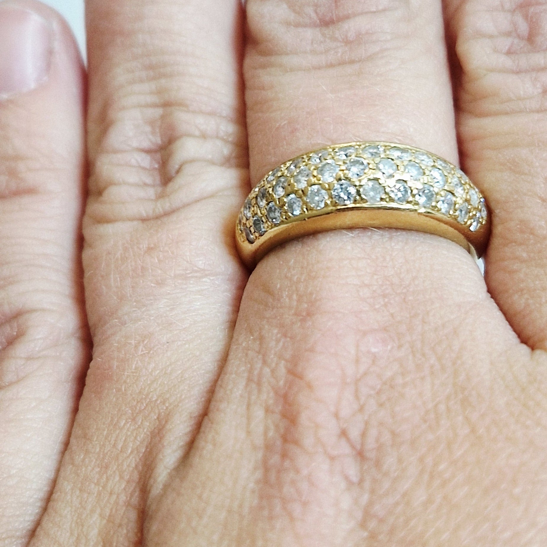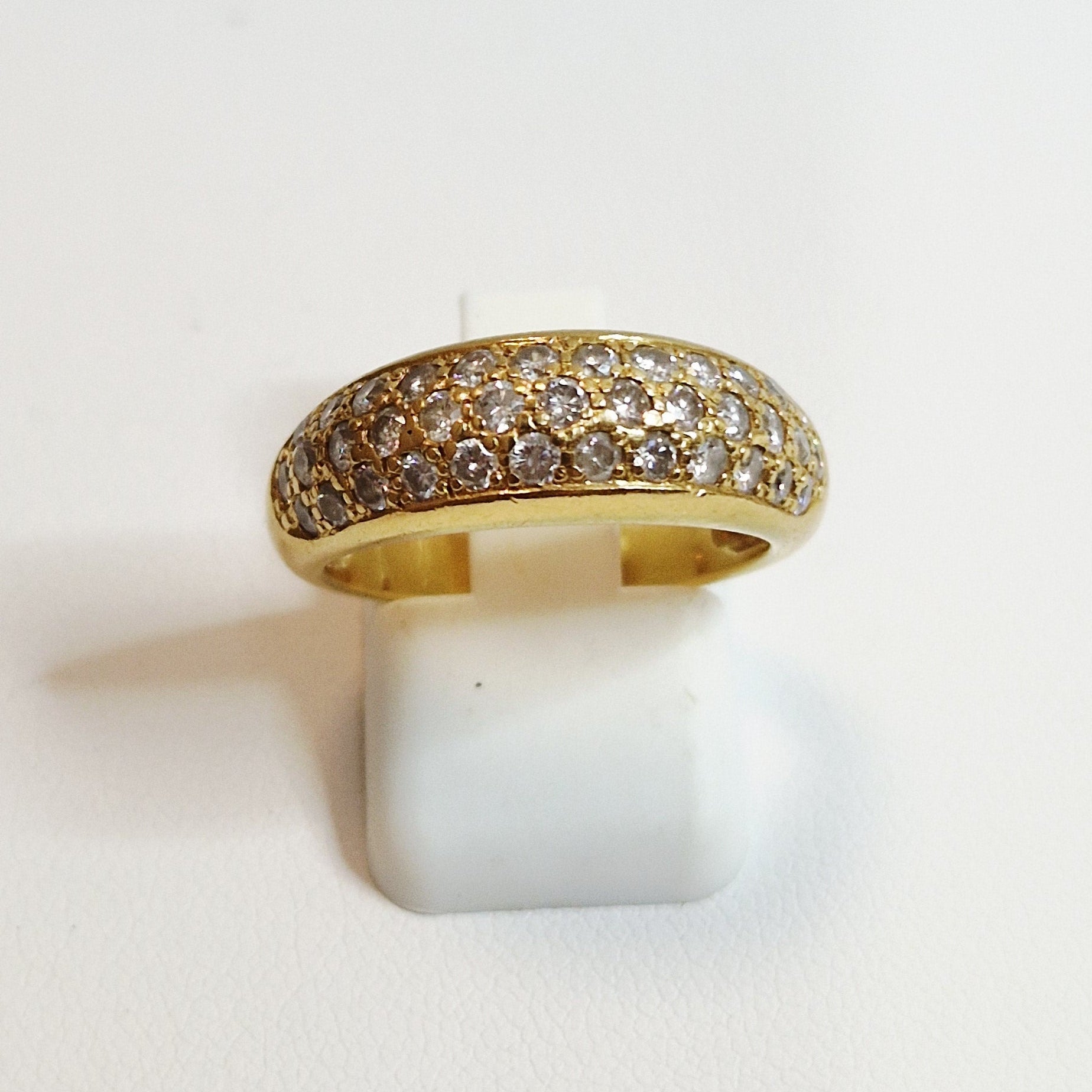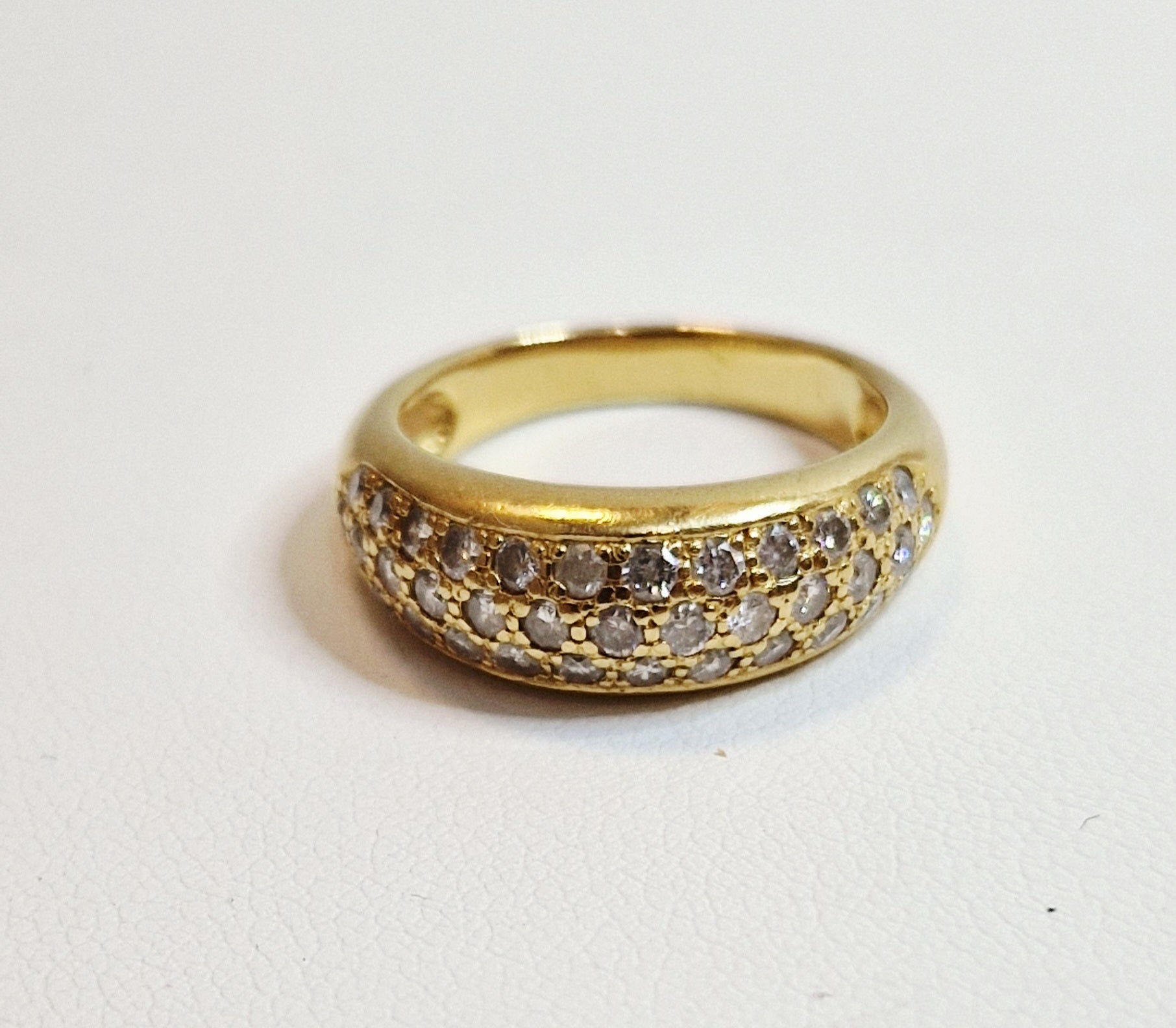 Bague demi-tour en or jaune 750/1000, sertie de 39 diamants ronds de 1 mm, répartis harmonieusement sur la moitié de l’anneau. Ce modèle combine élégance discrète et brillance subtile, idéal pour un usage quotidien ou une occasion particulière.