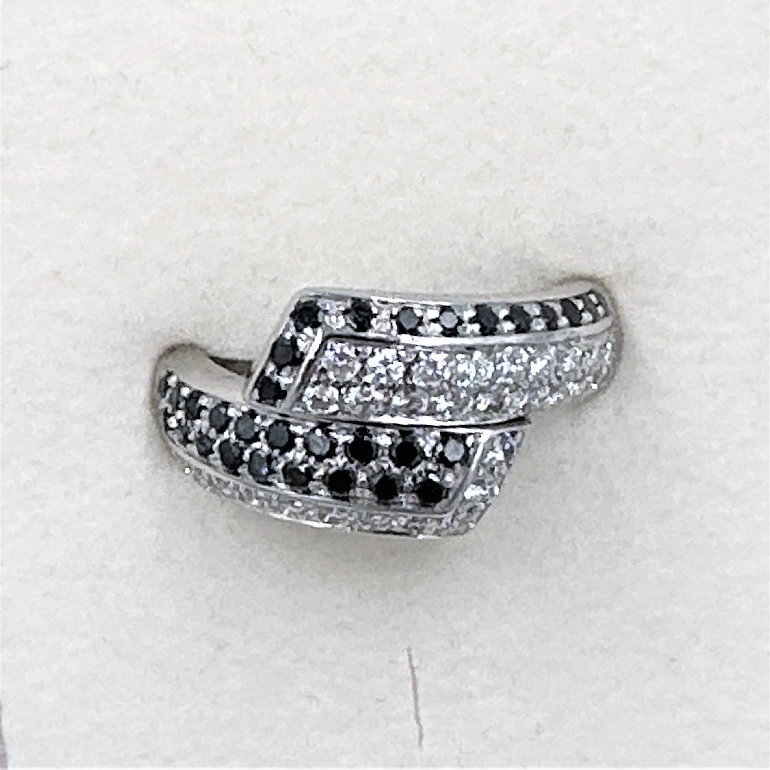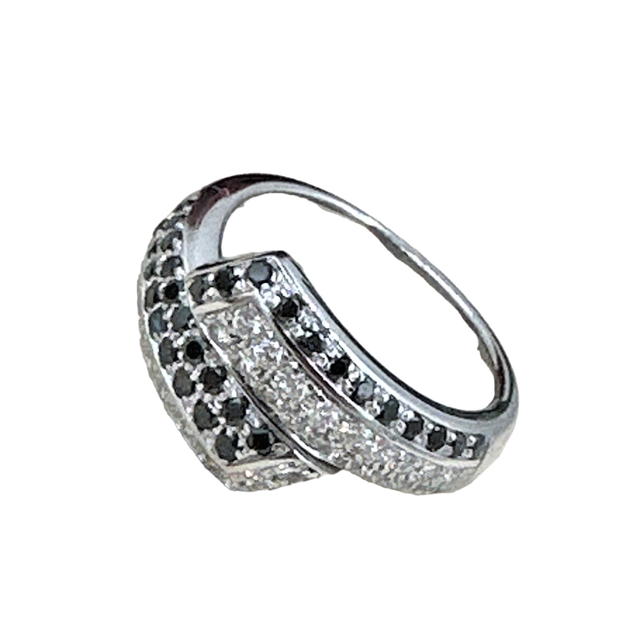 Magnifique bague en or blanc 18 carats ornée de diamants noirs et diamants classiques