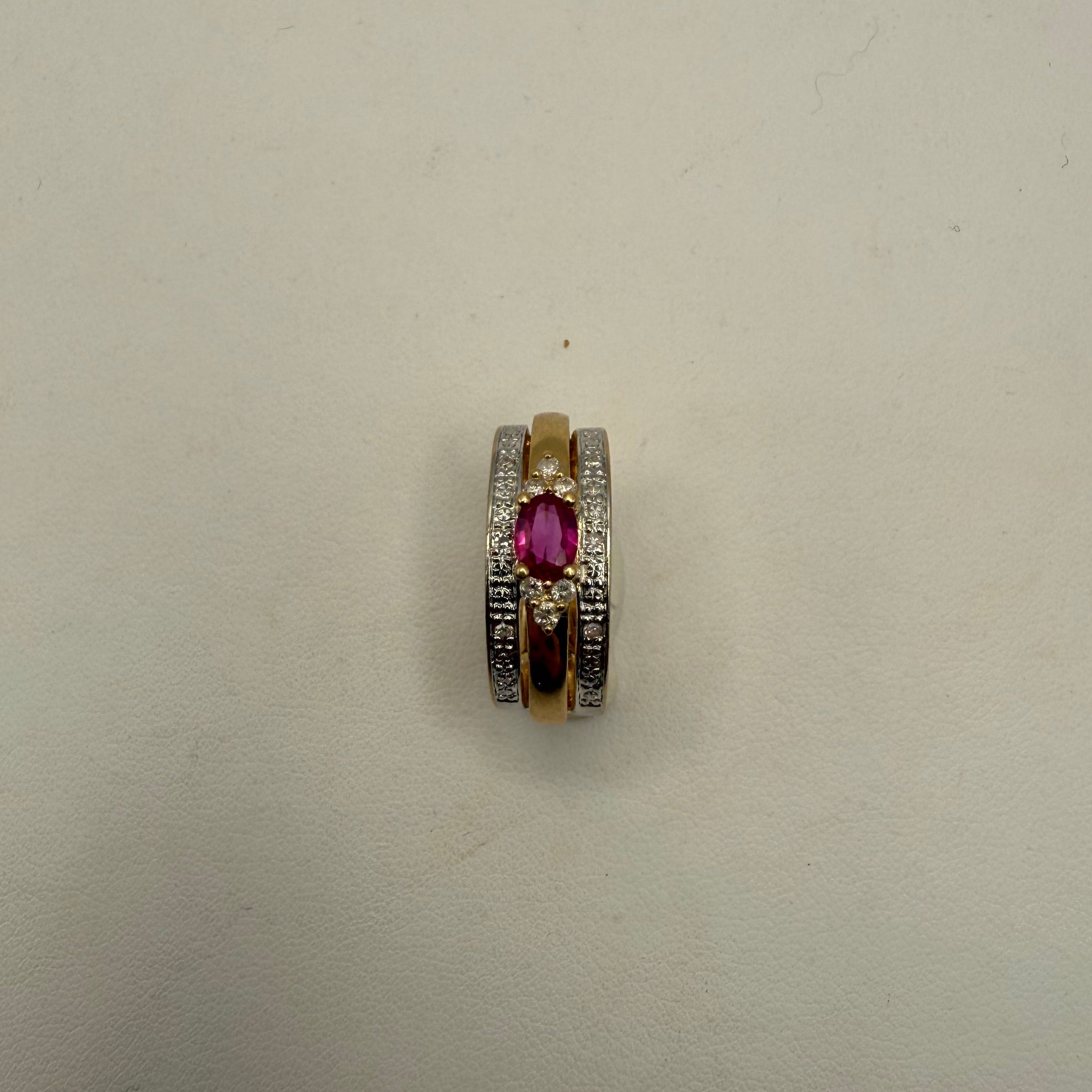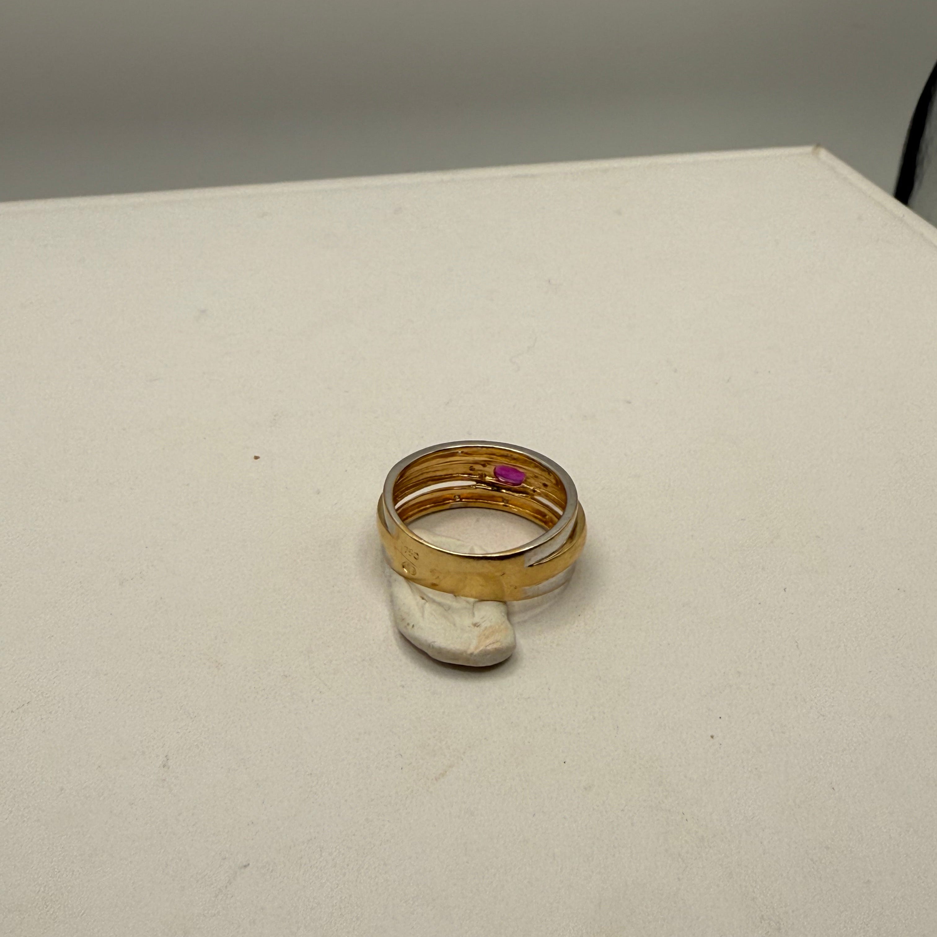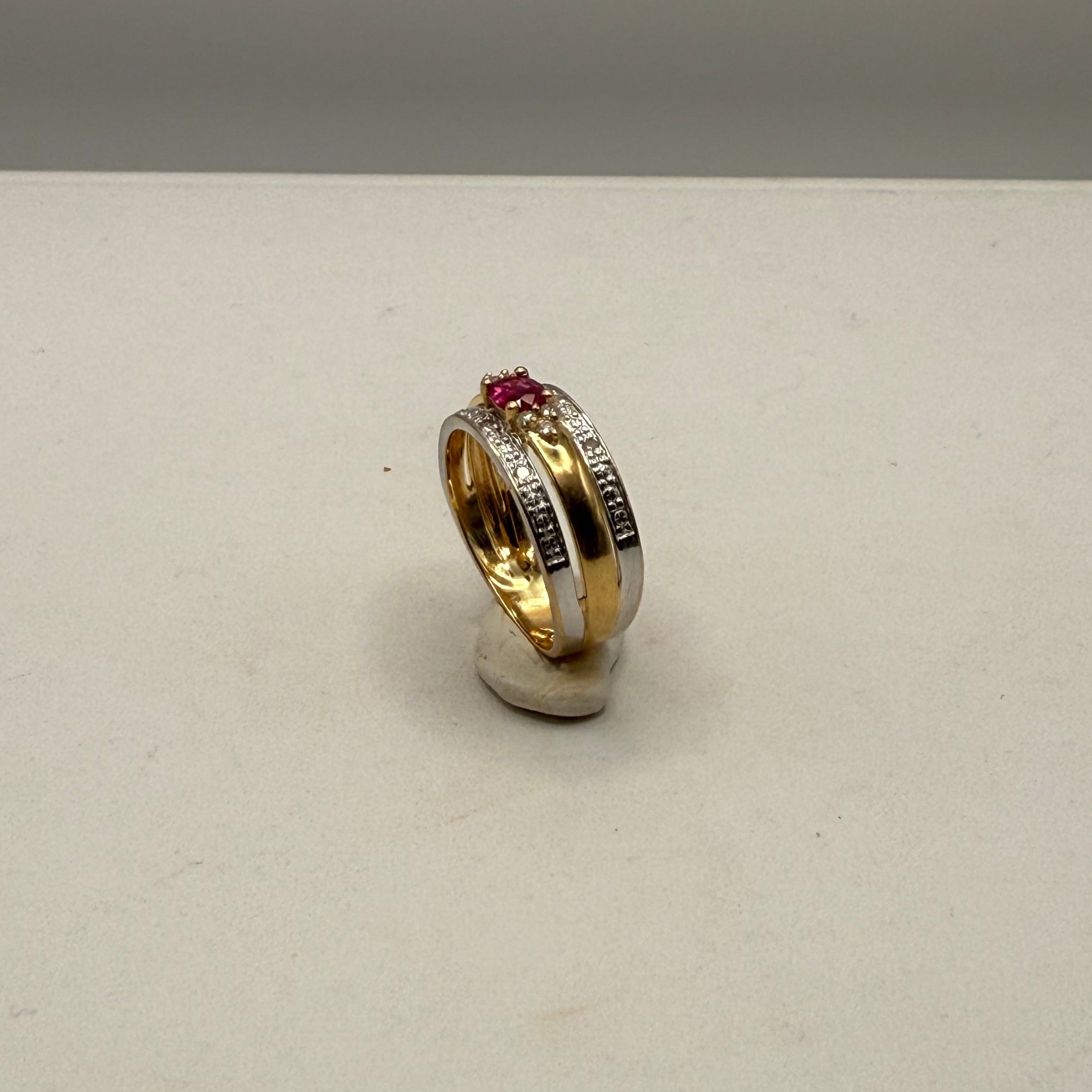 Bague en Or Jaune, Or Blanc 18K avec Diamants et Rubis 3.89 Grs Taille 54