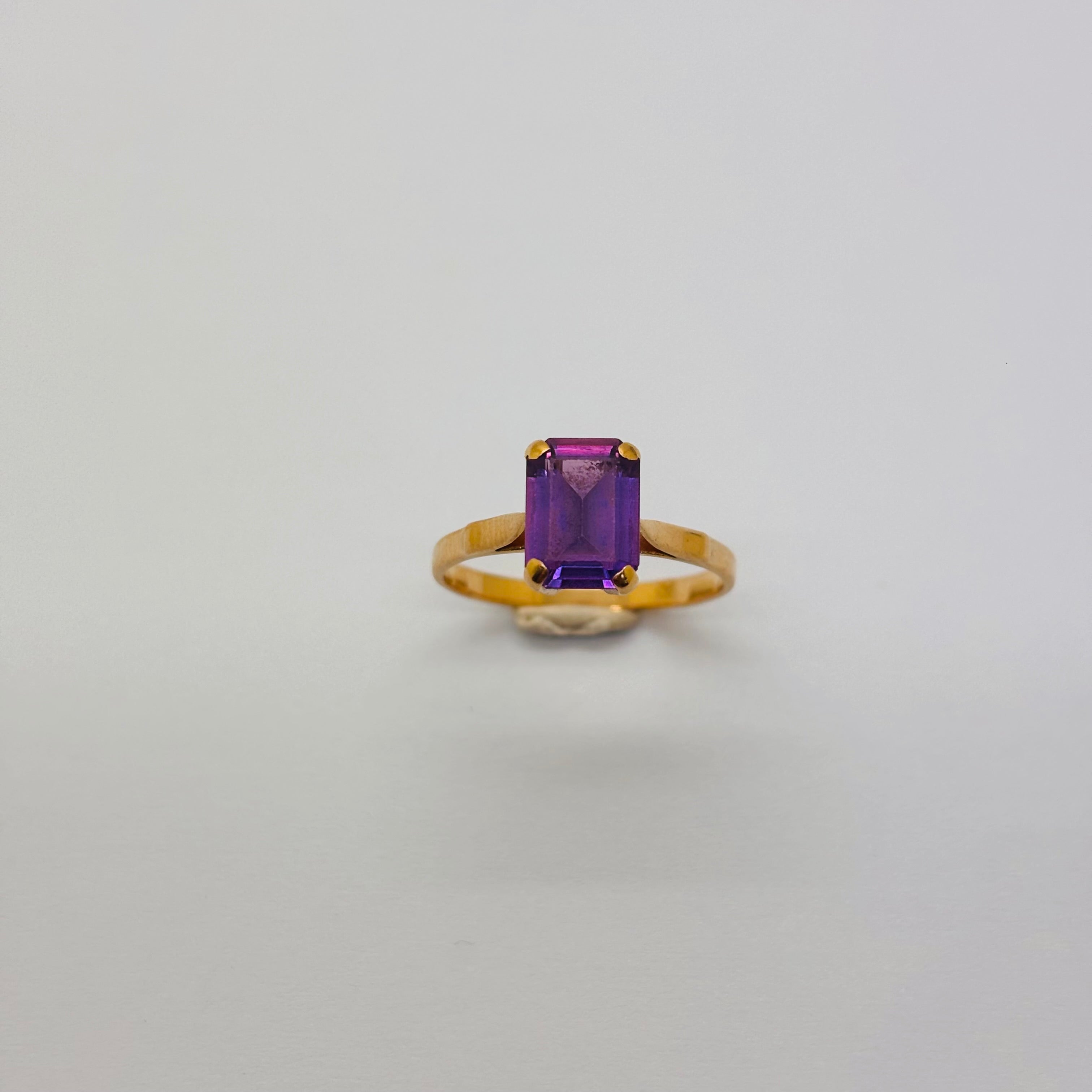 Bague en Or Jaune 18K avec améthyste unique 1.97 Grs - Taille 48