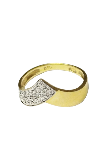Bague empierrée est conçue en or jaune 18 carats (750/1000) et porte le poinçon 750, garantissant son authenticité. Elle pèse 2,16 grammes et est proposée en taille 50. Son design raffiné est sublimé par la présence d’oxydes de zirconium. Cette pièce est en très bon état.