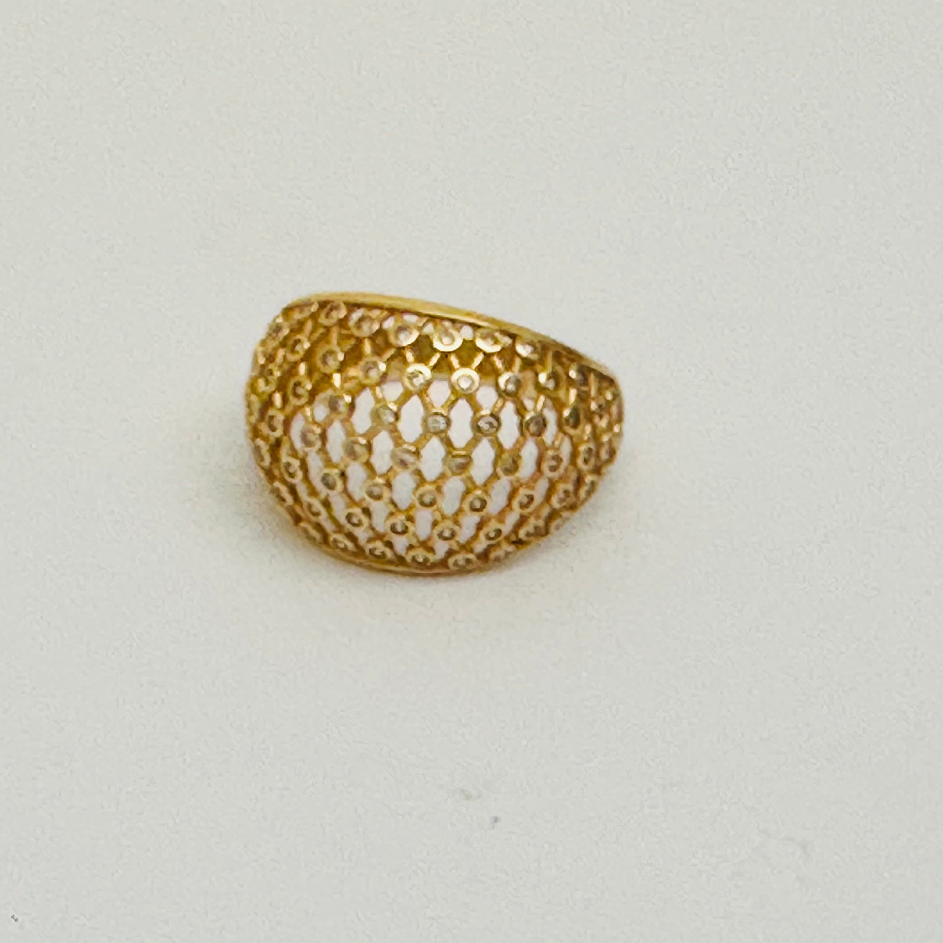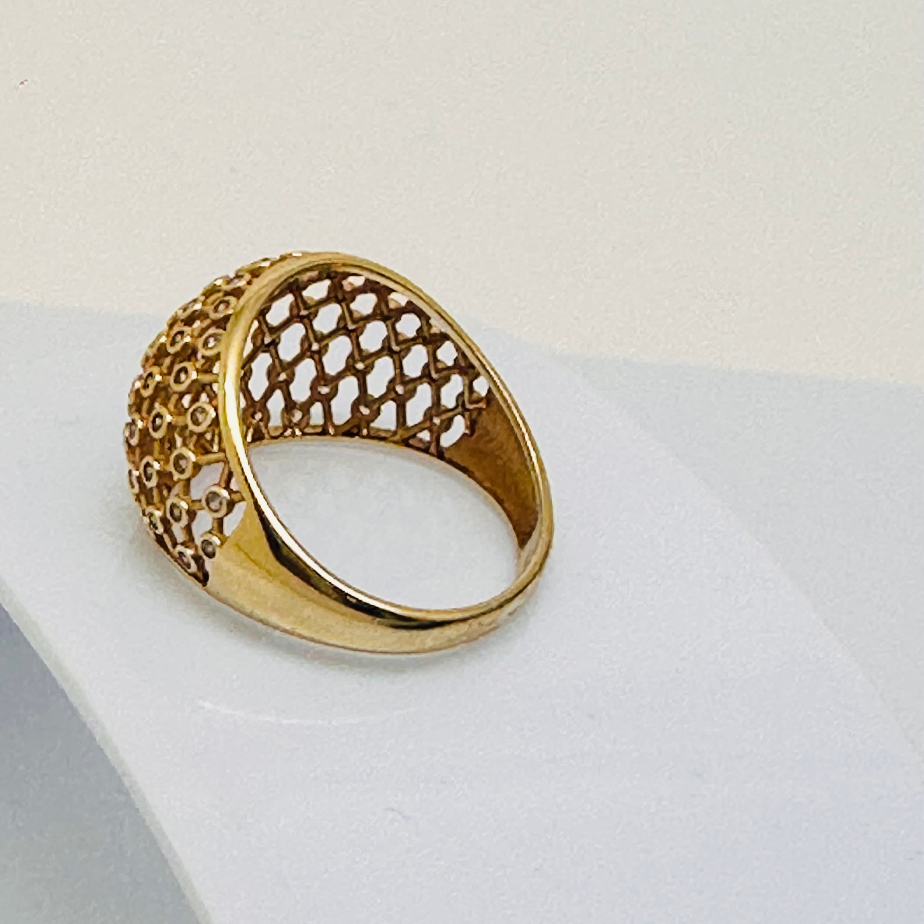 Bague empierrée en or jaune 18 carats (750/1000), poinçonnée Tête d’Aigle, d’un poids de 4,37 grammes et en taille 58. Elle est ornée d'oxydes de zirconium, apportant éclat et raffinement à l'ensemble. Le bijou est en très bon état.