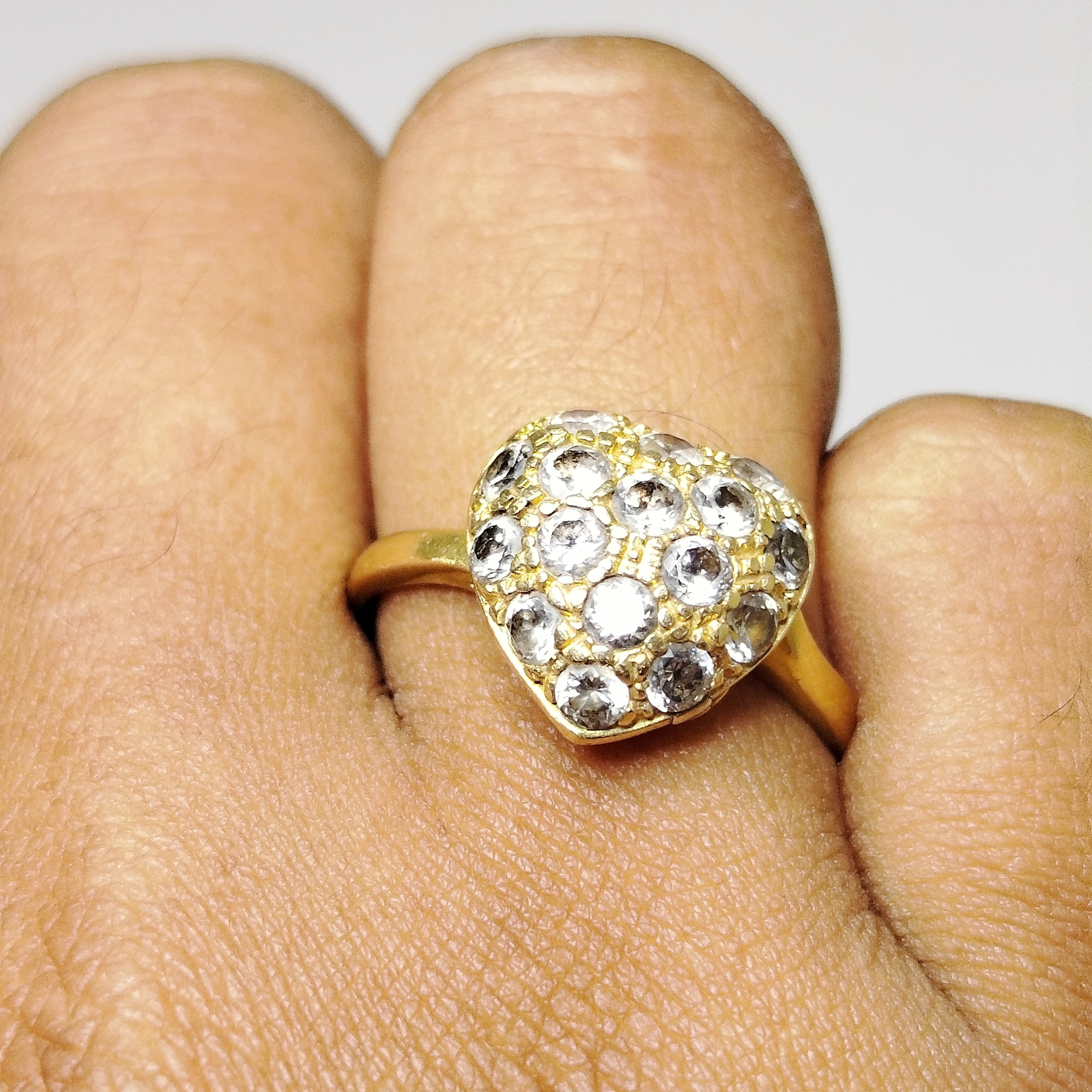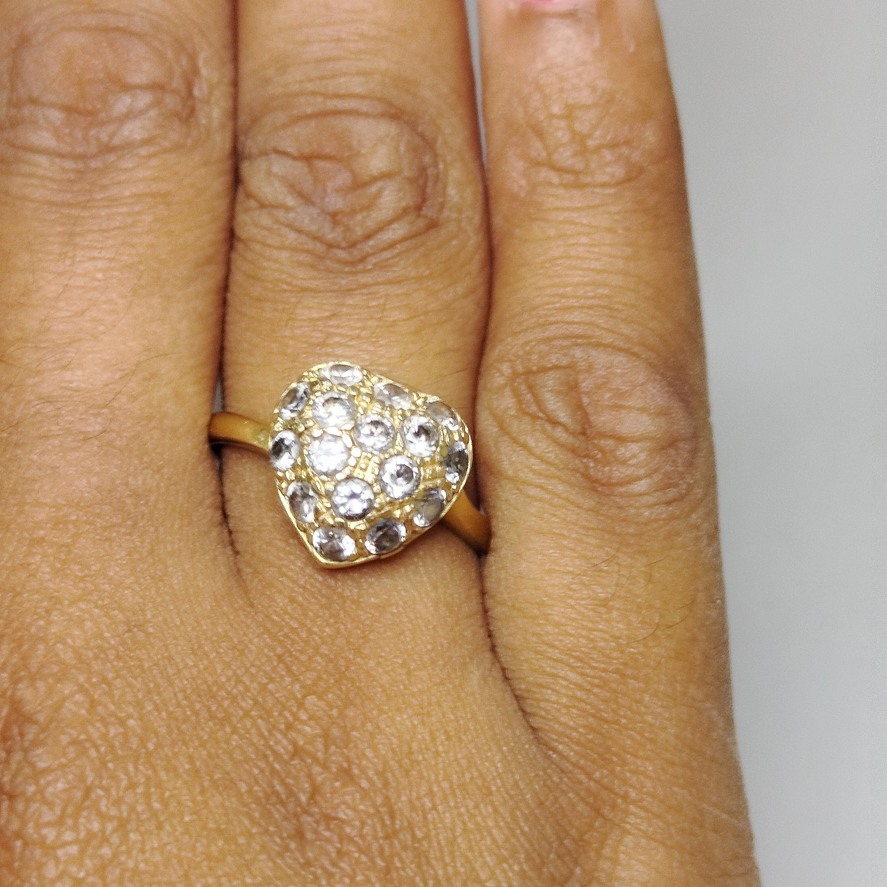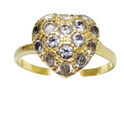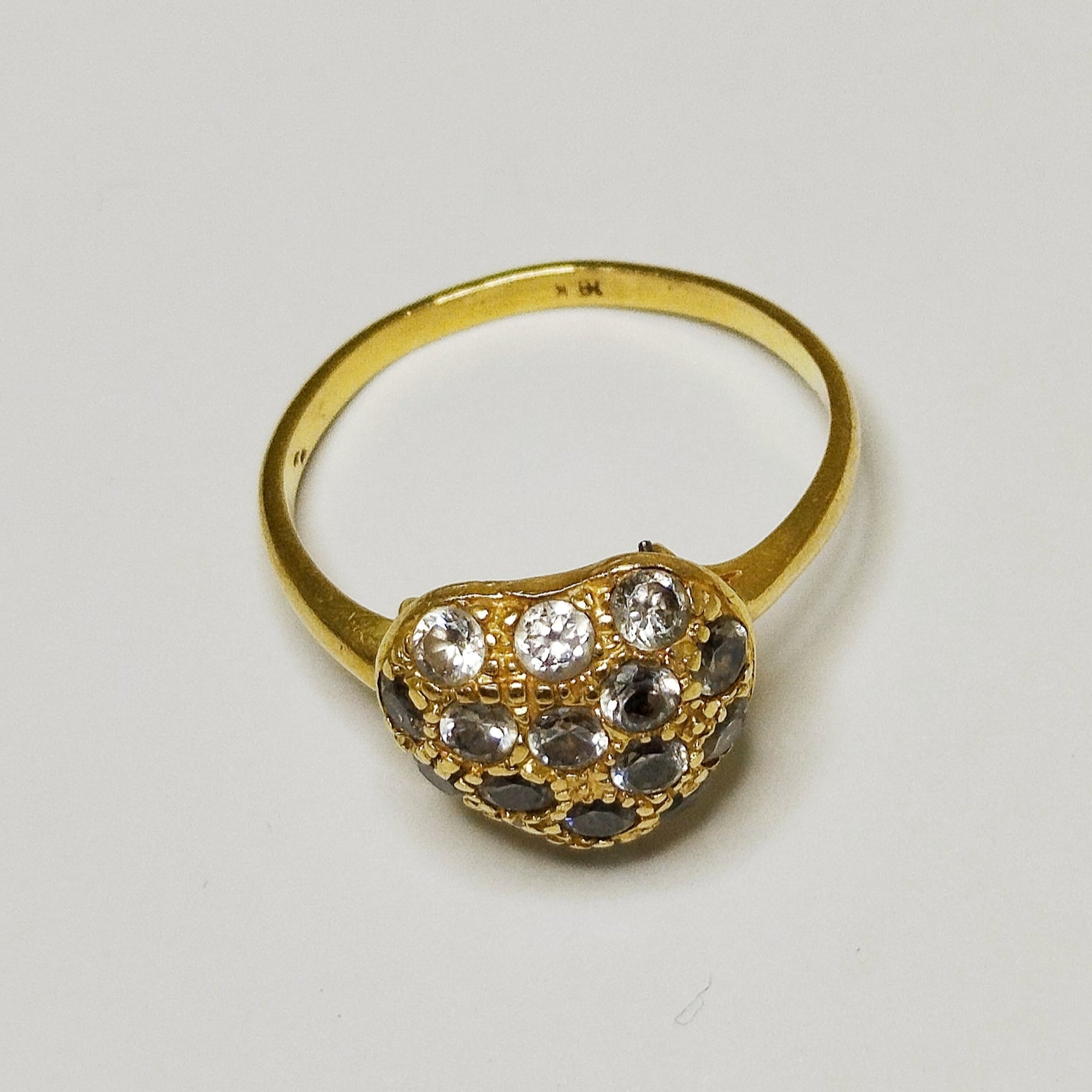 Bague empierrée en or jaune 18 carats (750/1000), poinçonnée 18K, d’un poids de 3,77 grammes et en taille 56. Elle est ornée d’oxydes de zirconium qui lui apportent éclat et brillance. En bon état.
