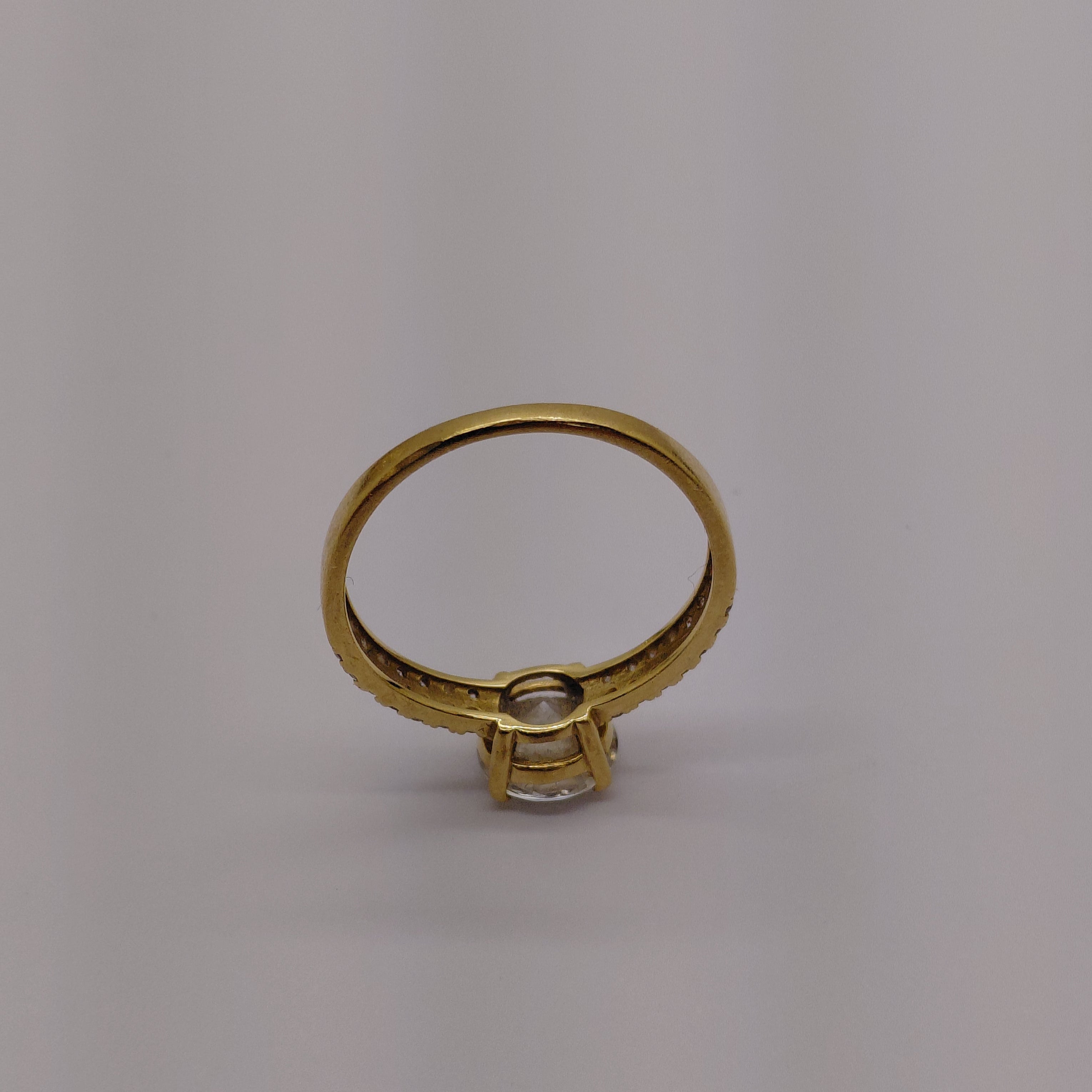 Bague empierrée en or jaune 18 carats (750/1000), poinçonnée 750. Sertie d'oxyde de zirconium. Poids : 2,16 grammes. Taille 51. Bon état.