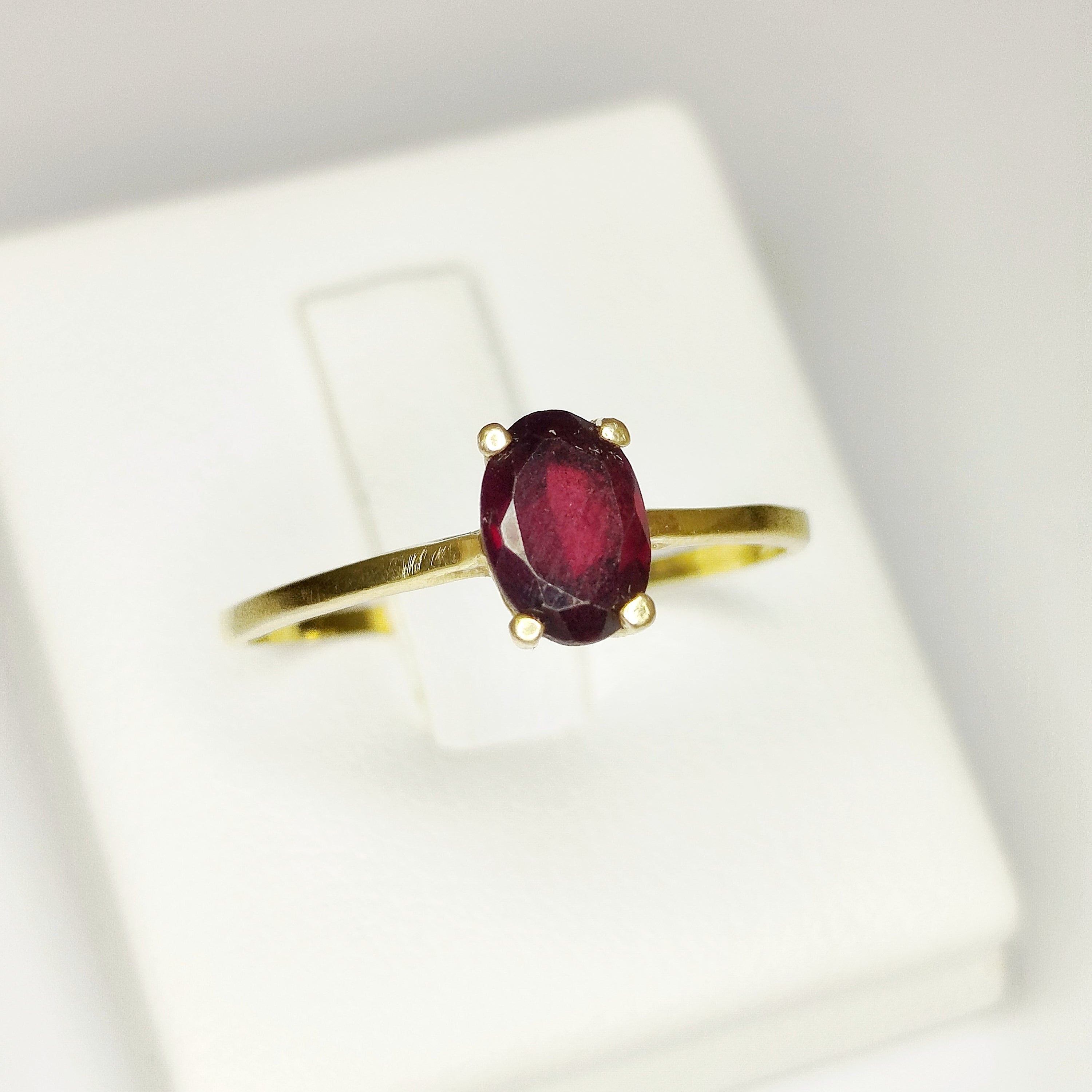 Bague en or jaune 18 carats, sertie d’un grenat.