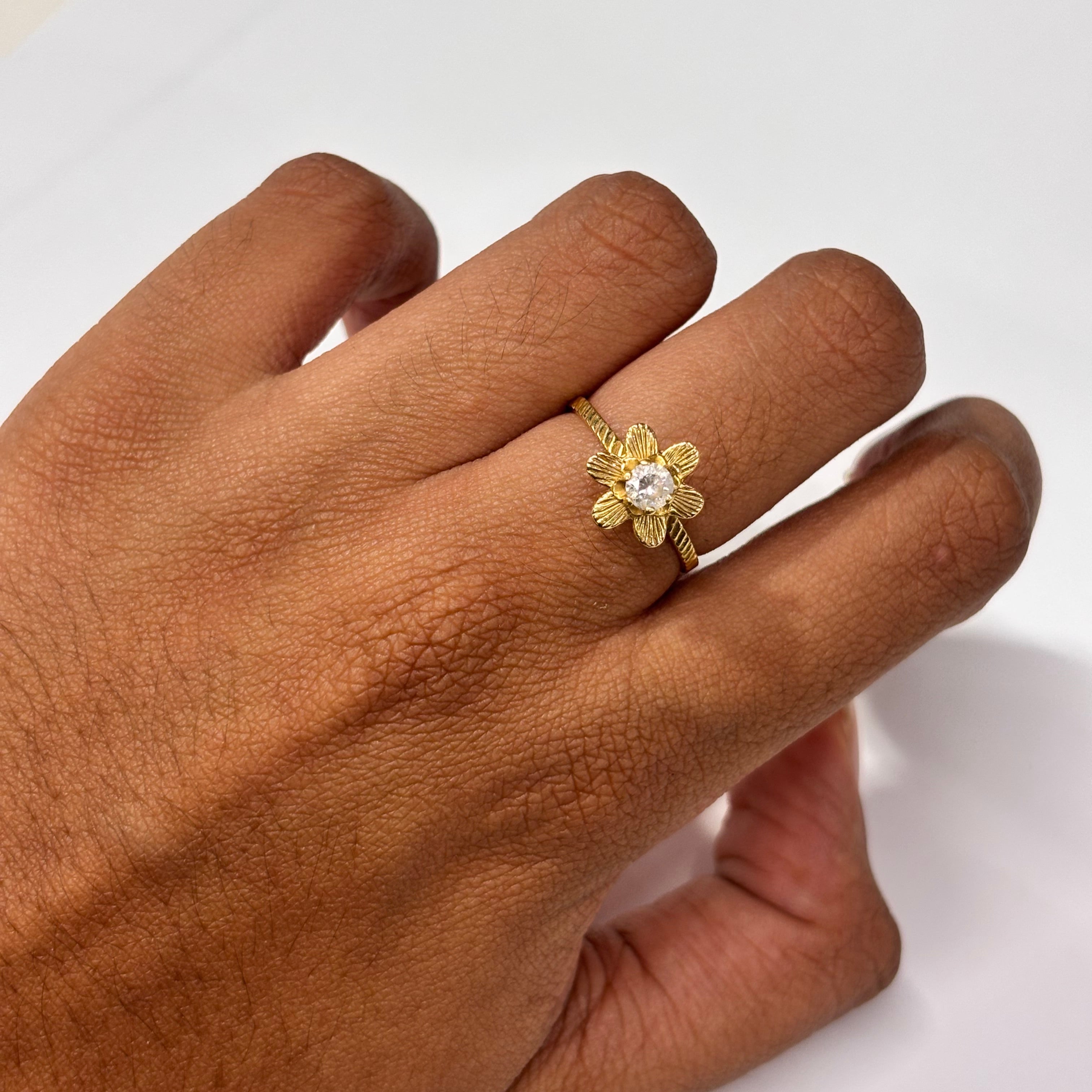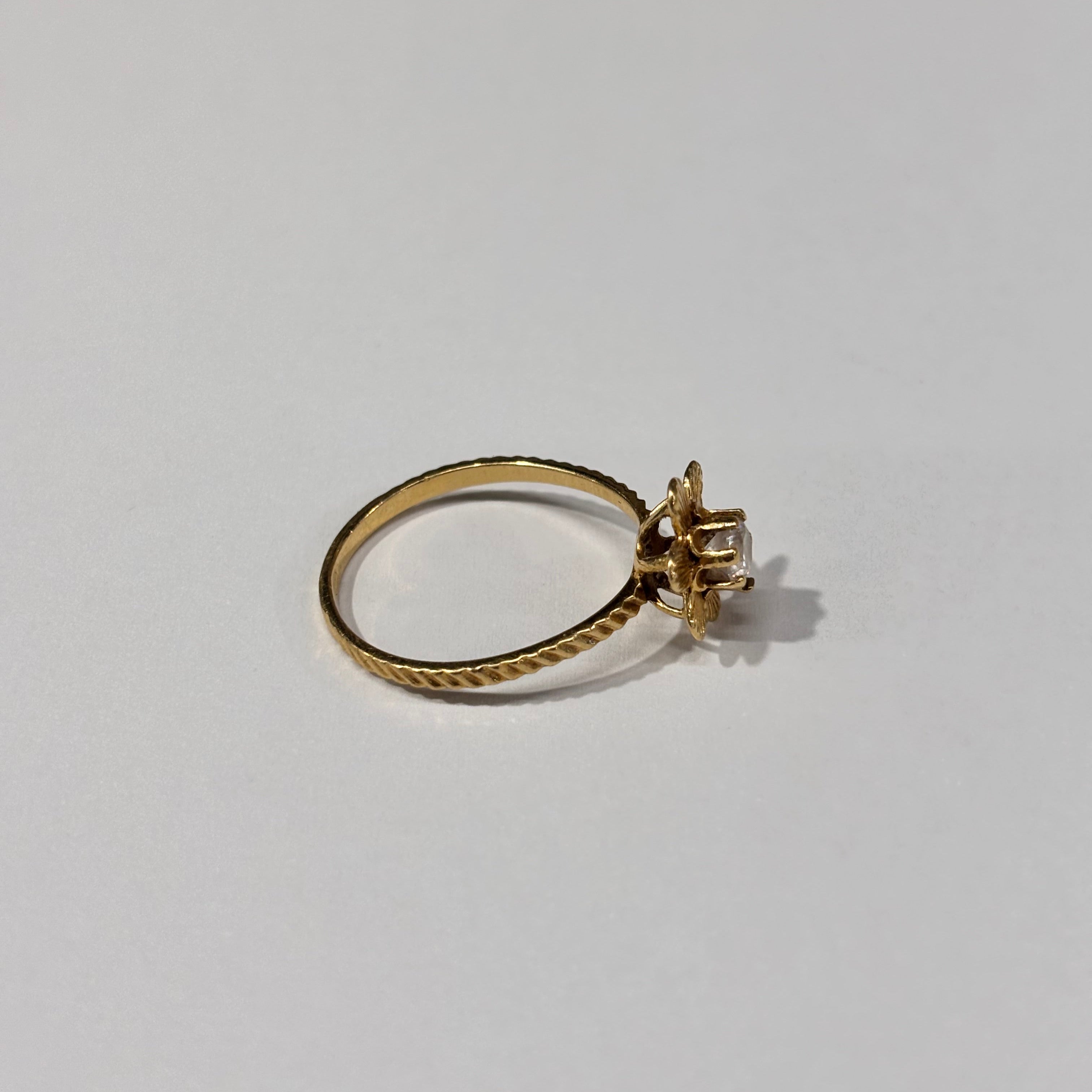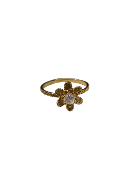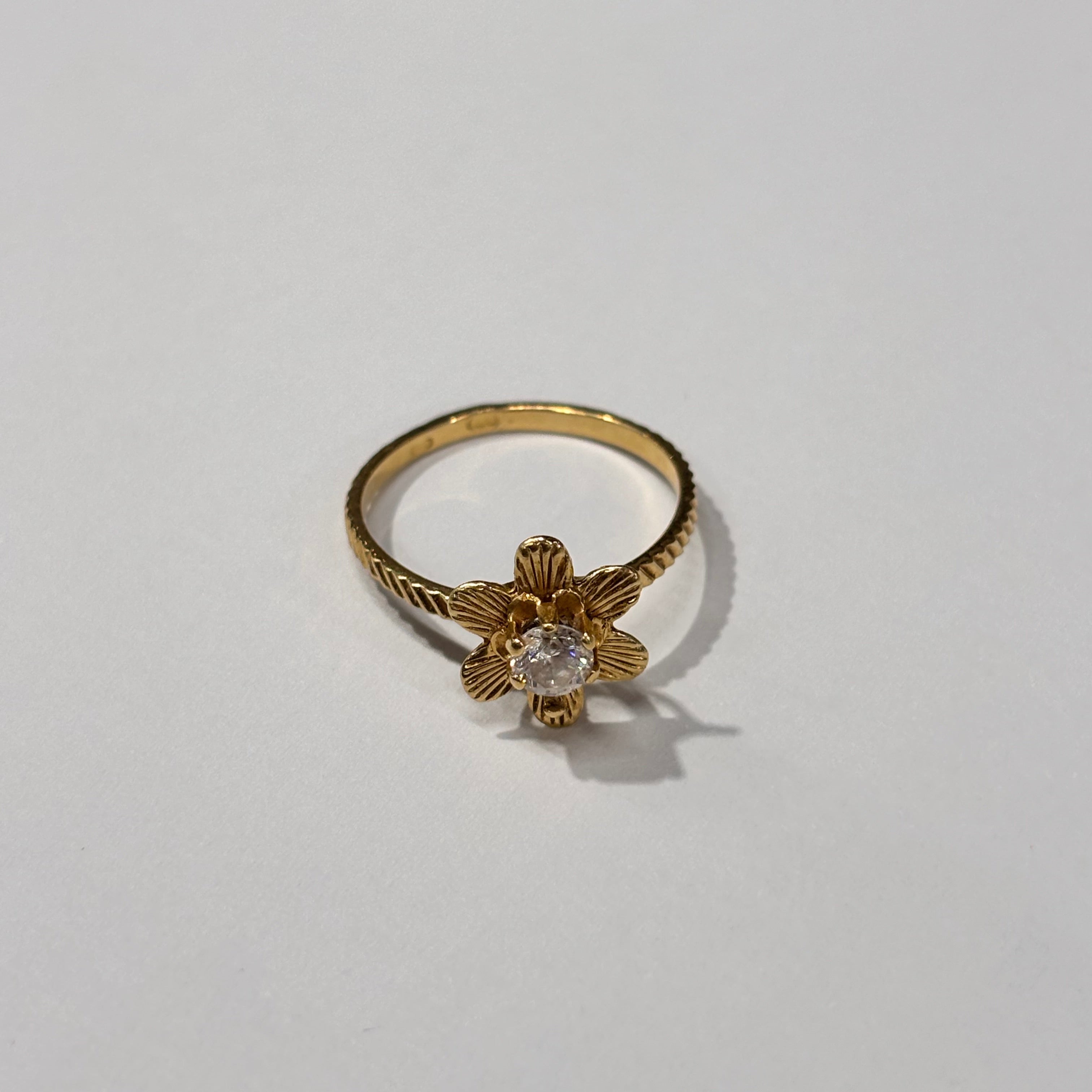 Bague empierrée en or jaune 18 carats (750/1000), poinçonnée "750", d’un poids de 1,80 gramme. Elle est proposée en taille 53 mm et ornée d’un oxyde de zirconium, lui apportant une touche d’éclat. La bague est en très bon état.