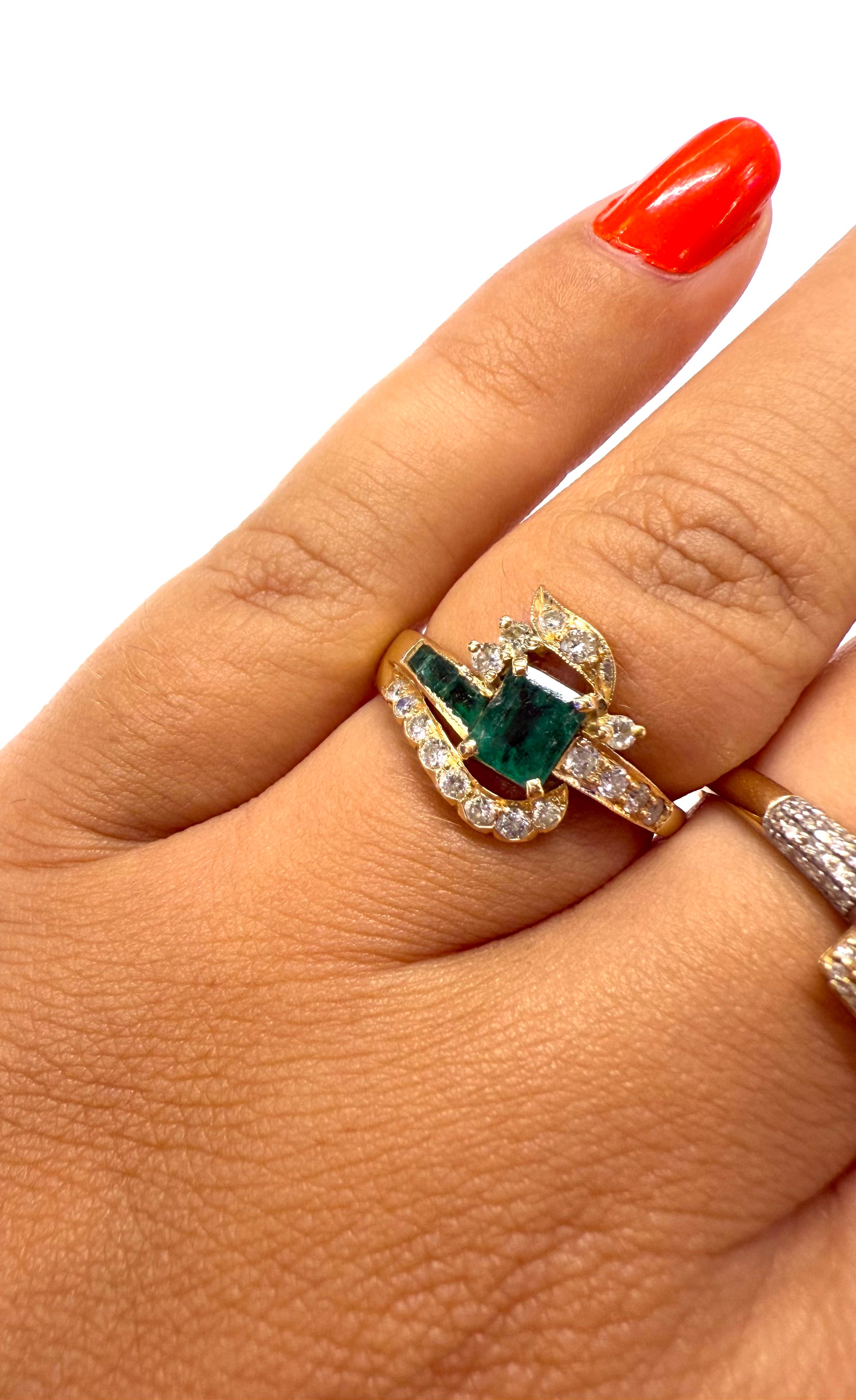 • Bague en Or Jaune 18k avec Émeraude et Diamants
