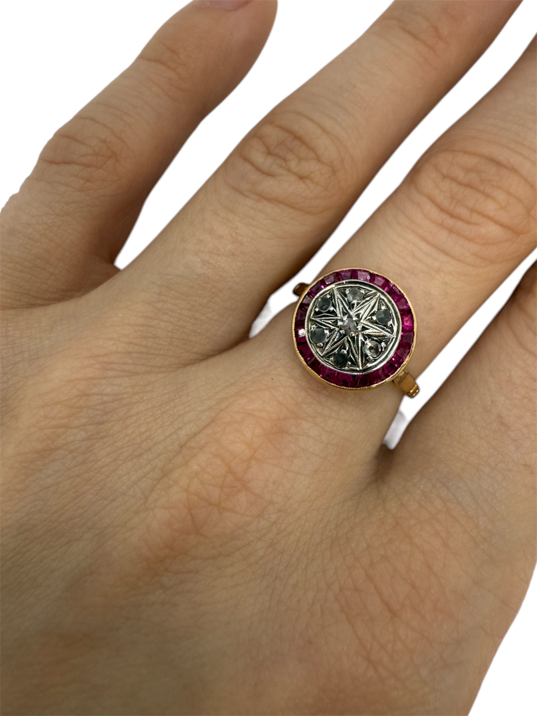 Bague en Or Jaune avec Diamants et Rubis 18 Carats