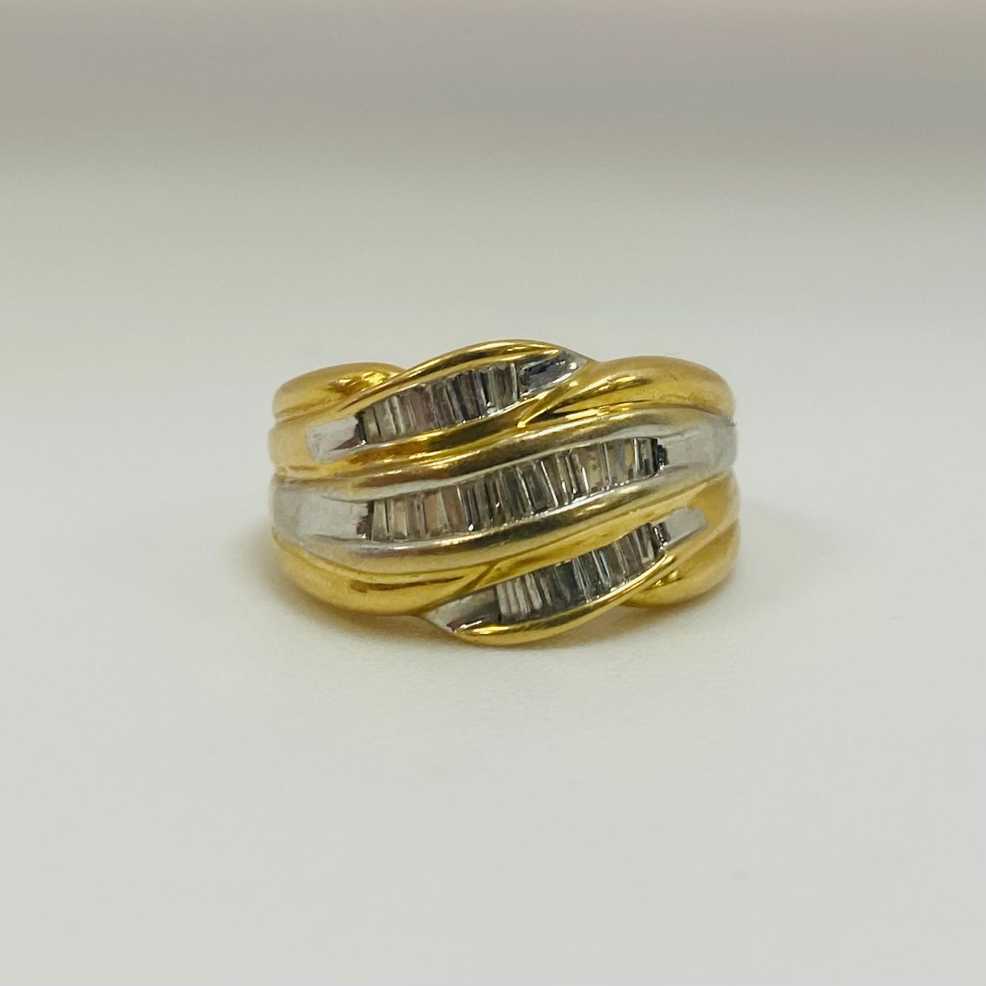 Bague empierrée en or jaune et or blanc 18 carats (750/1000), poinçonnée 750 et 18K.