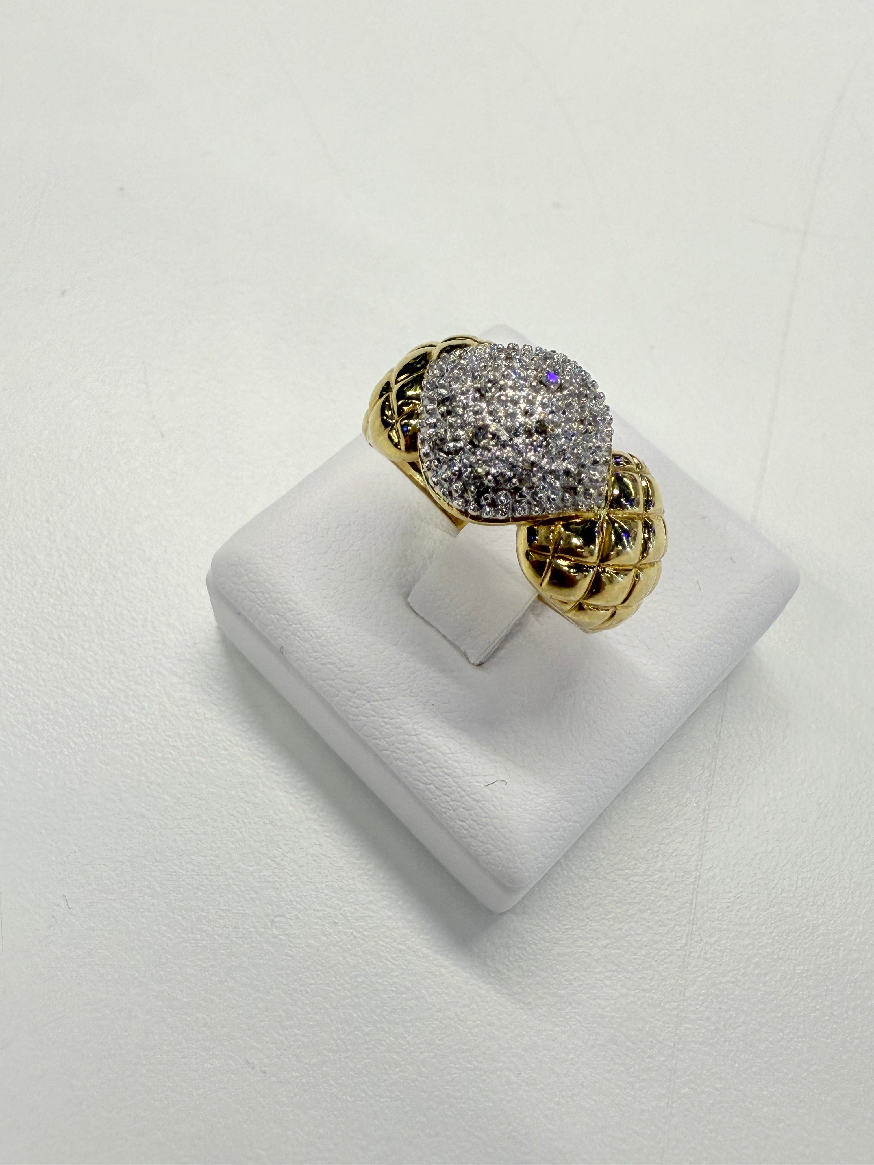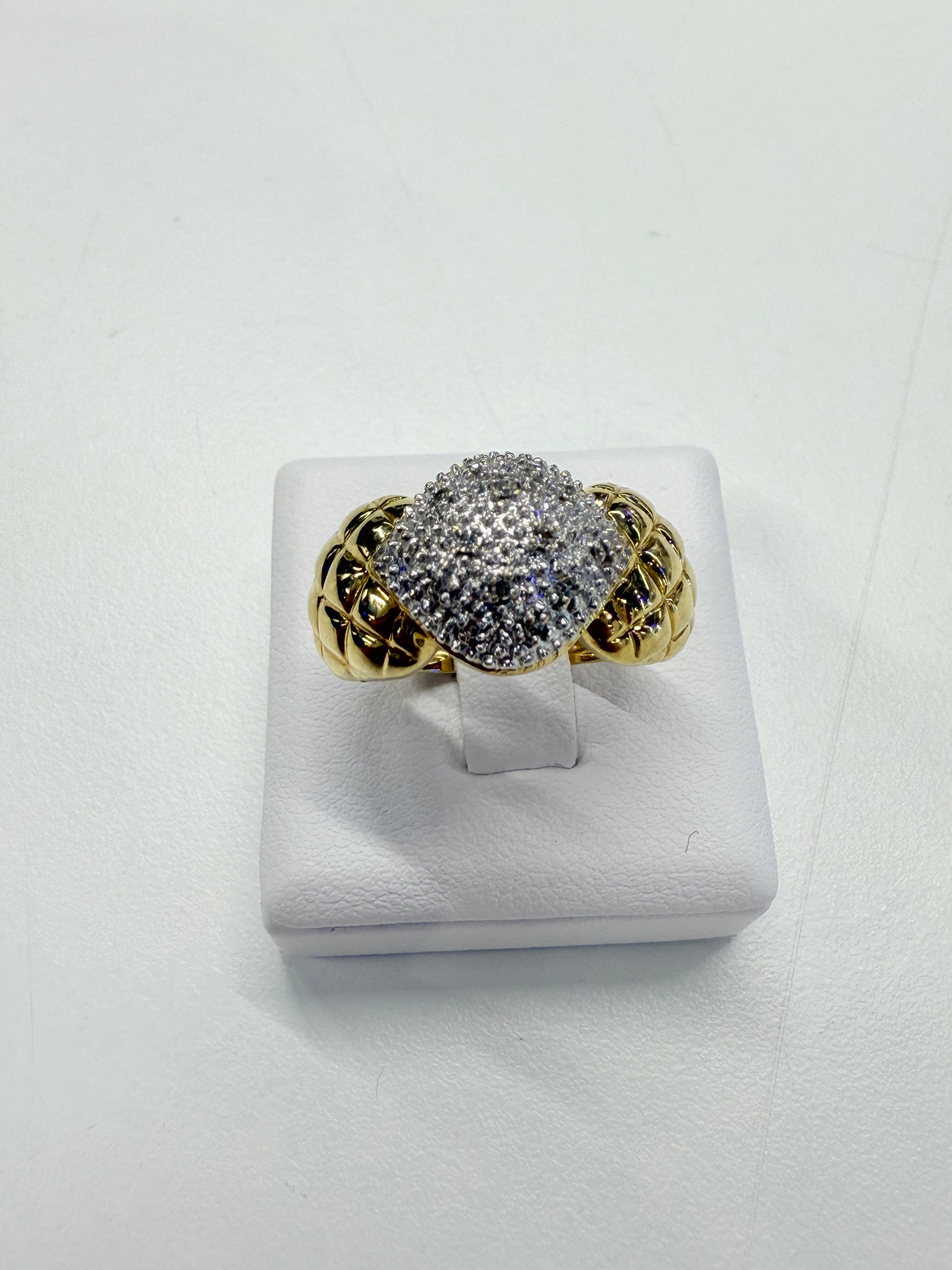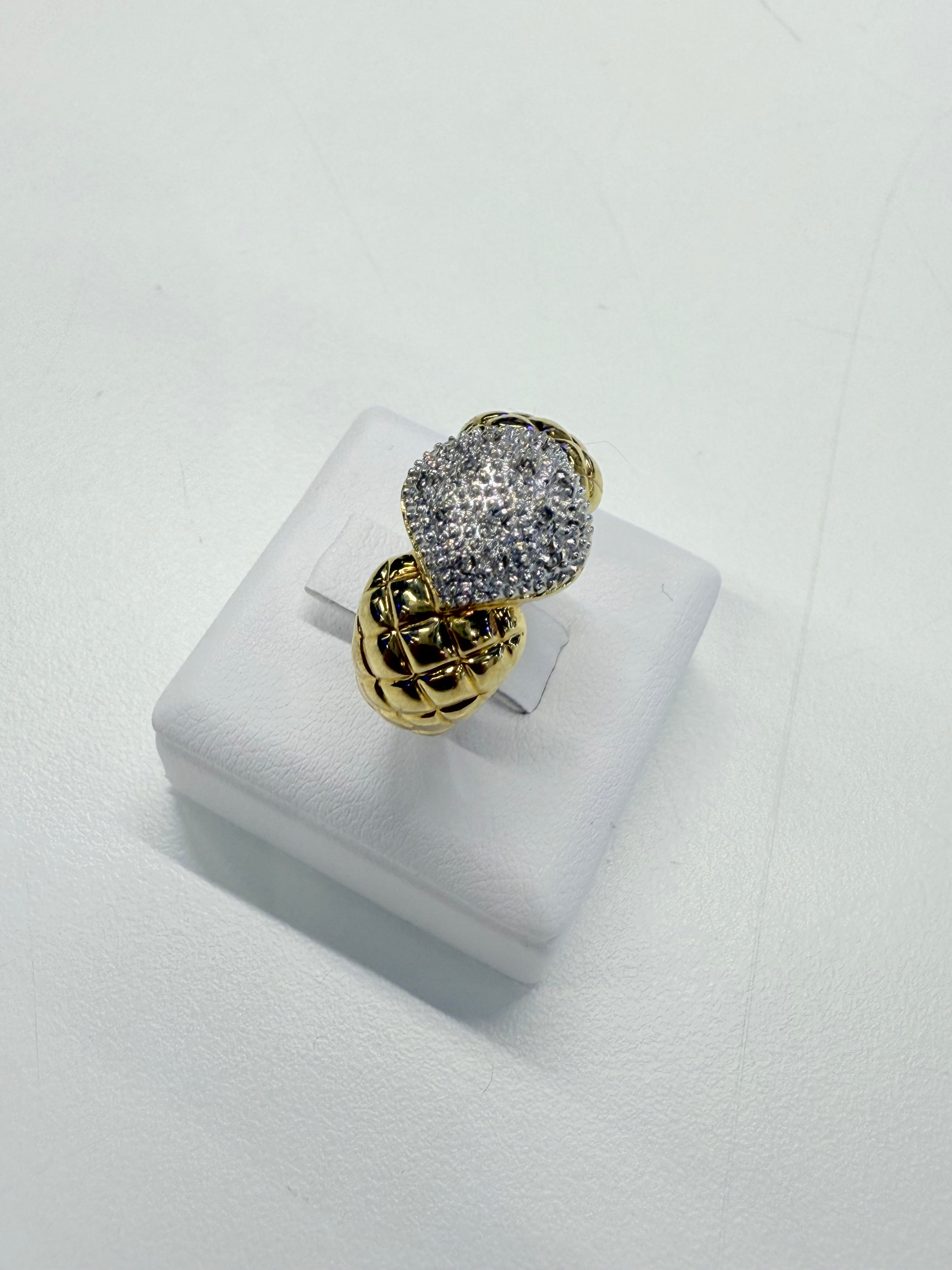 Cette magnifique bague empierrée en or jaune et or blanc 18 carats (750/1000) est un bijou d’exception qui allie éclat et raffinement. Avec un poids de 6.06 g et une taille 50, elle offre un équilibre parfait entre élégance et confort. Son poinçon 750 atteste de la qualité de son alliage précieux, tandis que ses éclats de diamants apportent une touche scintillante subtile et sophistiquée. En très bon état, cette bague en or conserve toute sa beauté et son authenticité.