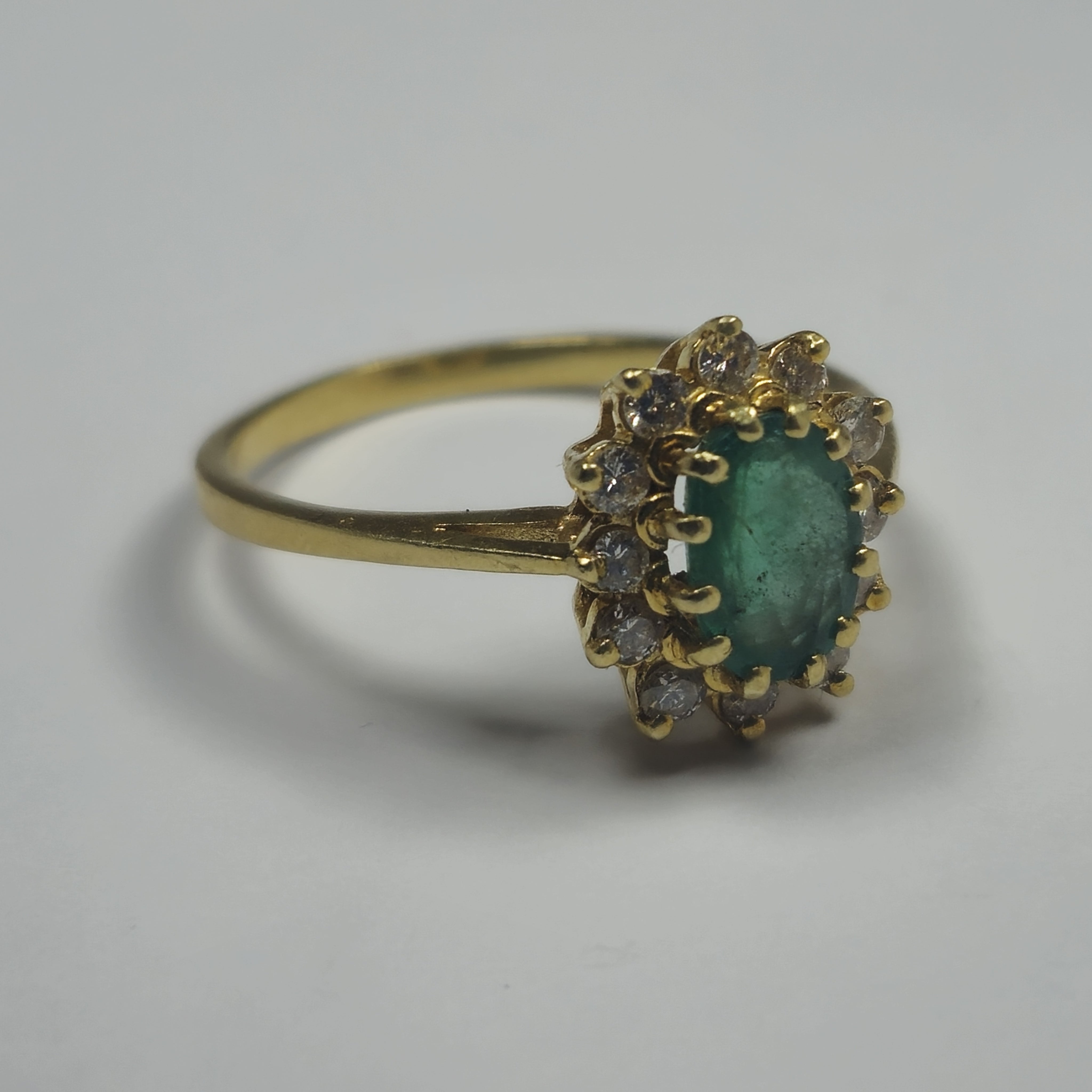 Bague Marguerite avec pierre verte et diamants 0,01 ct