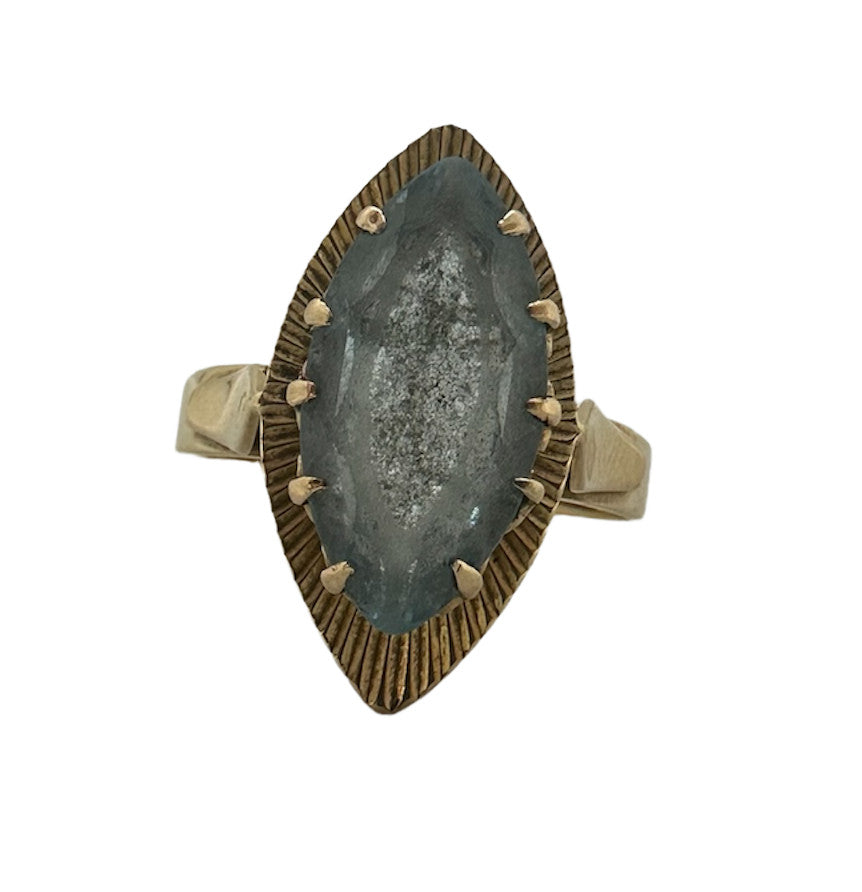 Magnifique bague en or jaune avec pierre Naturelle Bleue.