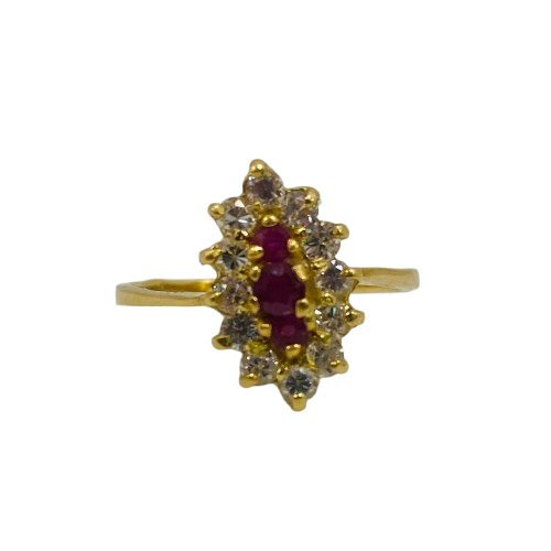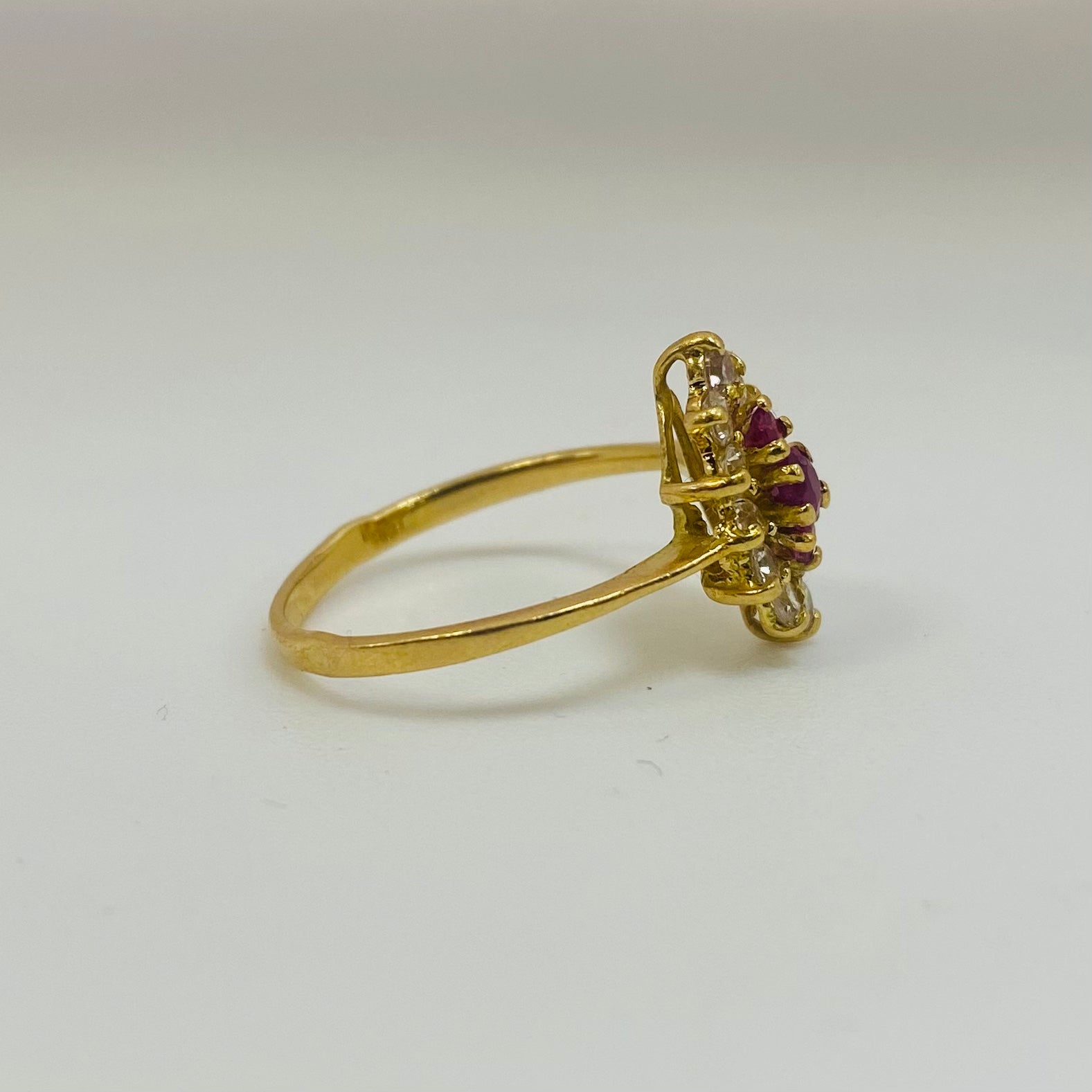 • Bague Marquise en Or Jaune 18 Carats avec Pierres Roses et Zirconiums – T 54