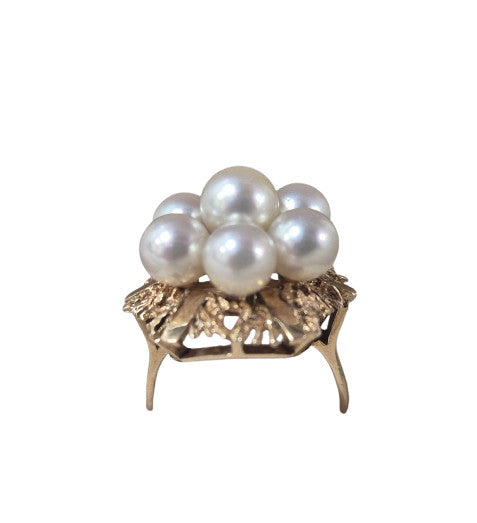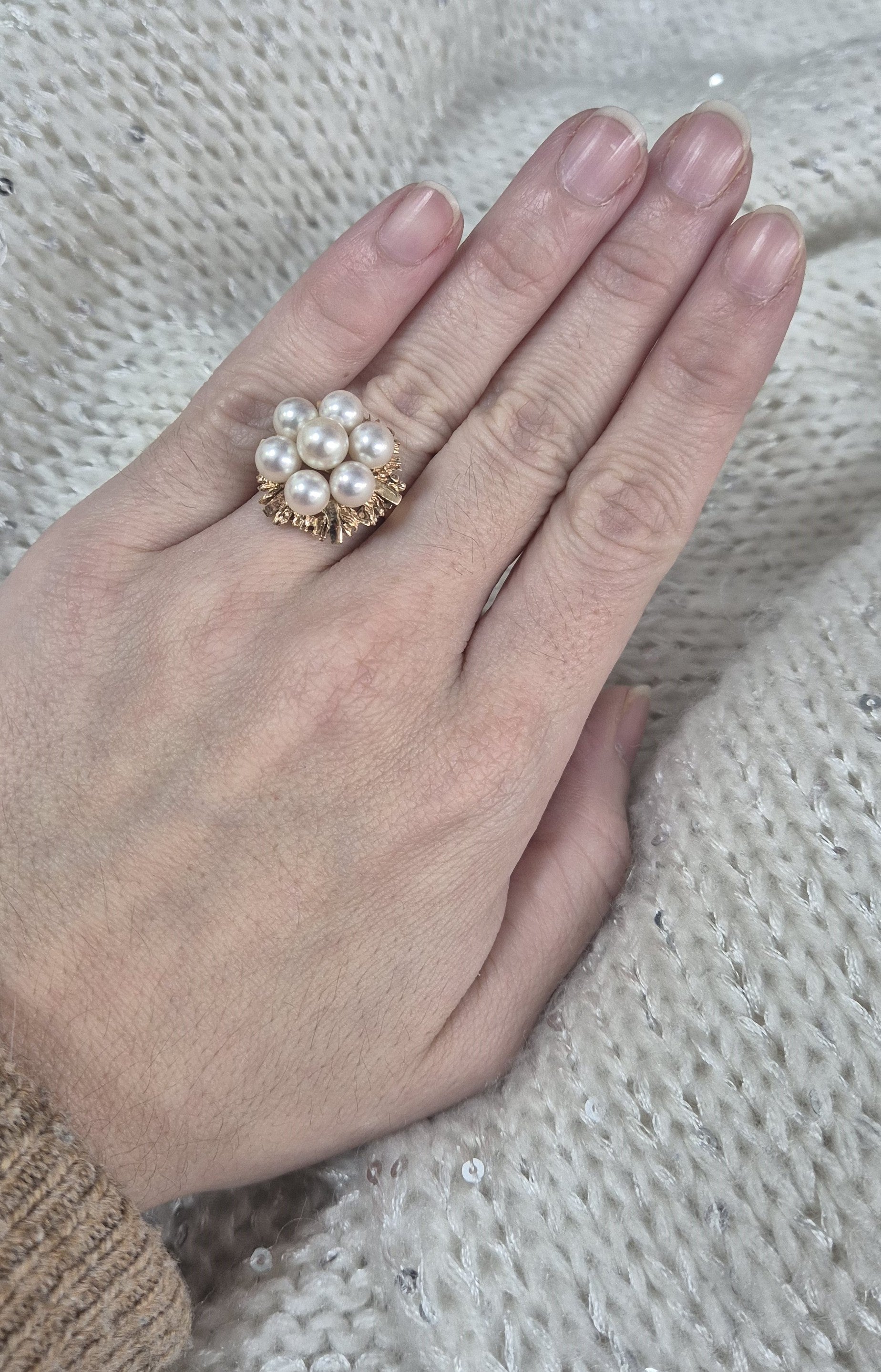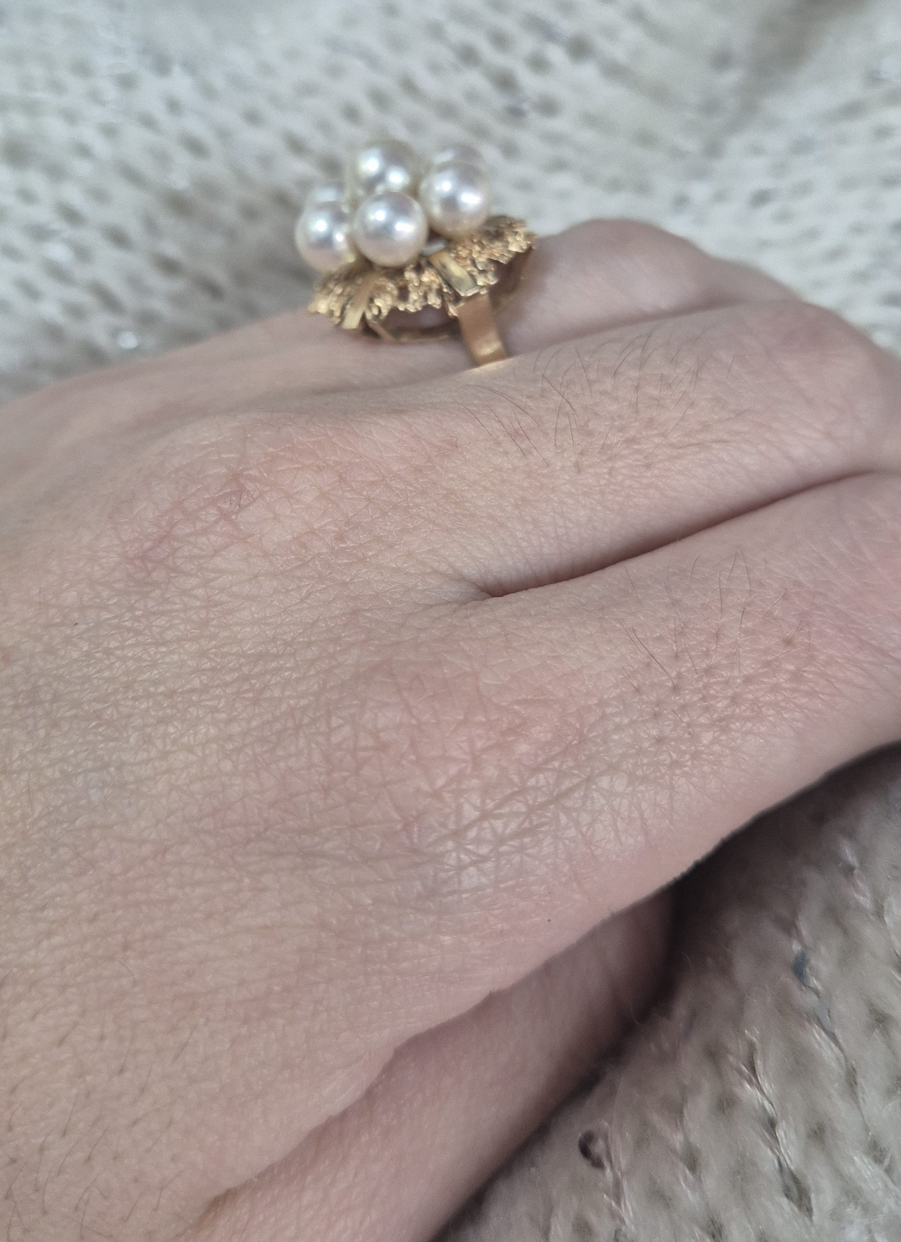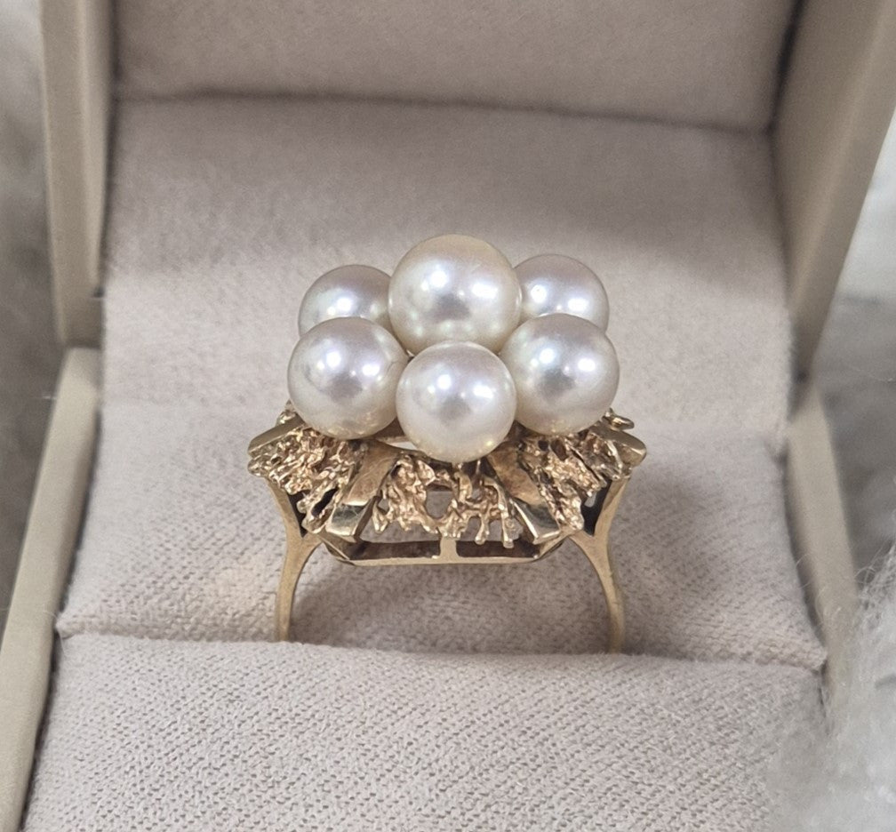 Magnifique bague en or 14 carats avec de belles perles blanches
