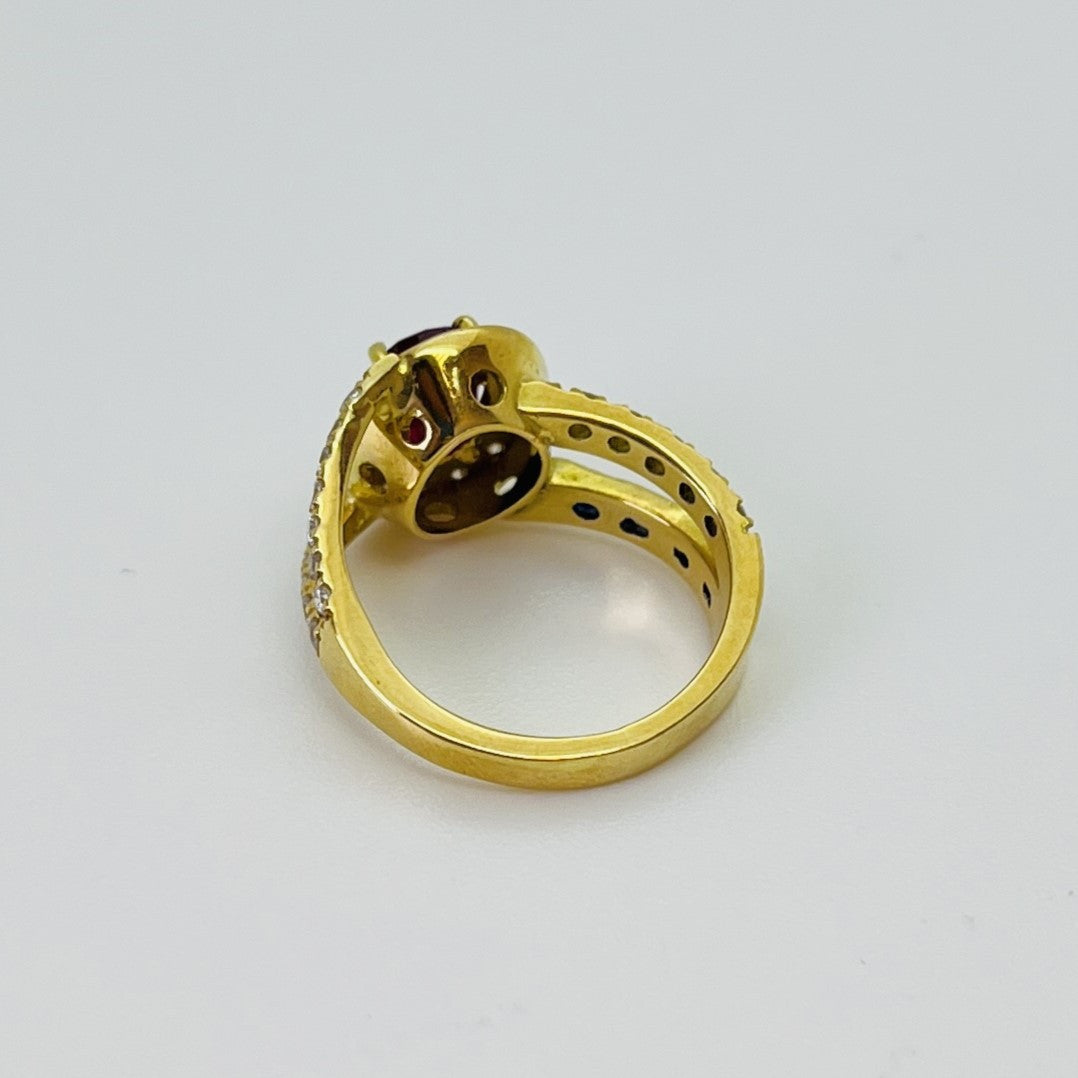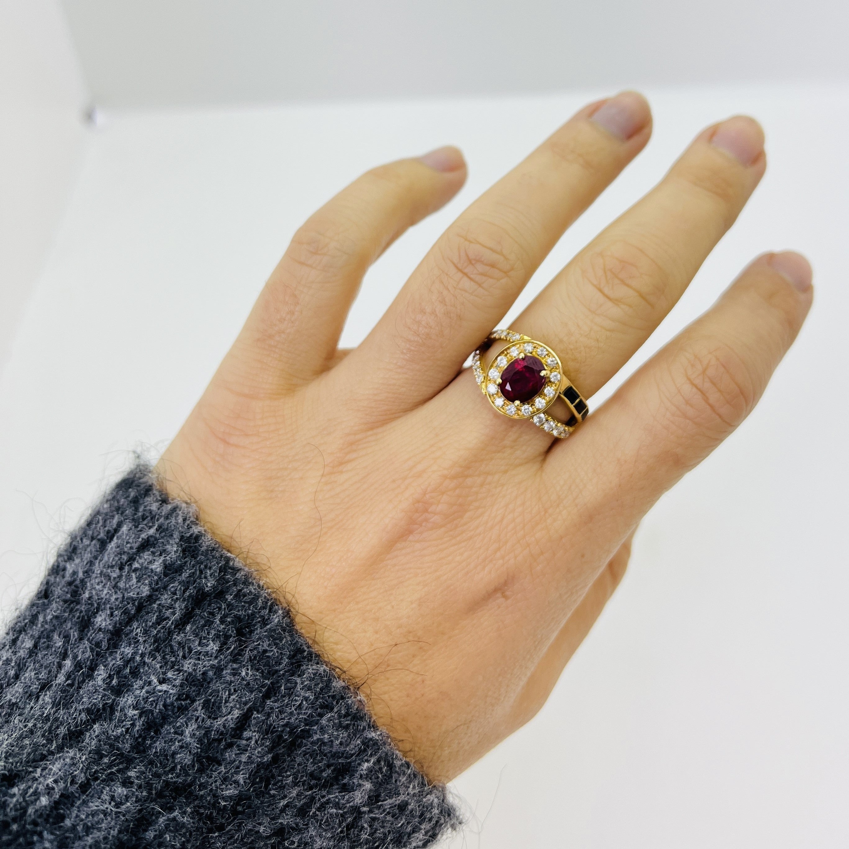 Magnifique bague en or jaune 18 carats 750/1000, sertie d'un rubis de 2.13ct et de diamants