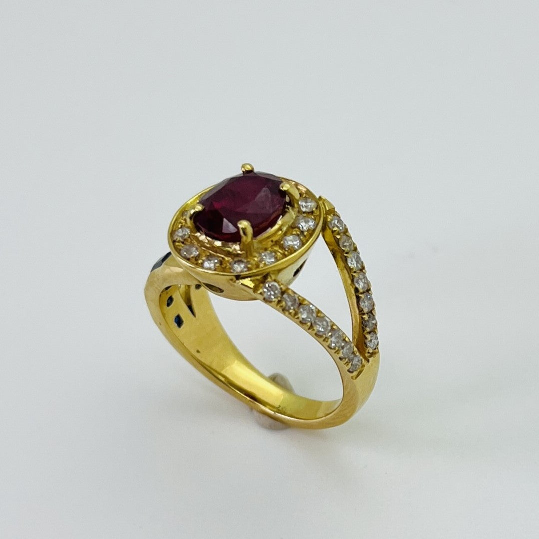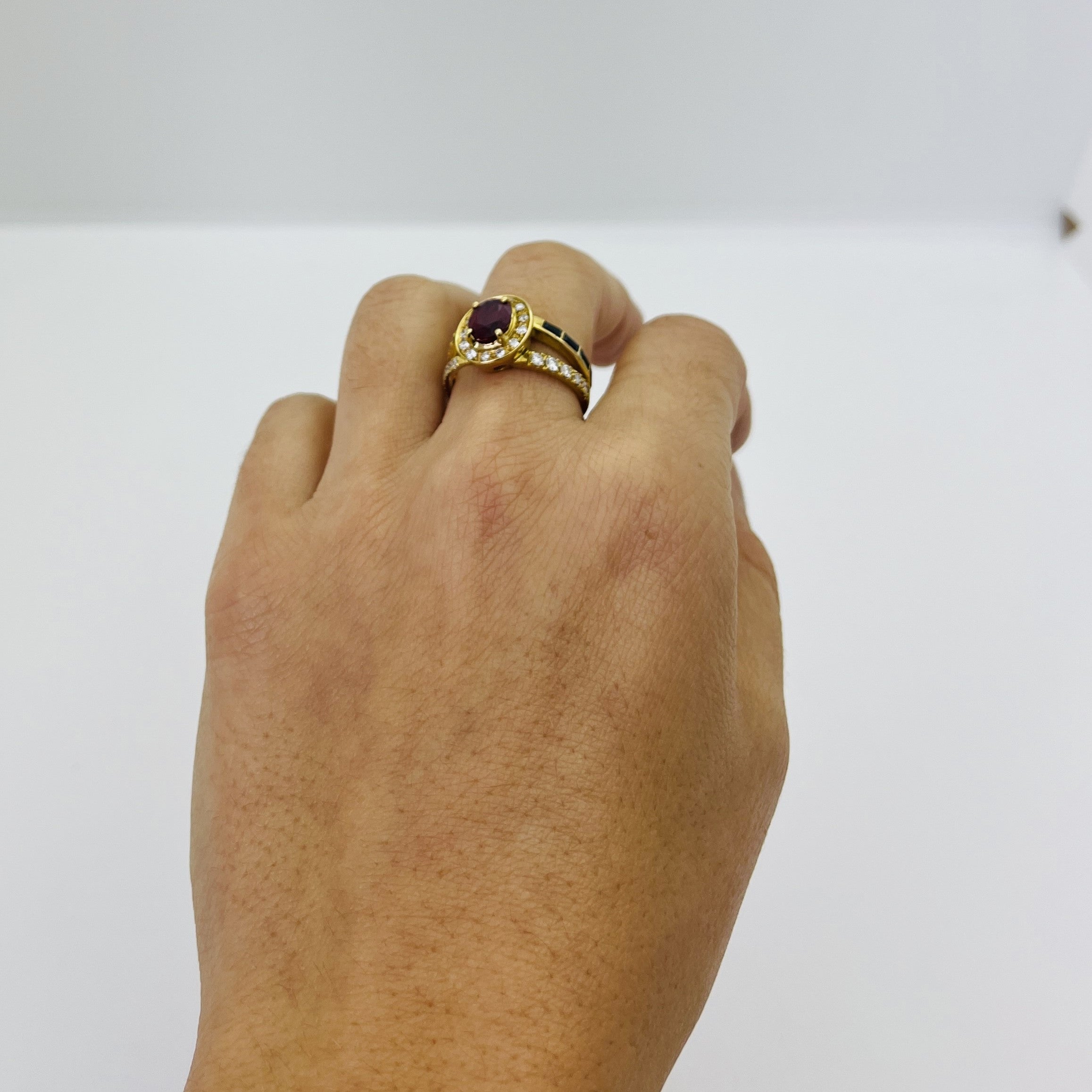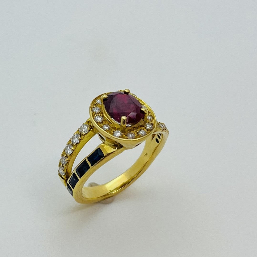 Bague Or avec Rubis 2.13ct , Diamants et Saphir