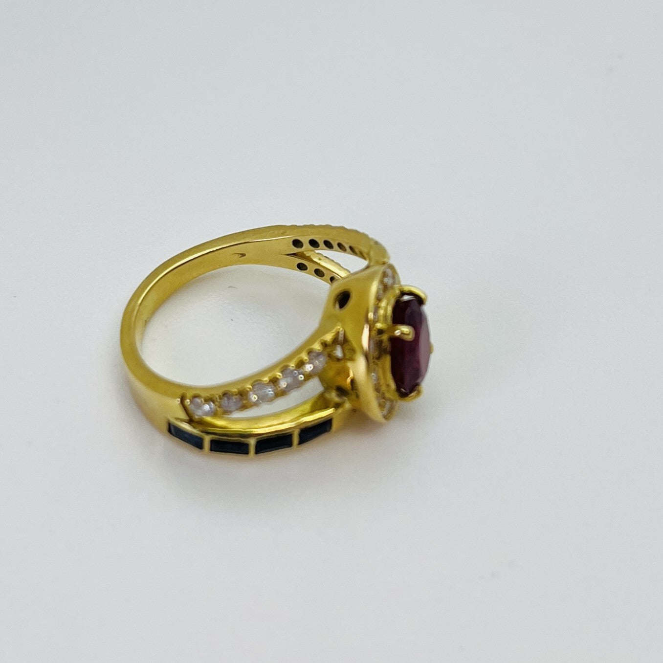• Bague Or avec Rubis 2.13ct , Diamants et Saphir