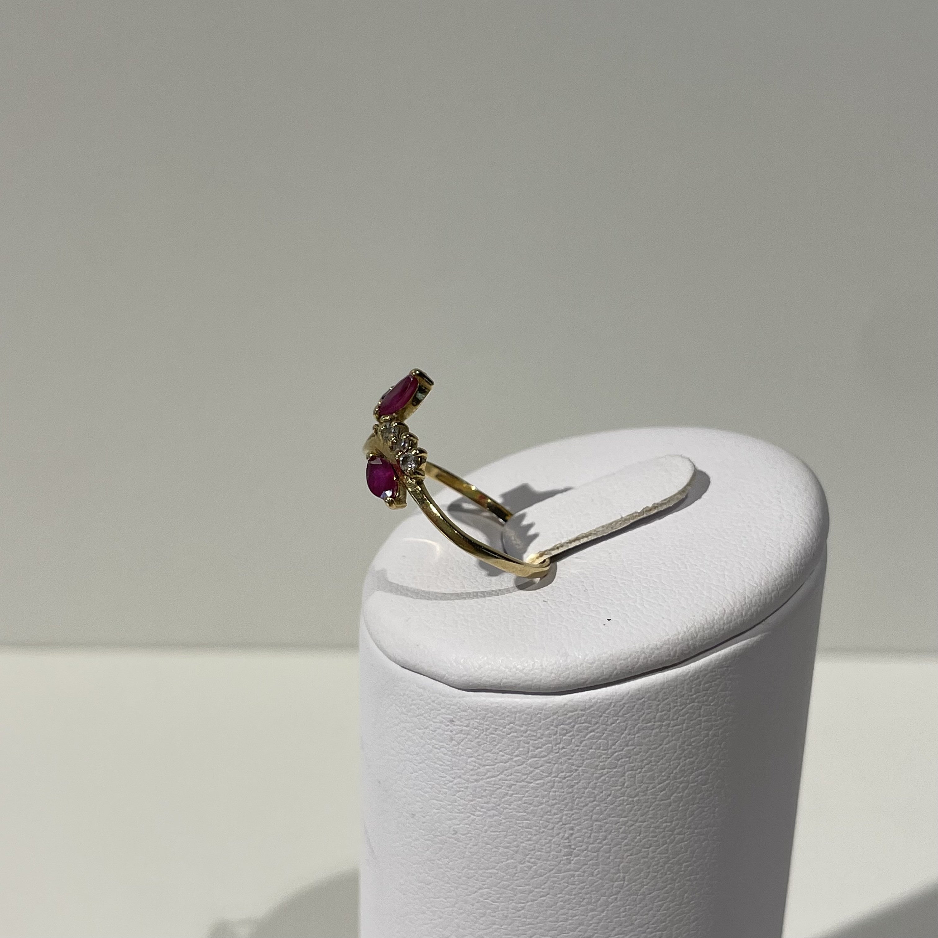 Ravissante bague à la forme originale en or jaune 18k avec Pierres roses.