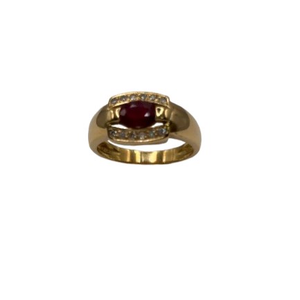 - Nombre de pierres : 1 rubis ovale 0,70 carats épaulé de 12 brillants