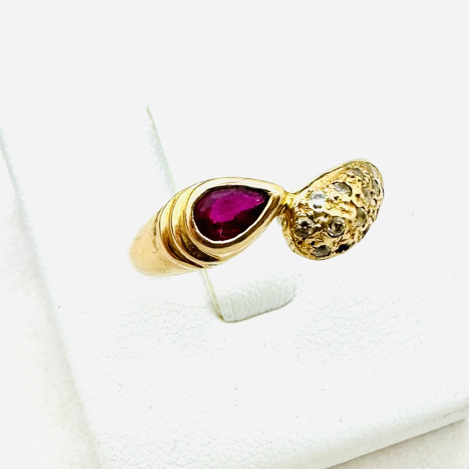 Bague Or Jaune avec Oxydes et Pierre Rose