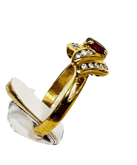 Superbe bague en or pour femme avec des diamants au dessus et un rubis