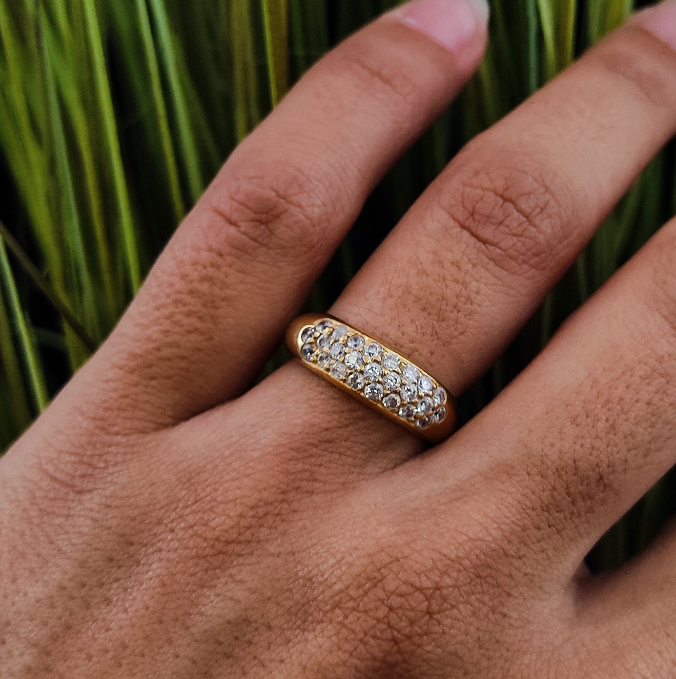 Bague en or jaune 18 carats (750/1000) pavage de zirconium