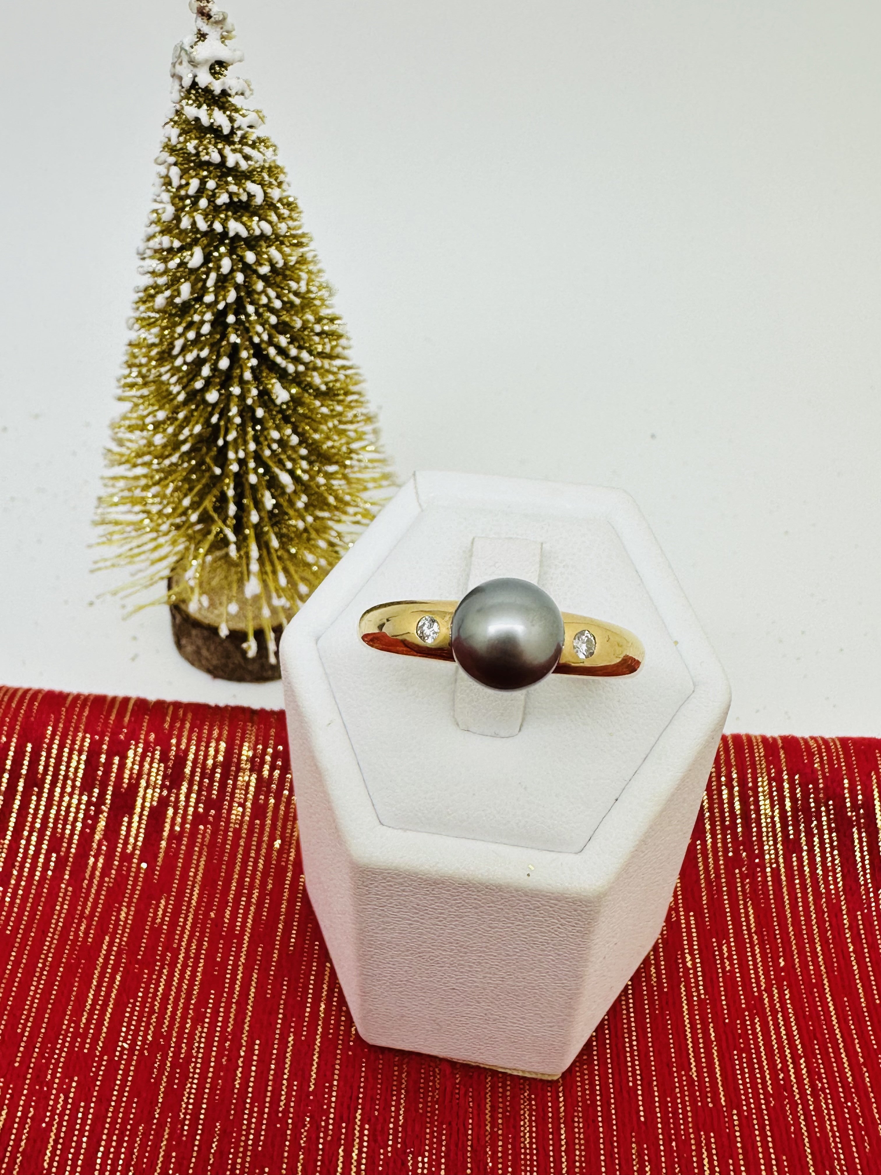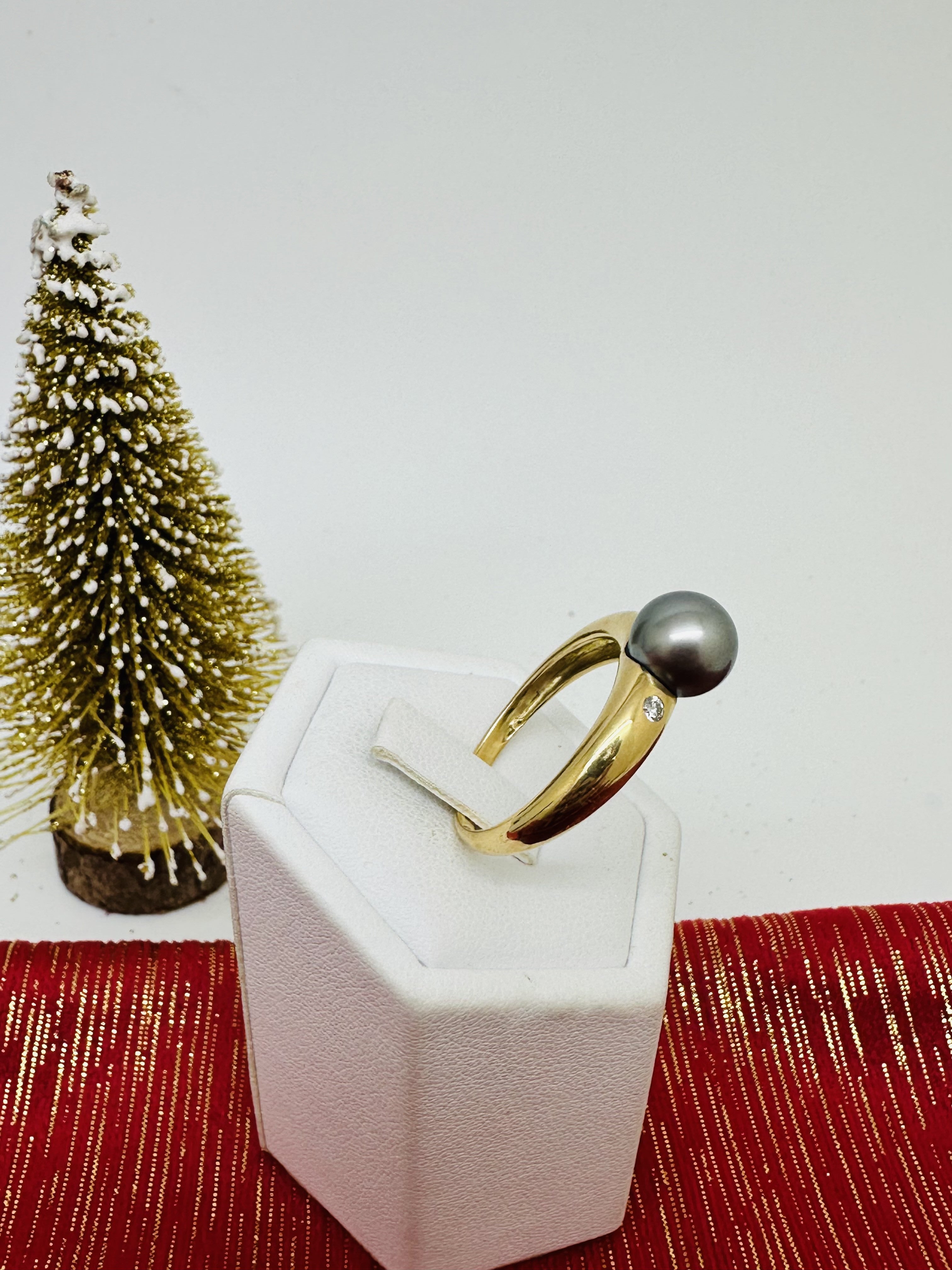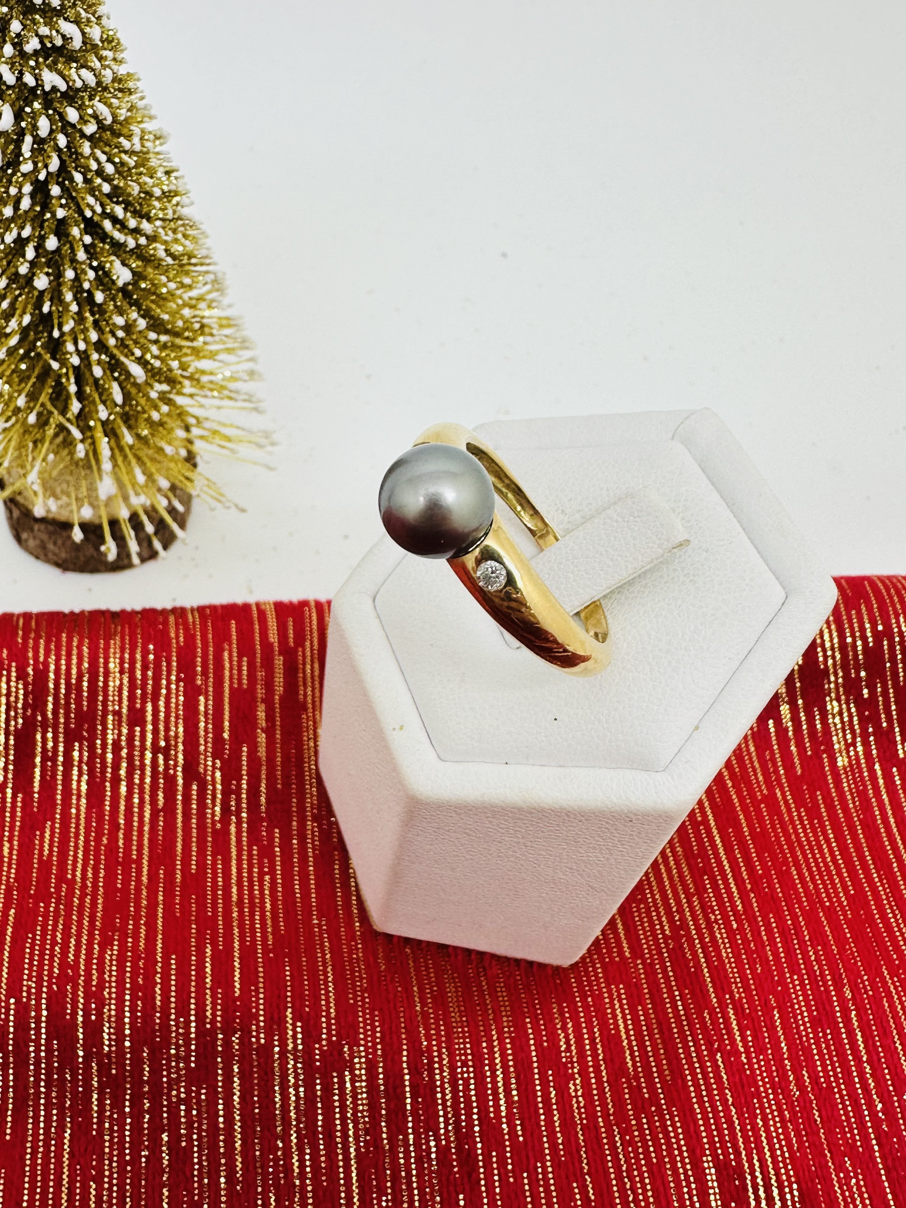 Belle bague en or jaune 750/1000 avec perle de Tahiti et diamant