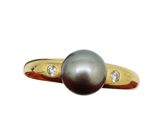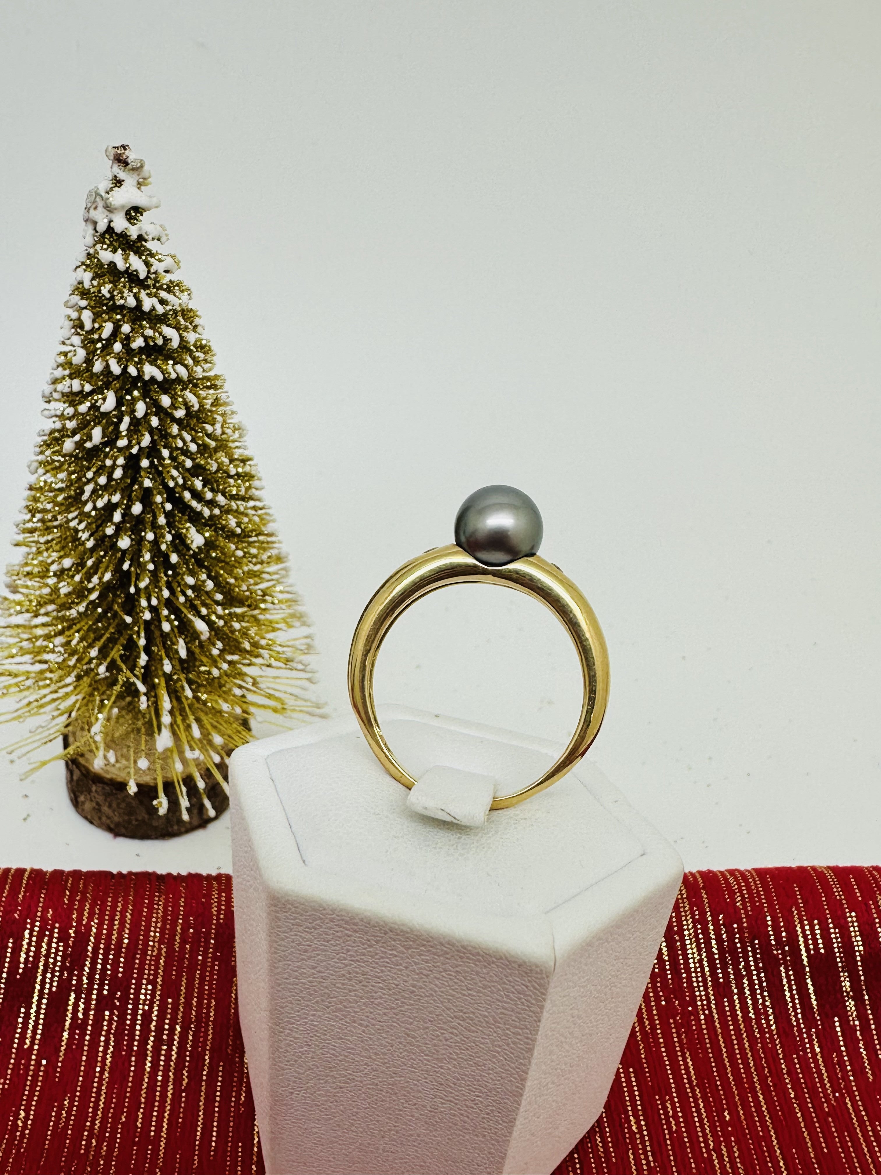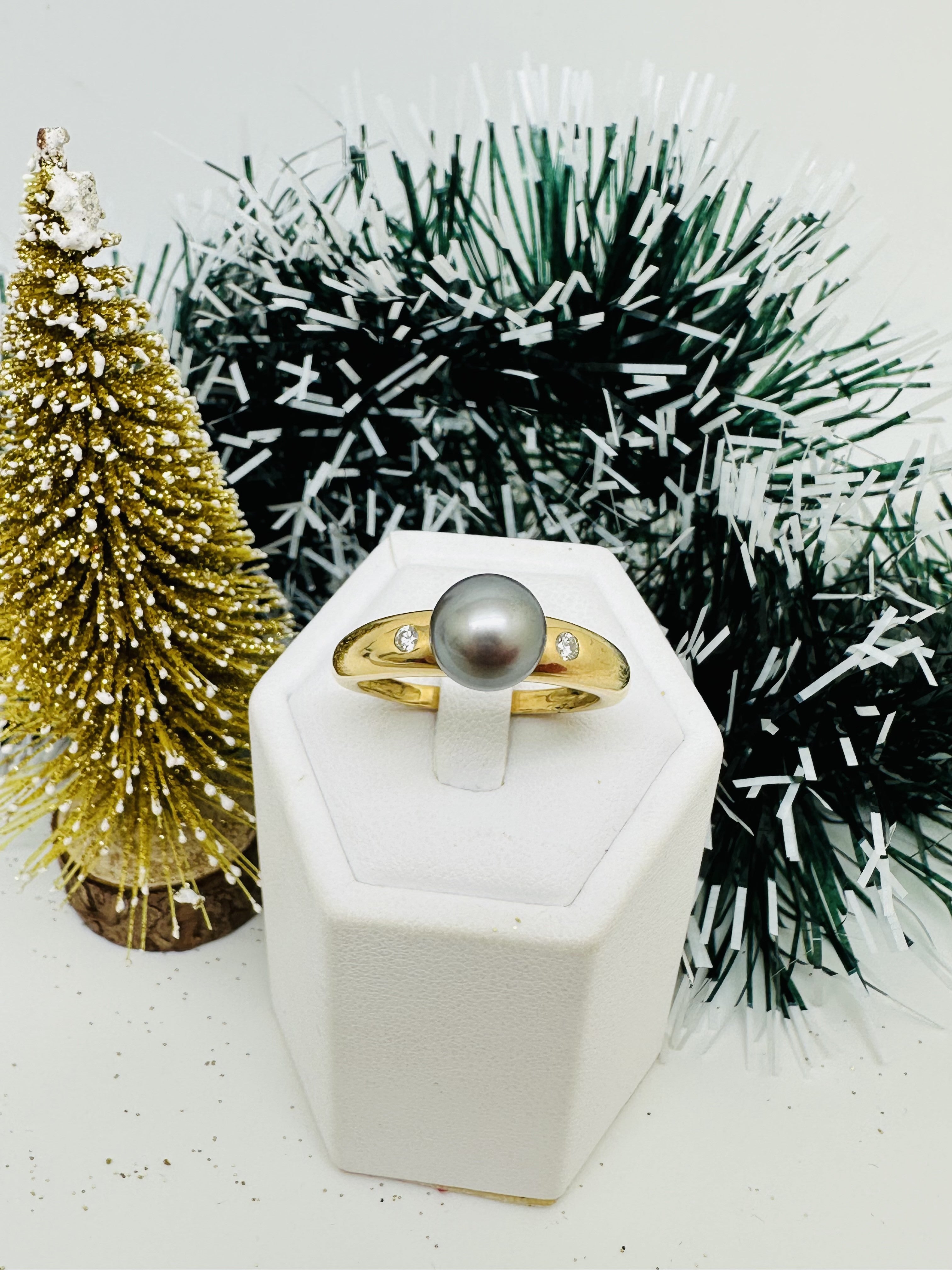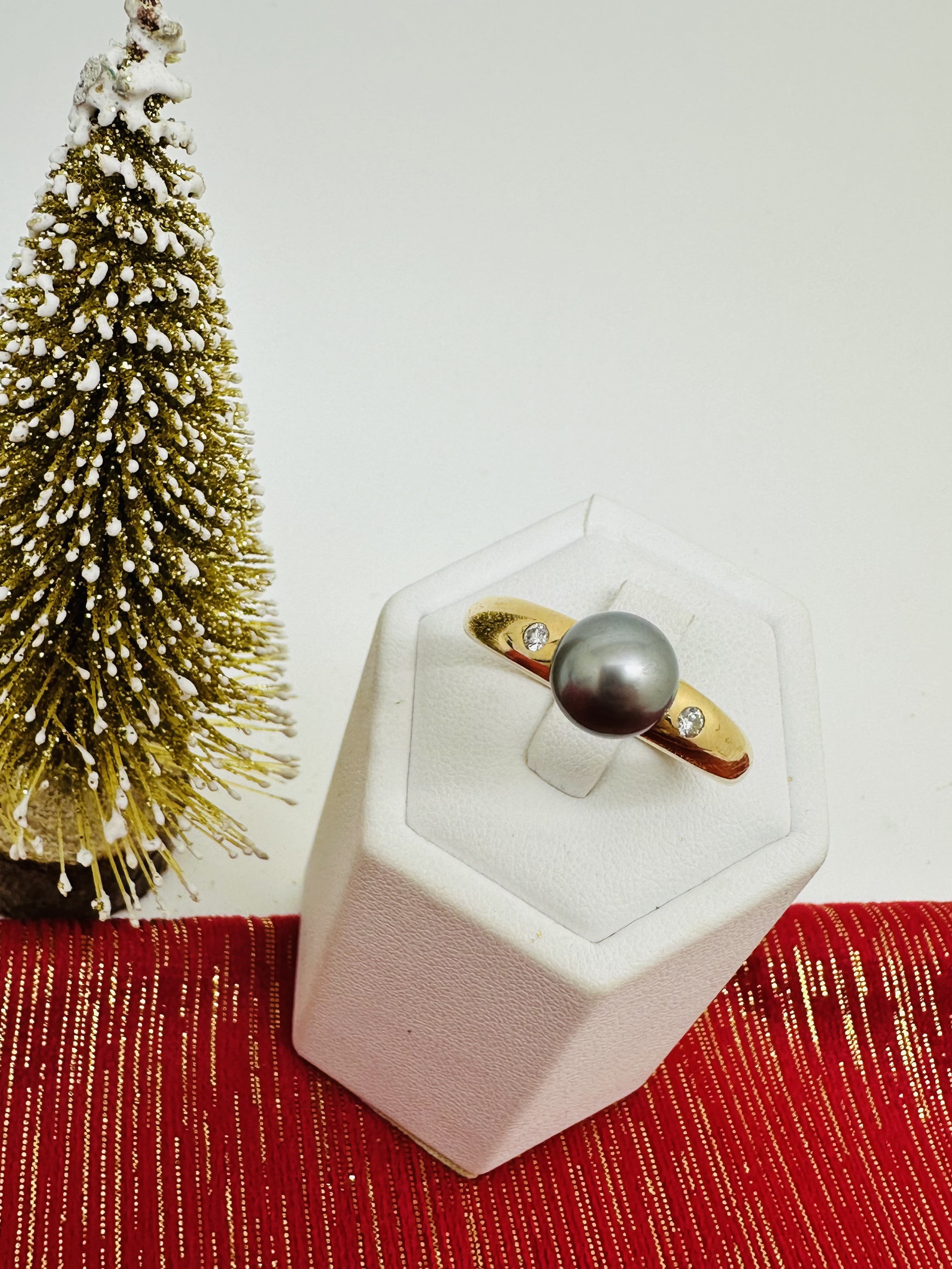 Belle bague en or jaune 750/1000 avec perle de Tahiti et diamant
