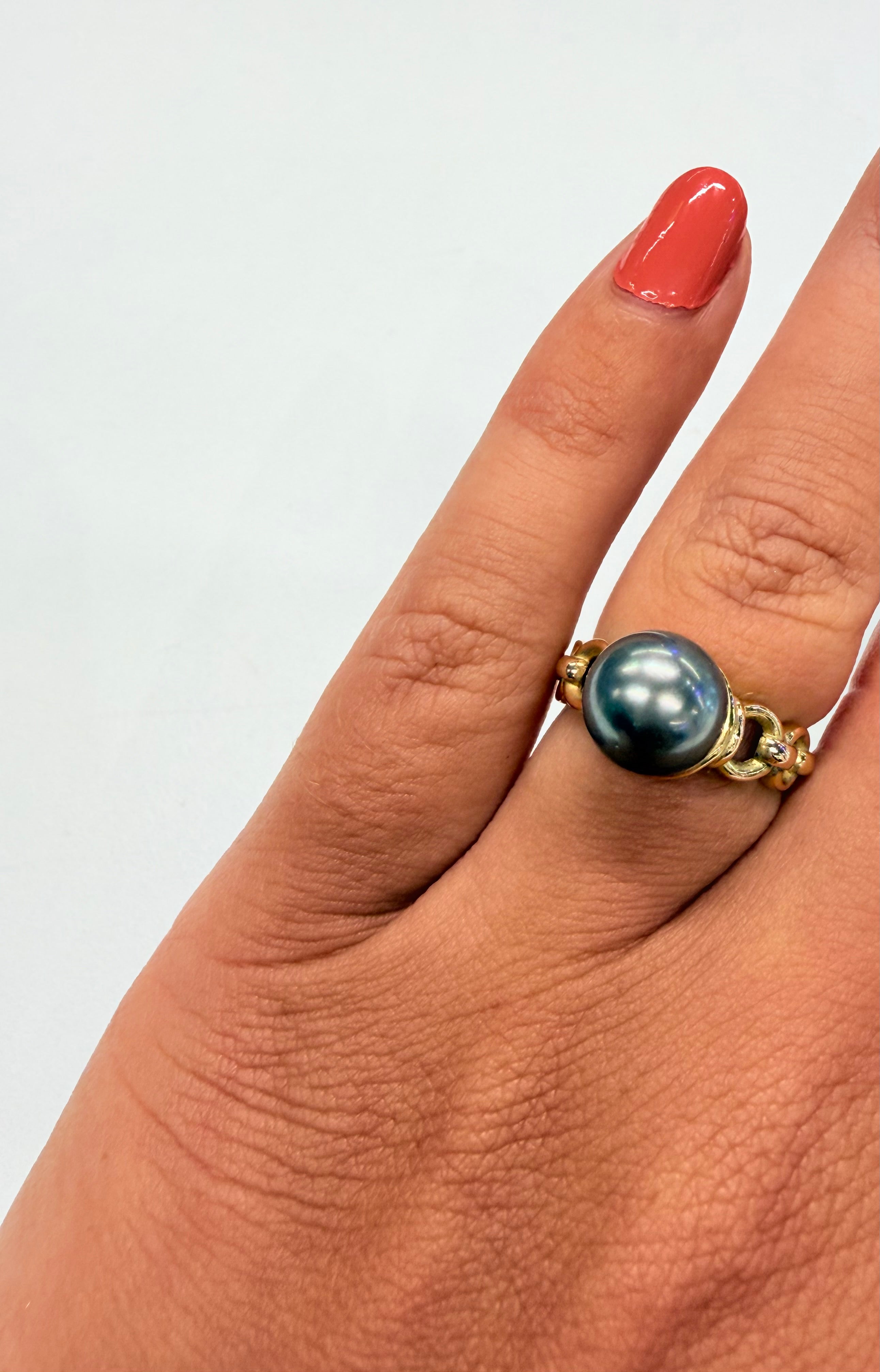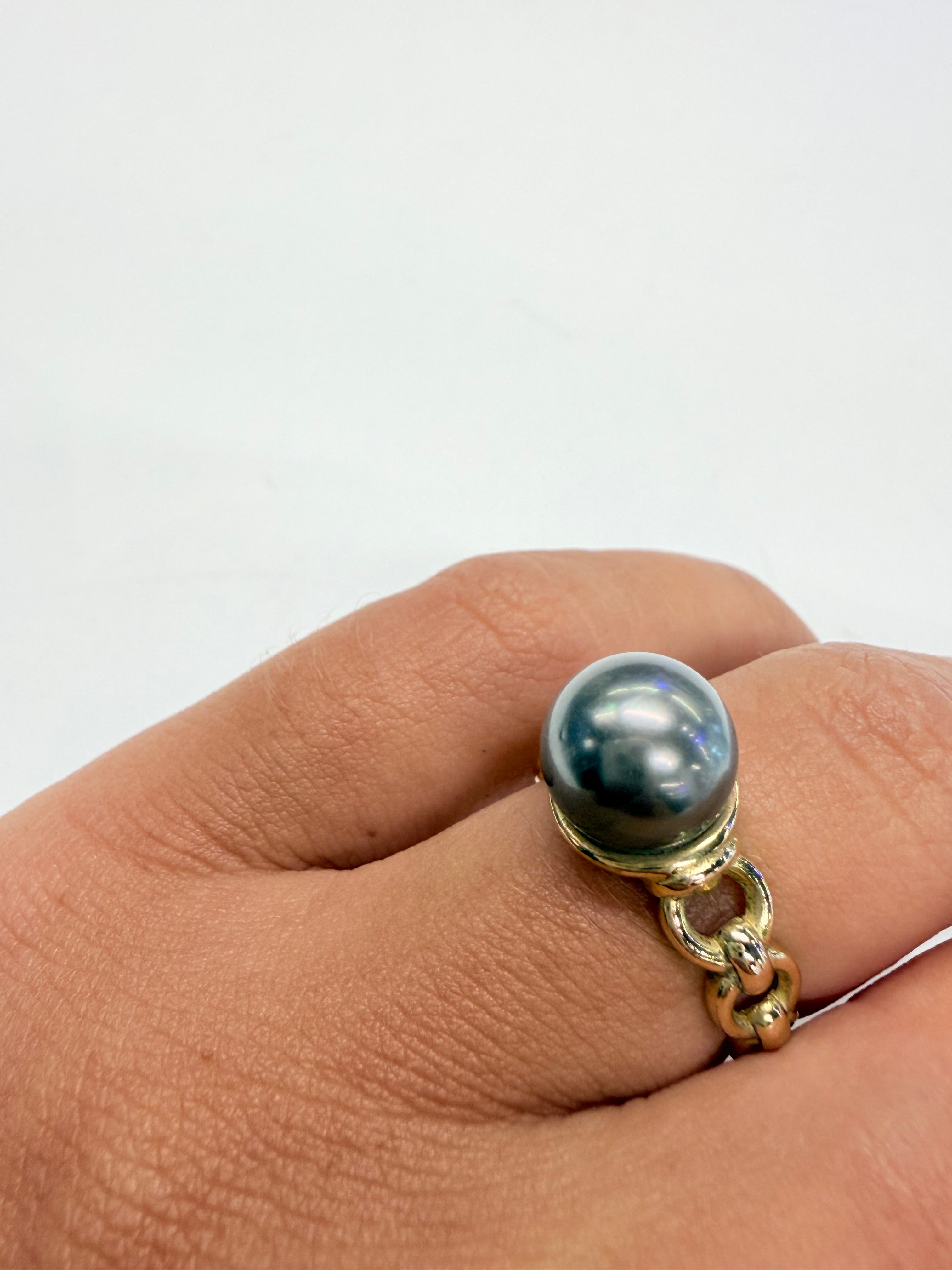 • Bague perle Tahiti en or jaune 18k Taille-50