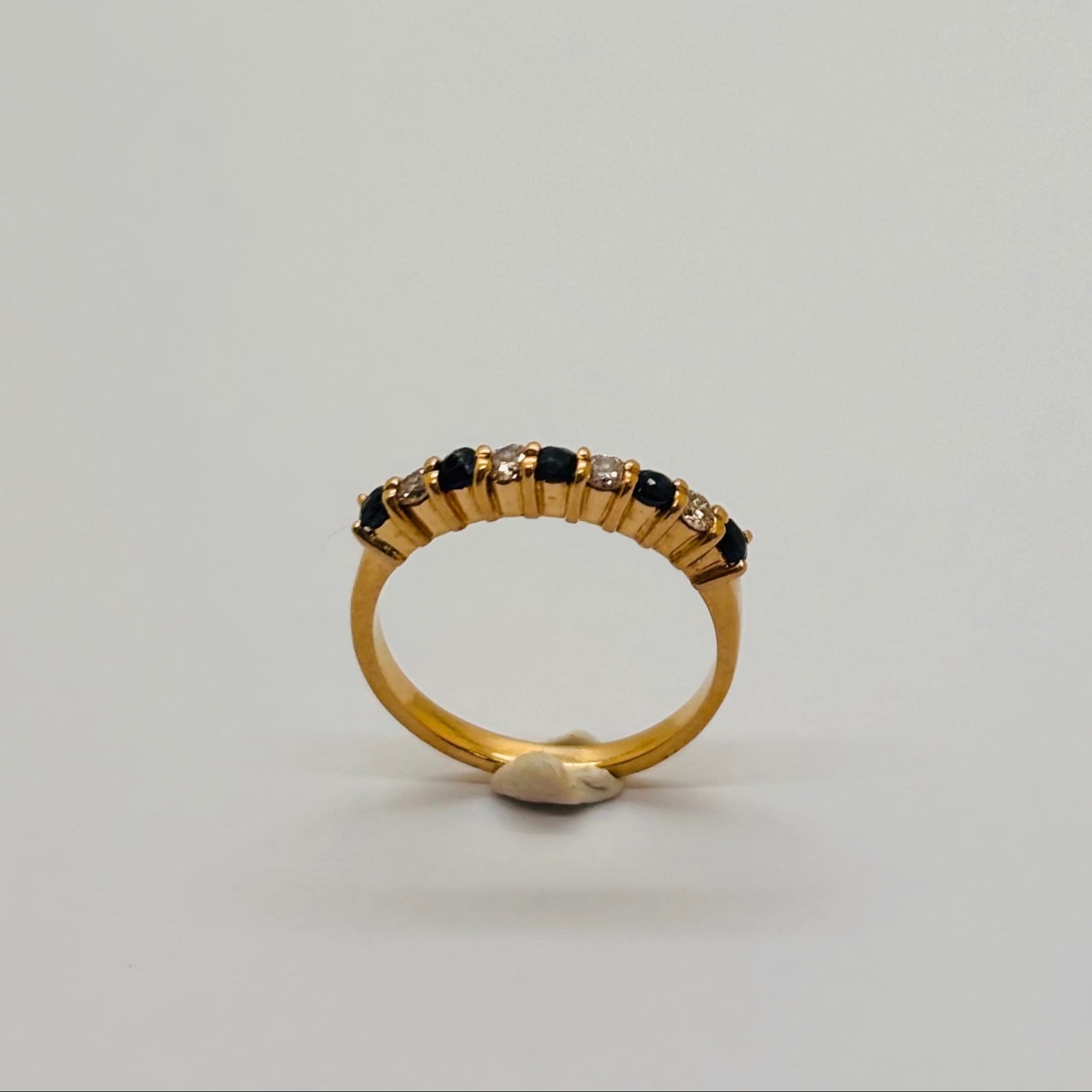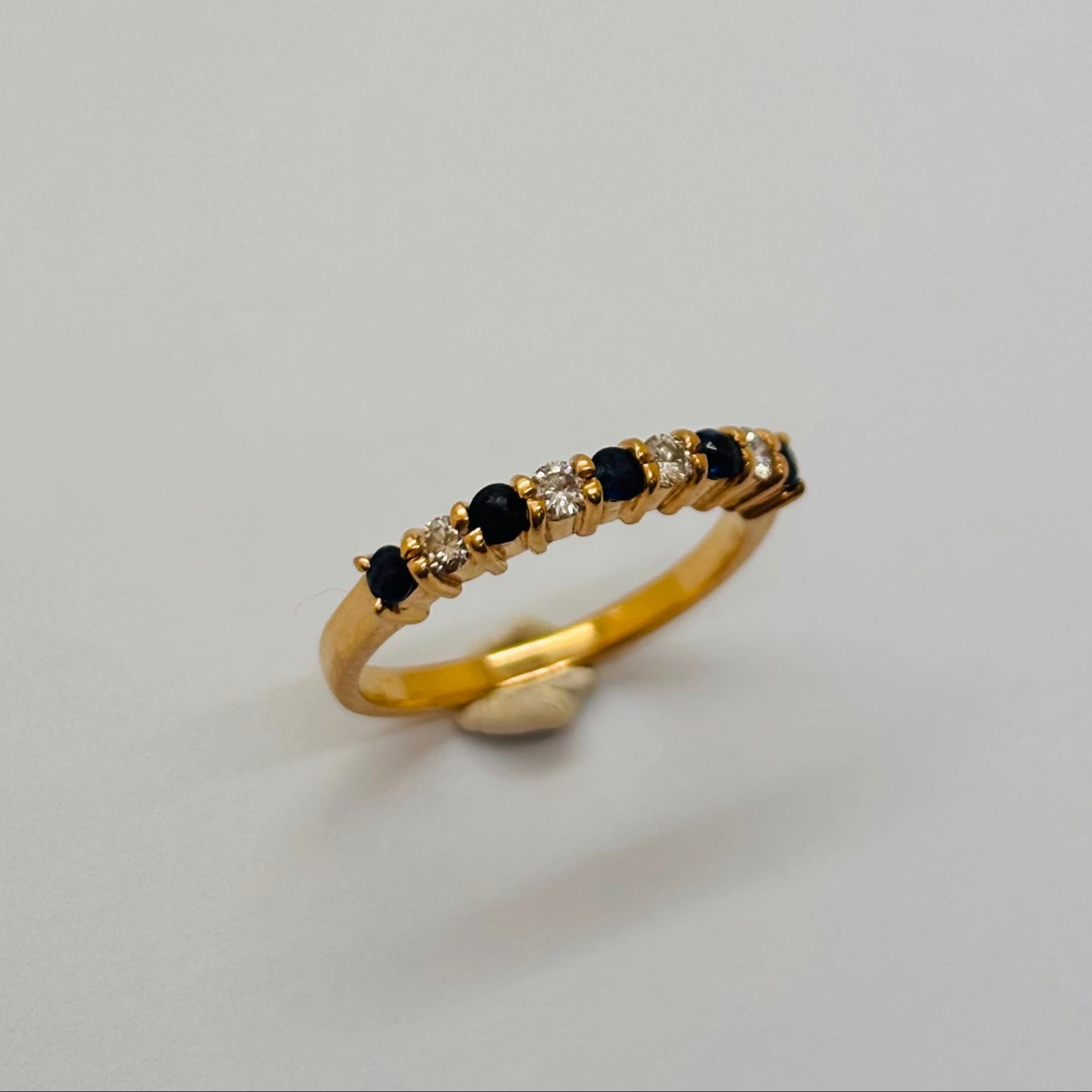 Bague en or jaune 18 carats (750/1000), sertie, en demi tour, de quatre saphirs et quatre diamants.
